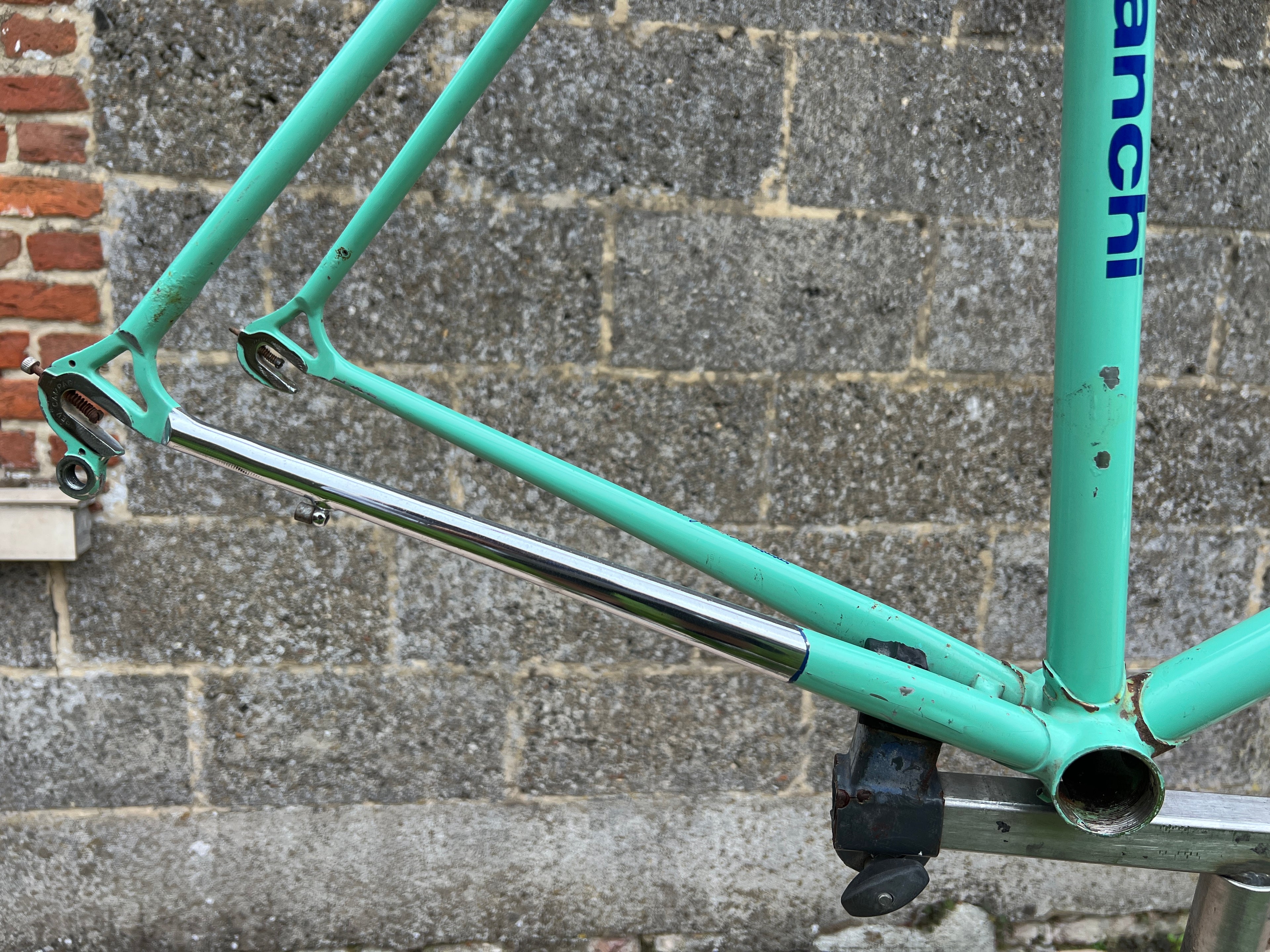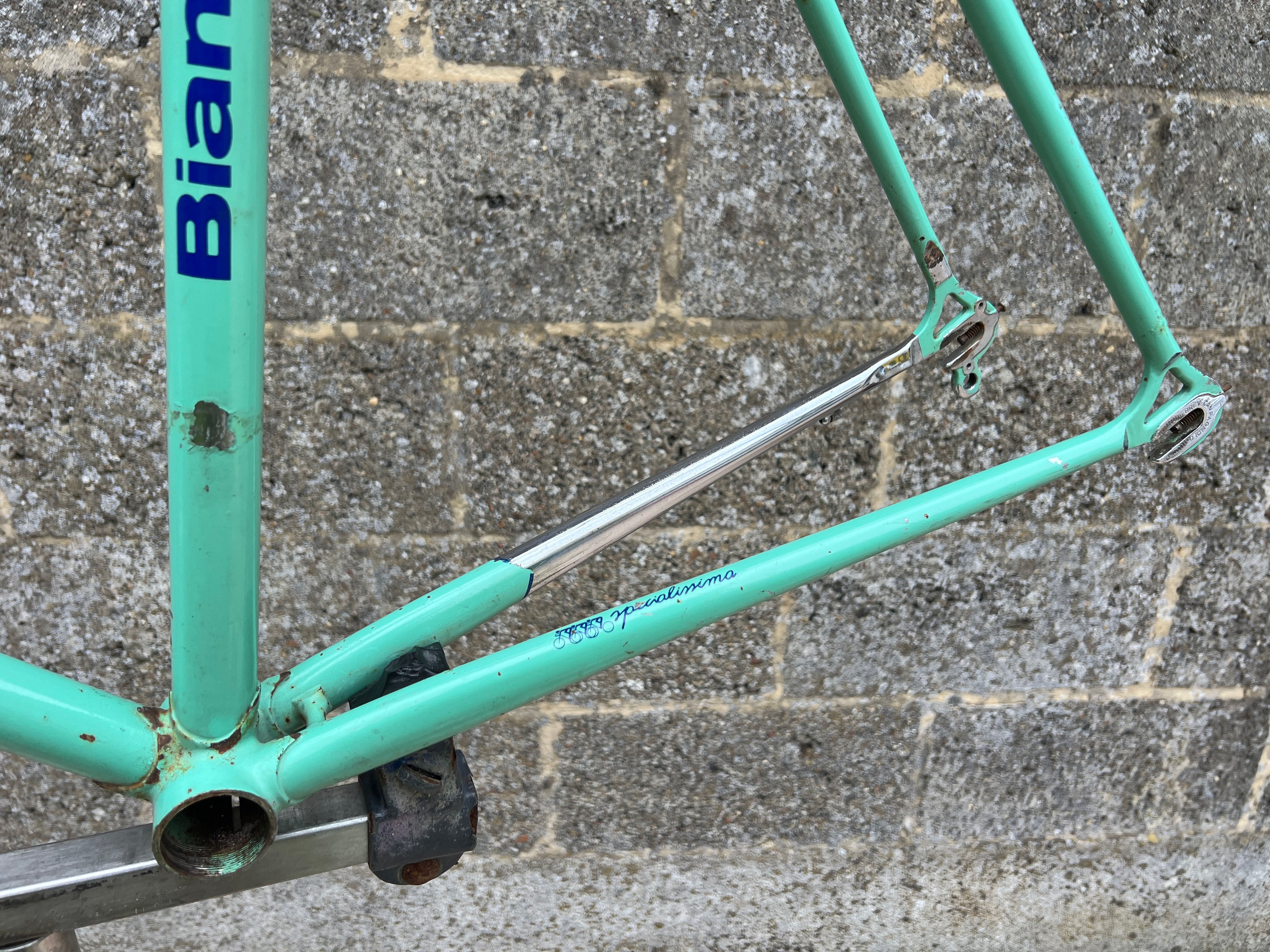 Wonderful Bianchi Specialissima frameset. A true Italian classic. The Bianchi Specialissima has been a top class model line since it’s first introduction in the late 1950’s. It’s the original paint and chrome. No cracks or dents.