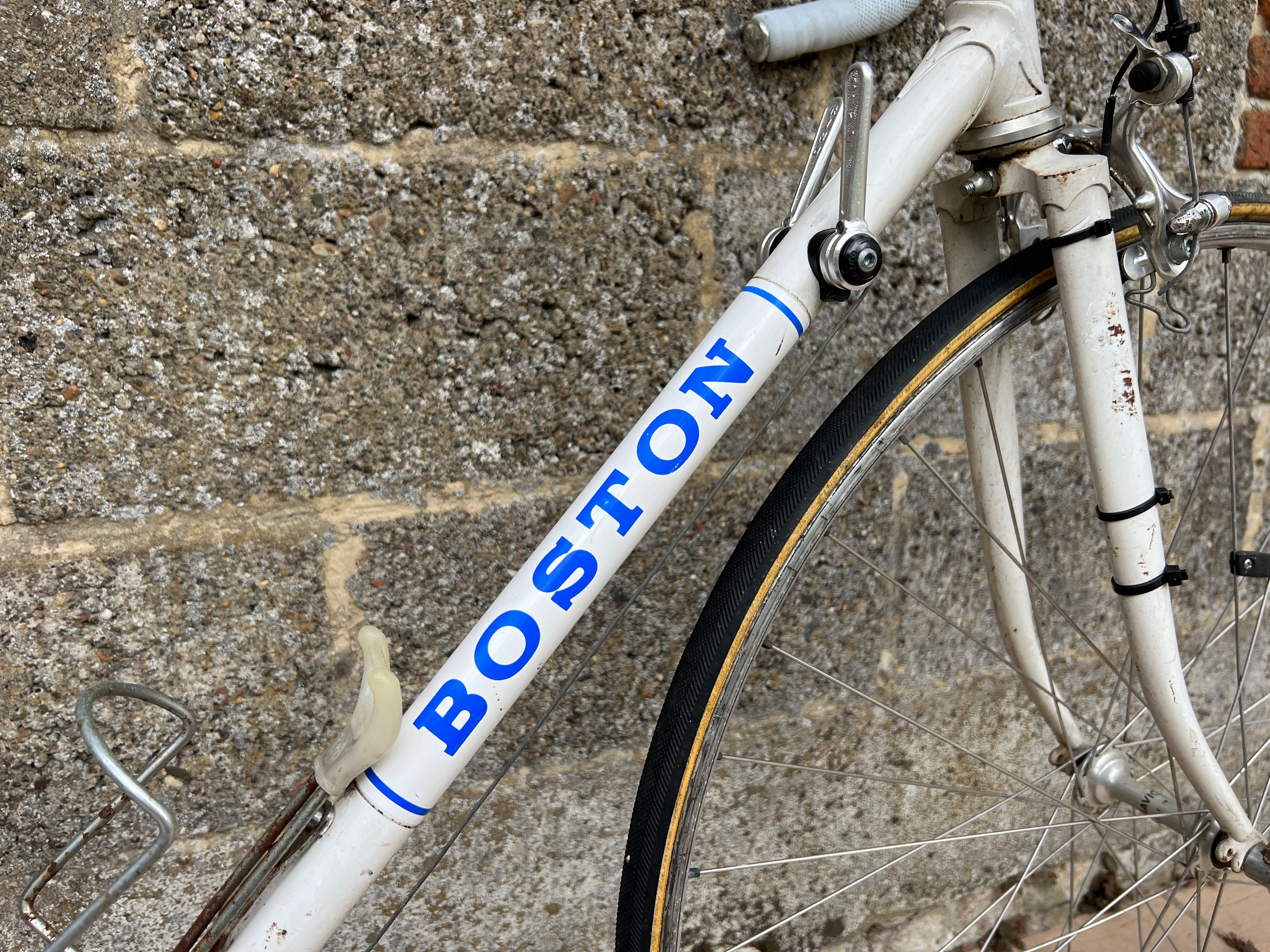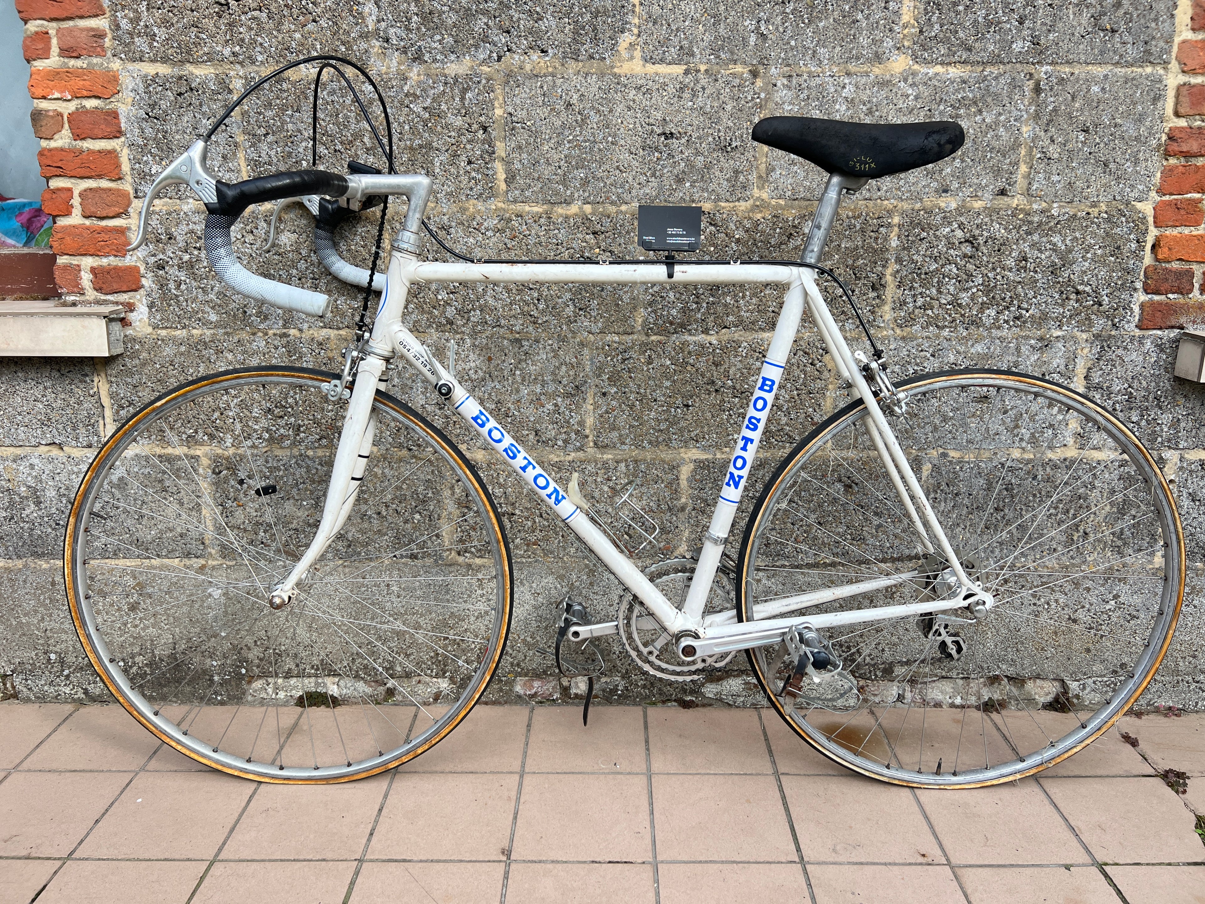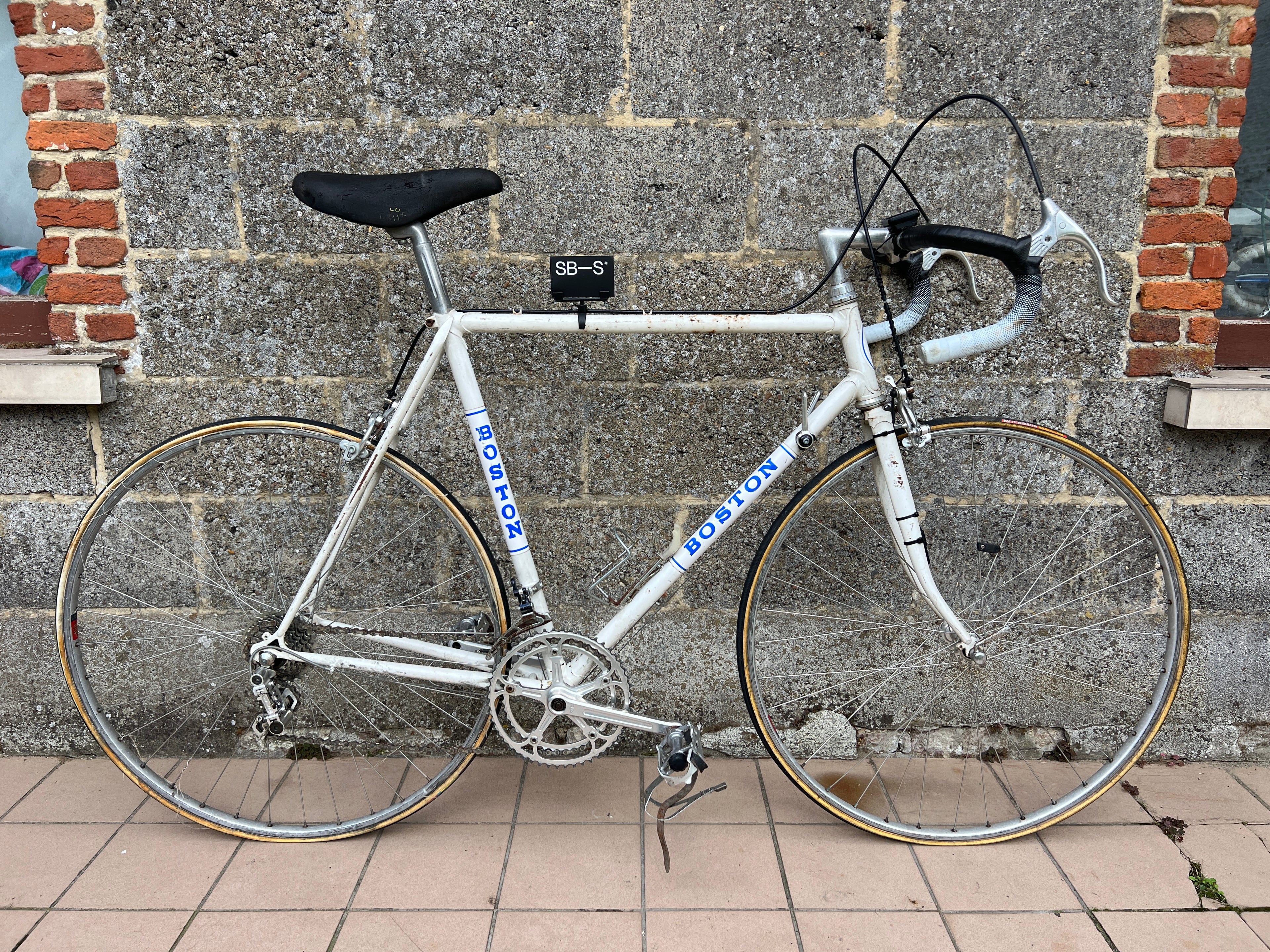 Wonderful Boston Mavic Road Bike from 1980/1981. Might have been a team bike, but I can’t say for sure. Barn find—uncleaned and untouched. A wonderful project to restore.