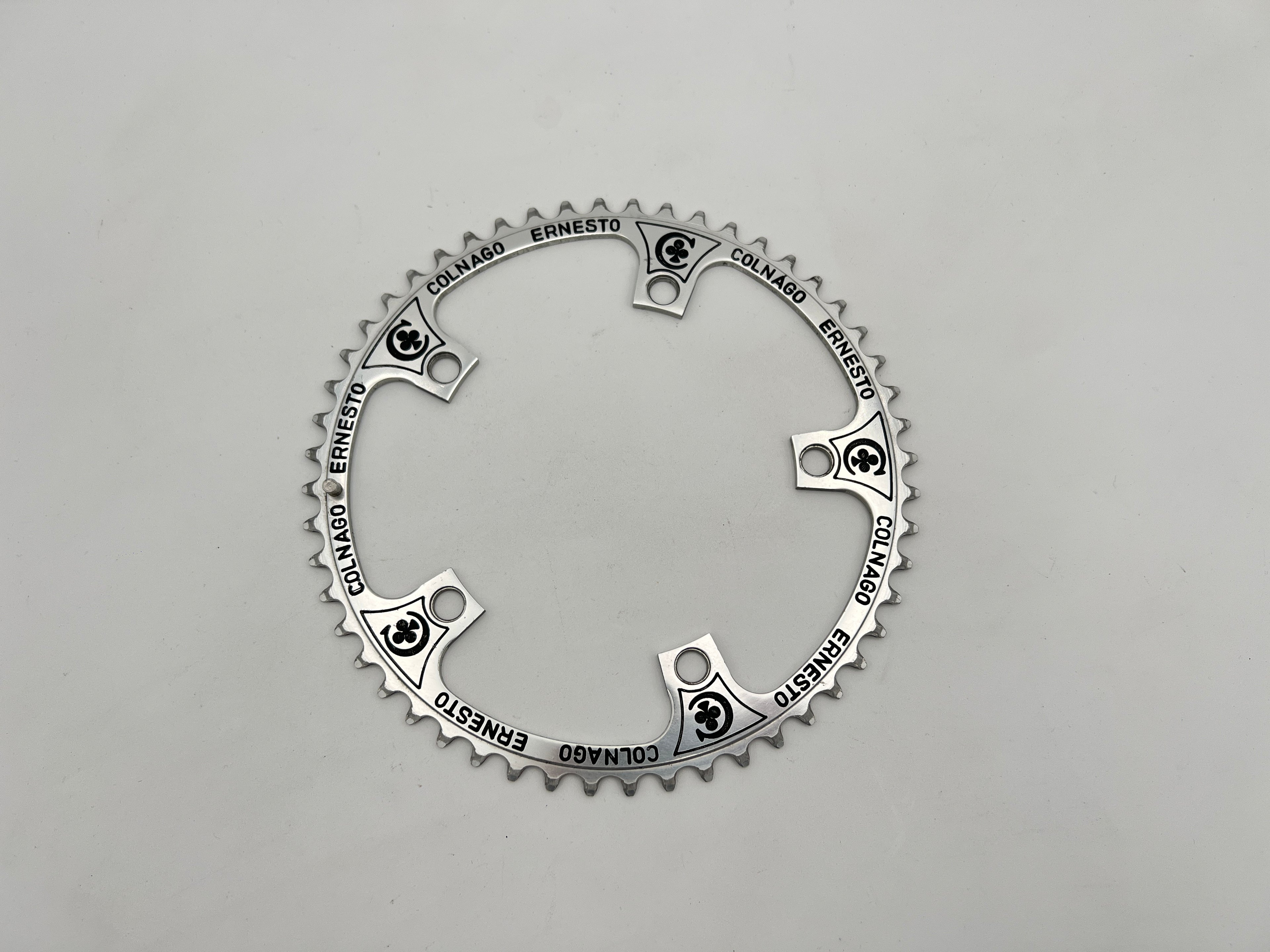 Campagnolo Panto 'Colnago' Panto Super Record Chainwheel 144bcd.Chainwheel Colnago panto in very good condition. Slightly used. 144bcd. 52T. Very good condition. Made in Italy. Perfect to finish your Colnago project.