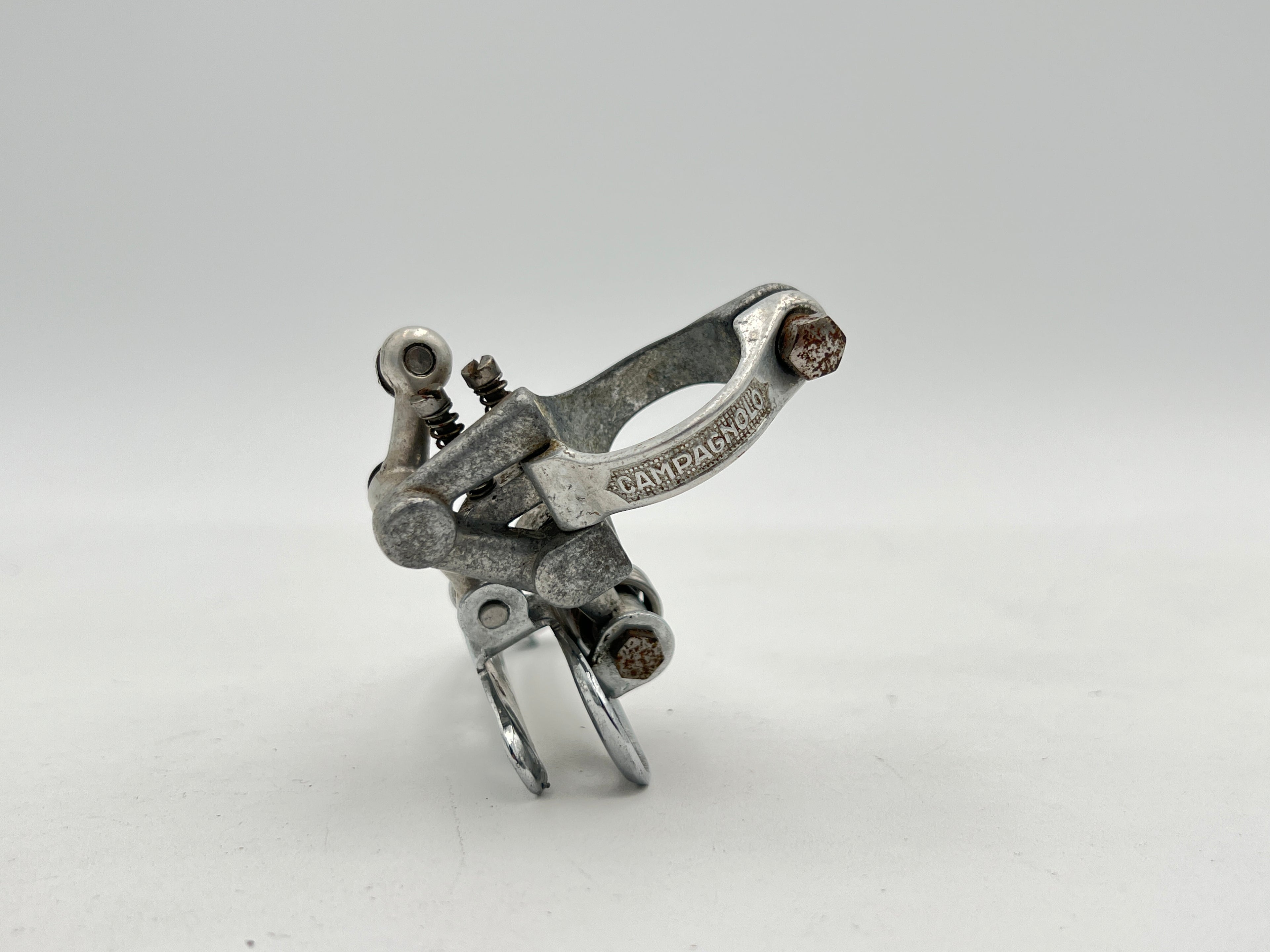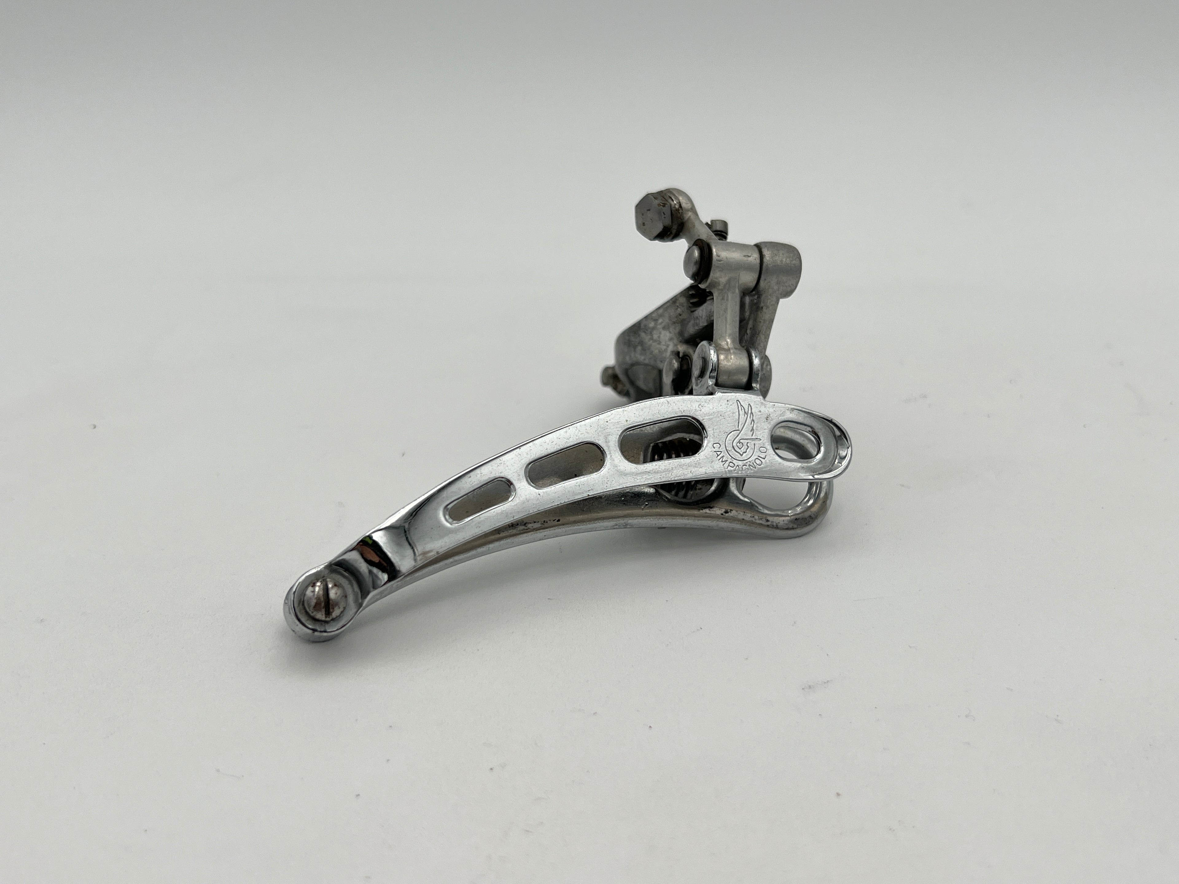 Beautiful and original Campagnolo Record front derailleur from 1978. Only produced for one year. This is the classic 4-hole cage version with the slimmer clamp. Perfect for period correct build.