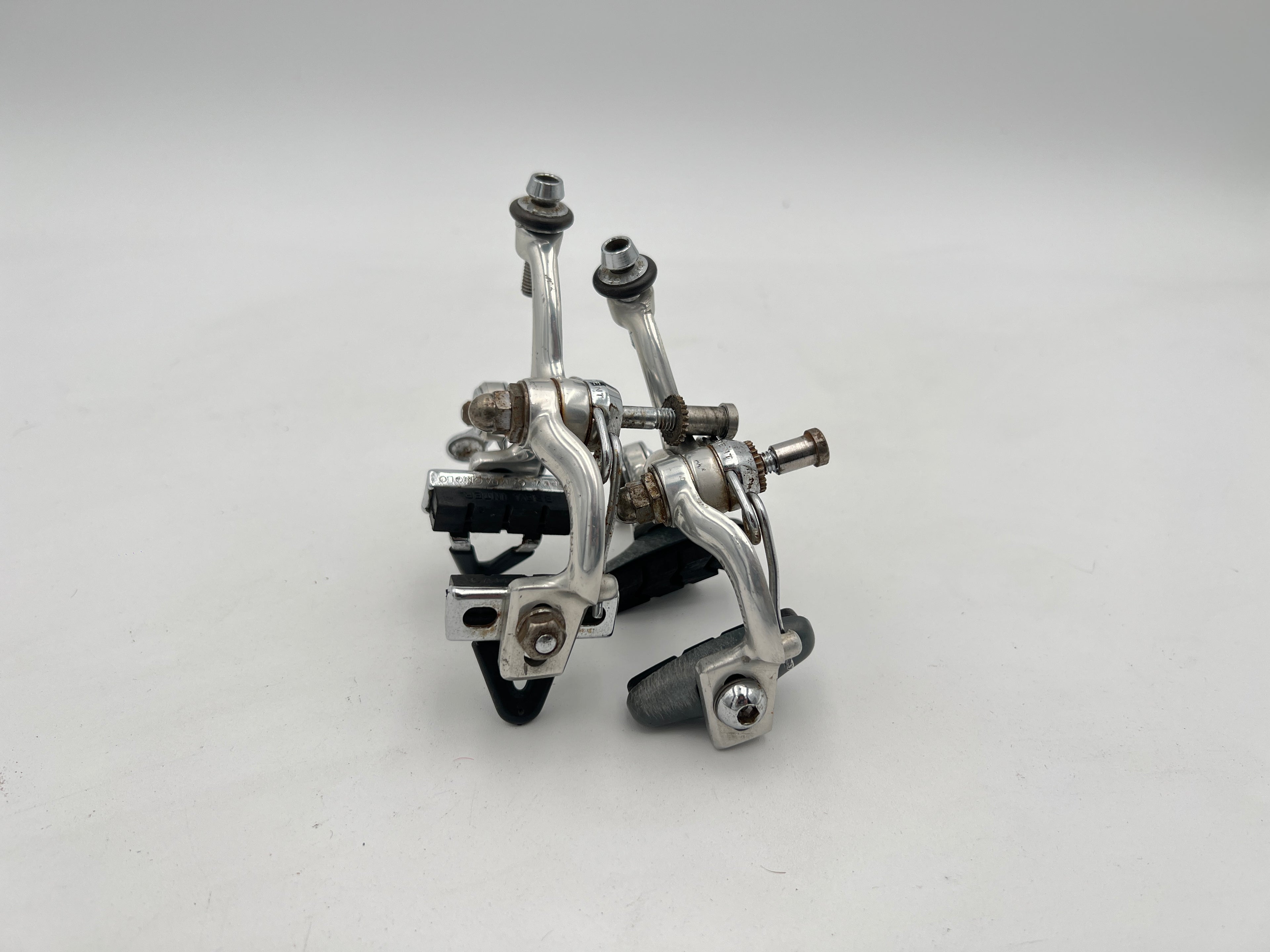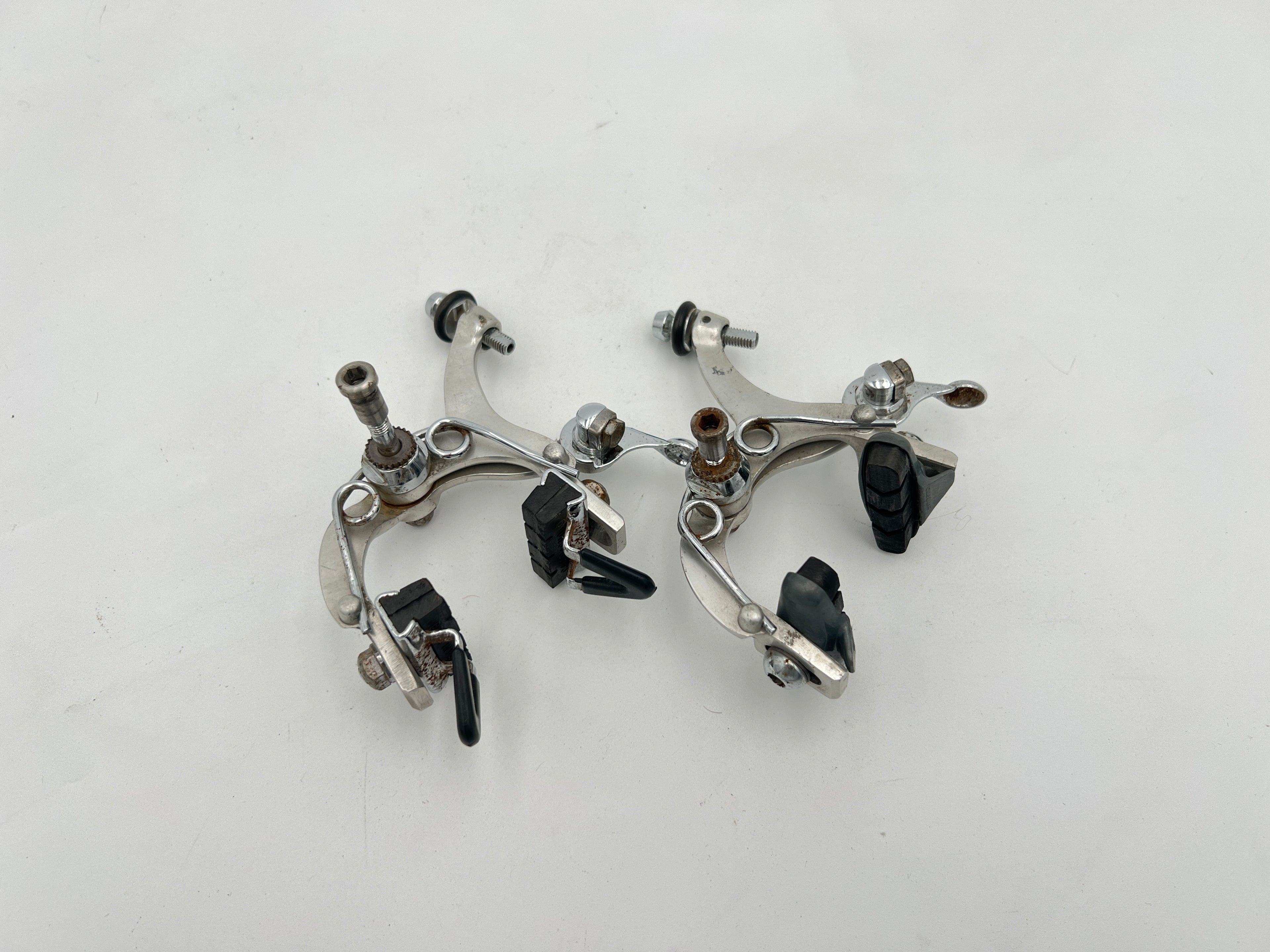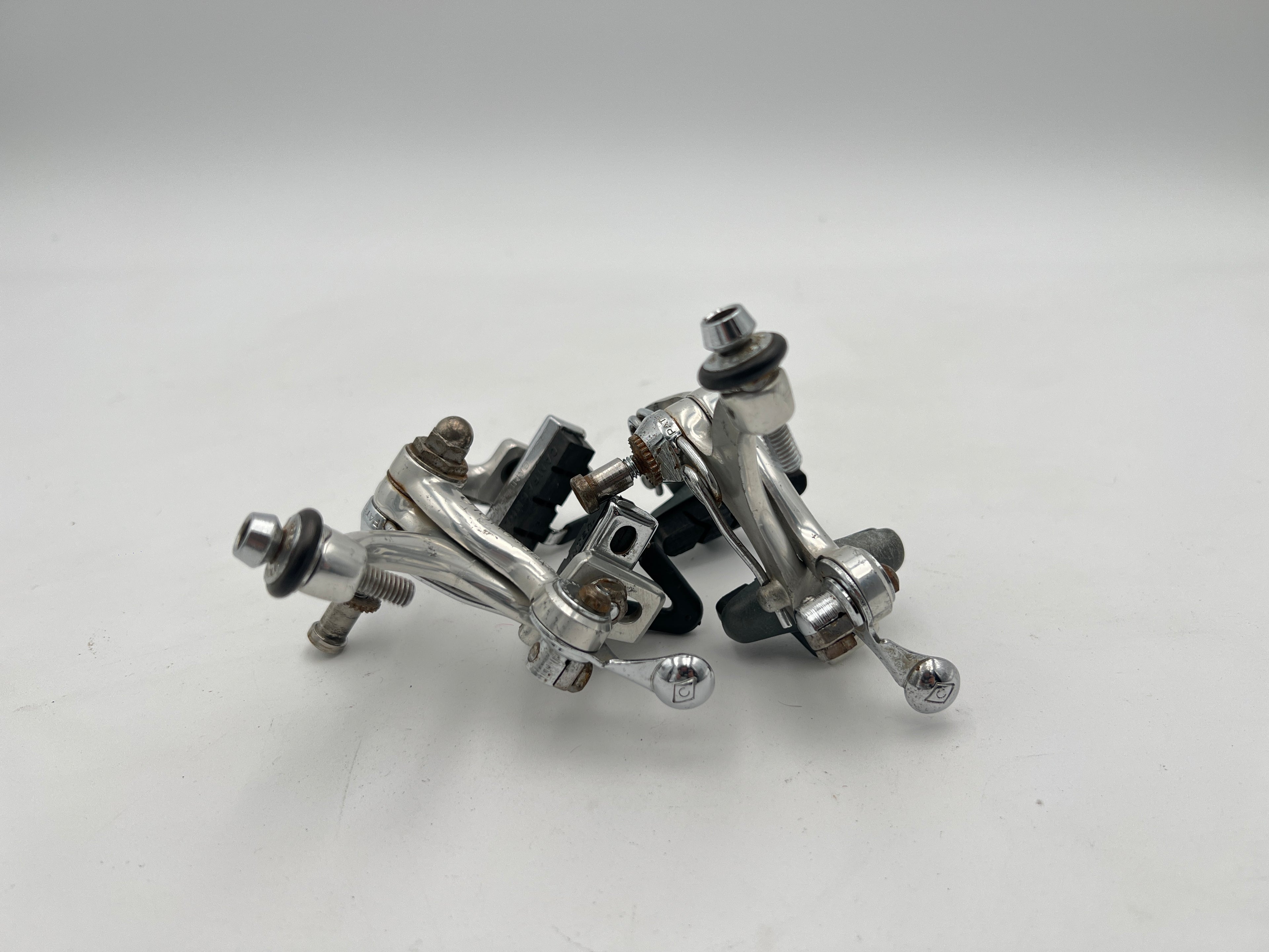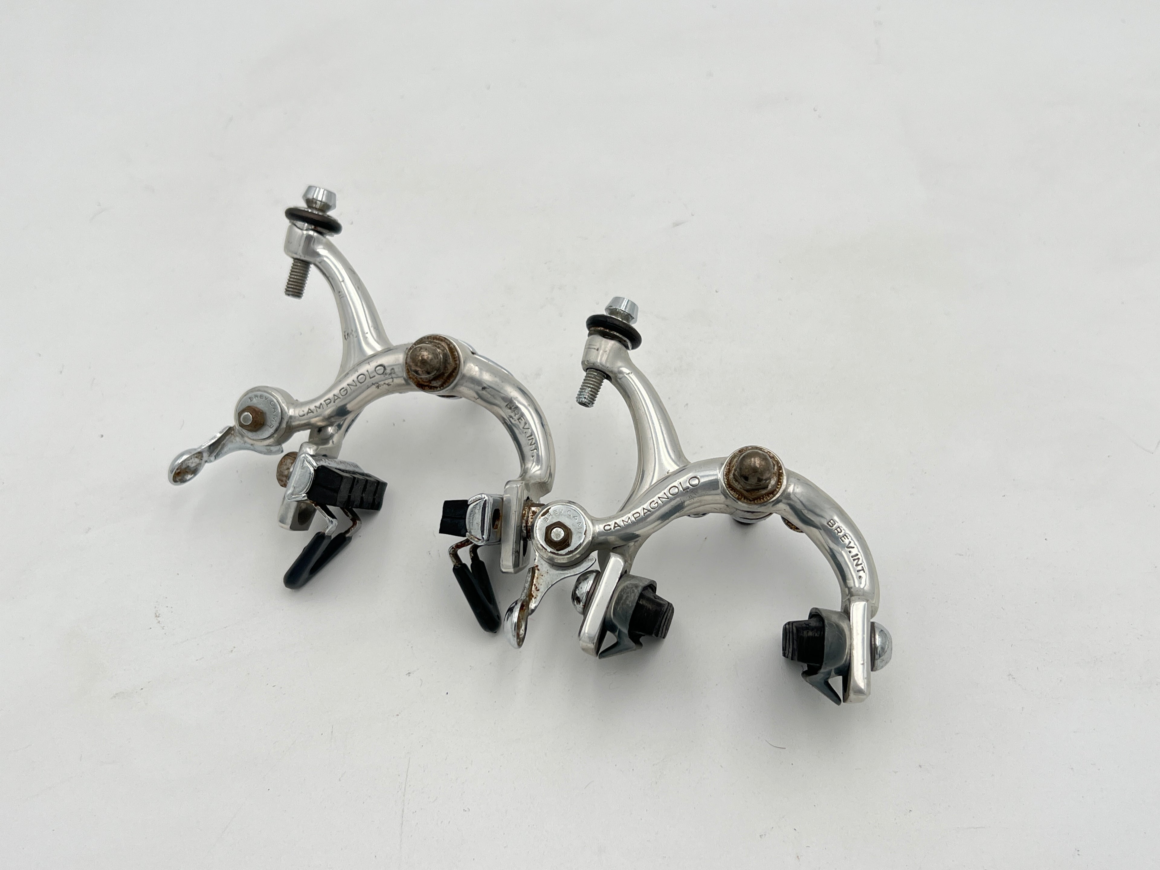 A pair of Campagnolo Record Brake Calipers. One caliper has non original brake shoes.