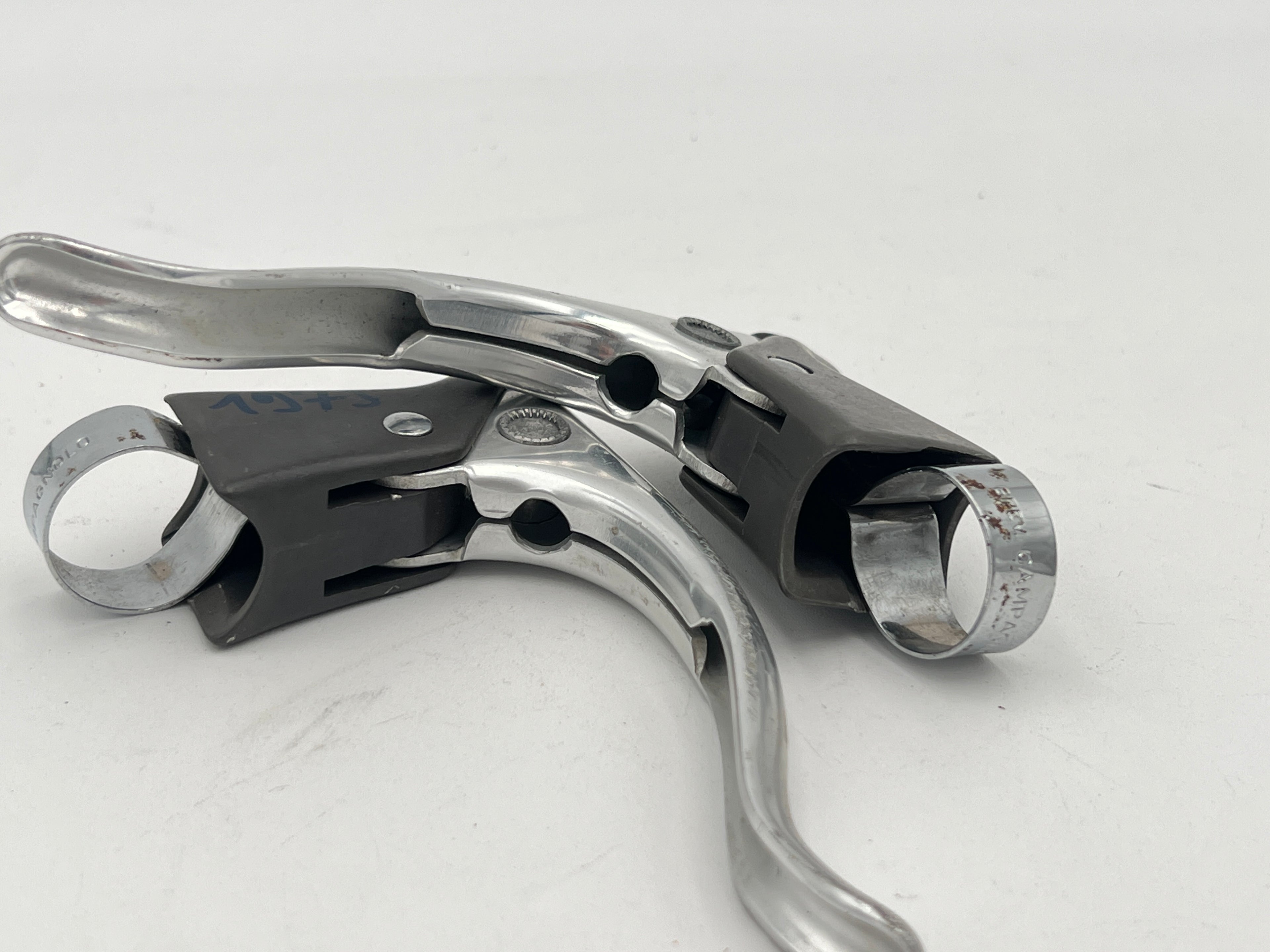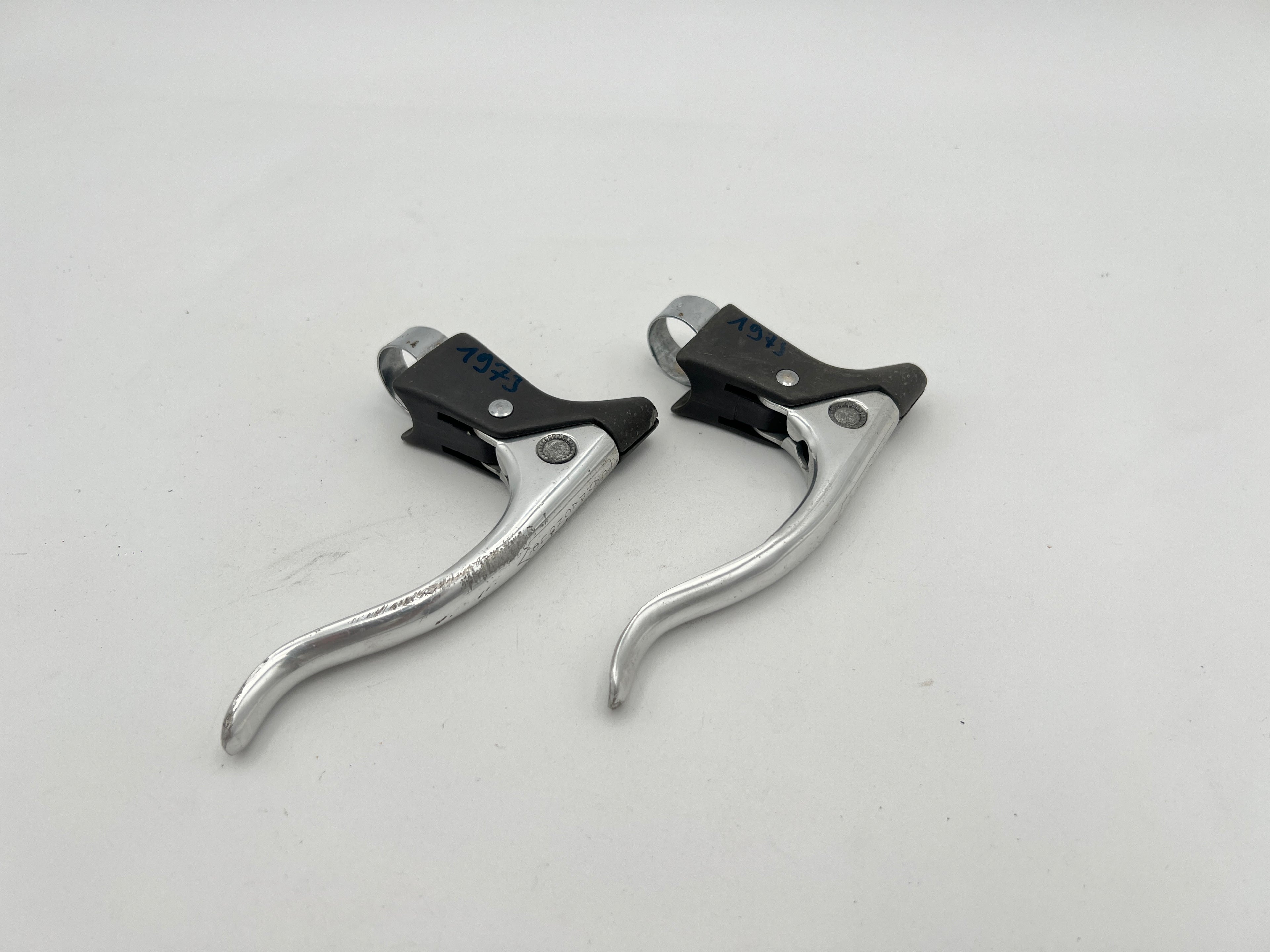 Pair of Campagnolo Record Brake Levers, early generation. The first series with the circle at the bottom of the lever.