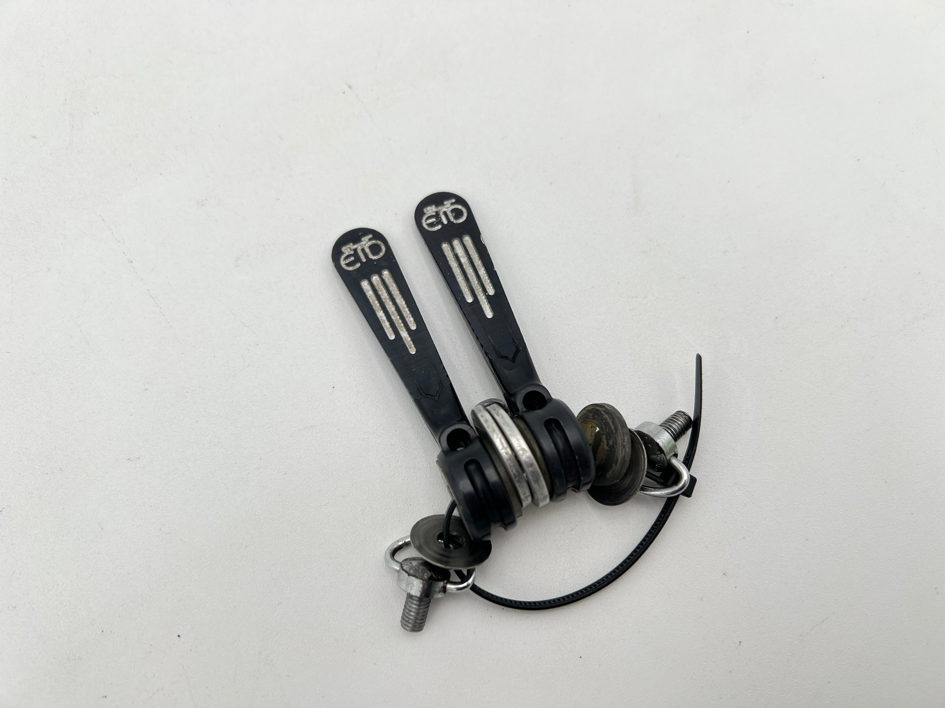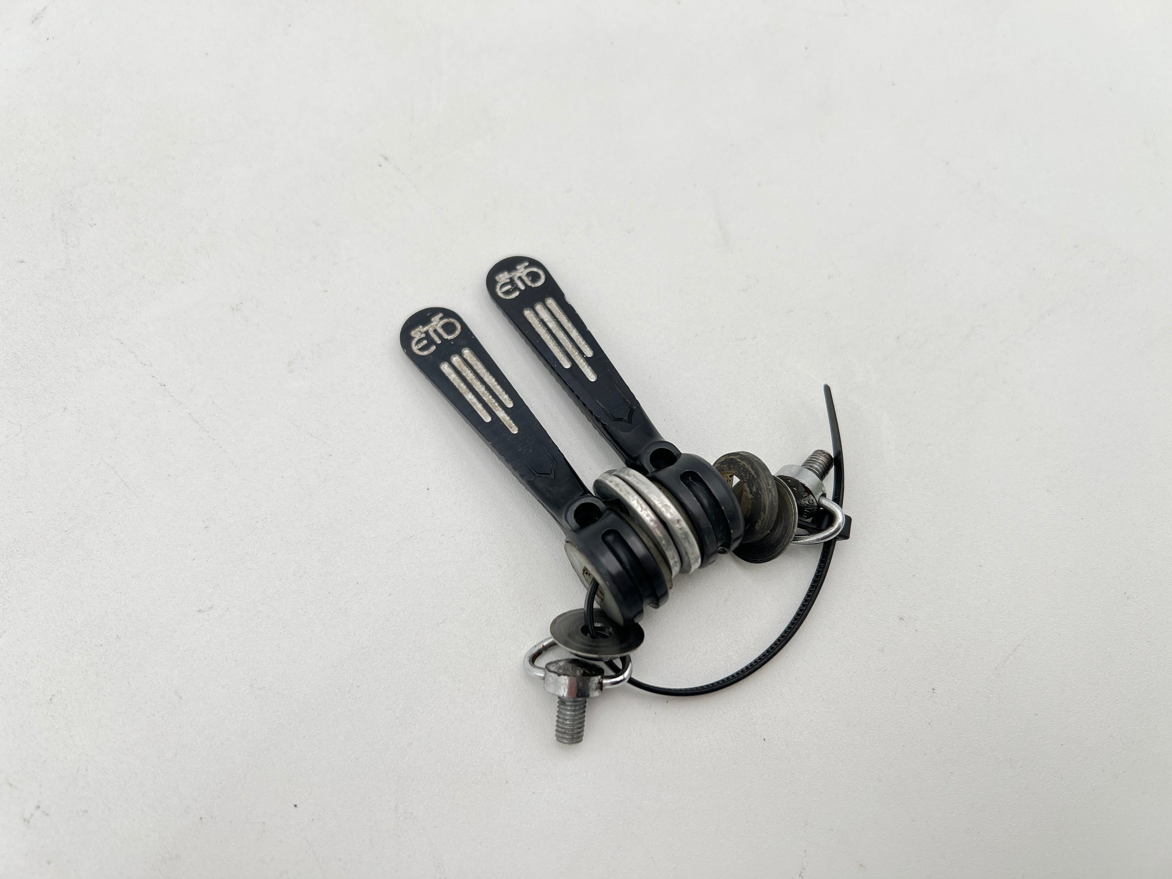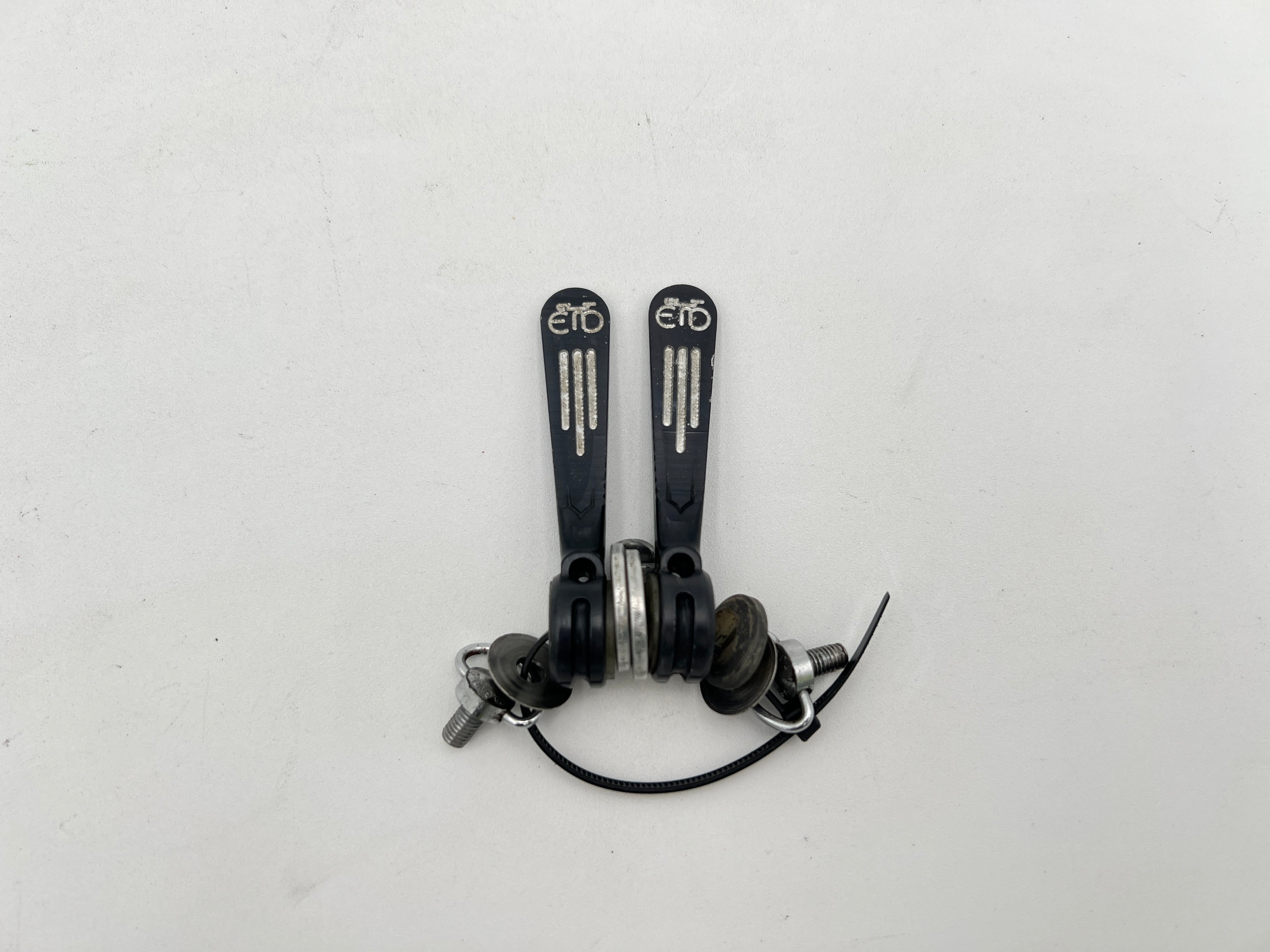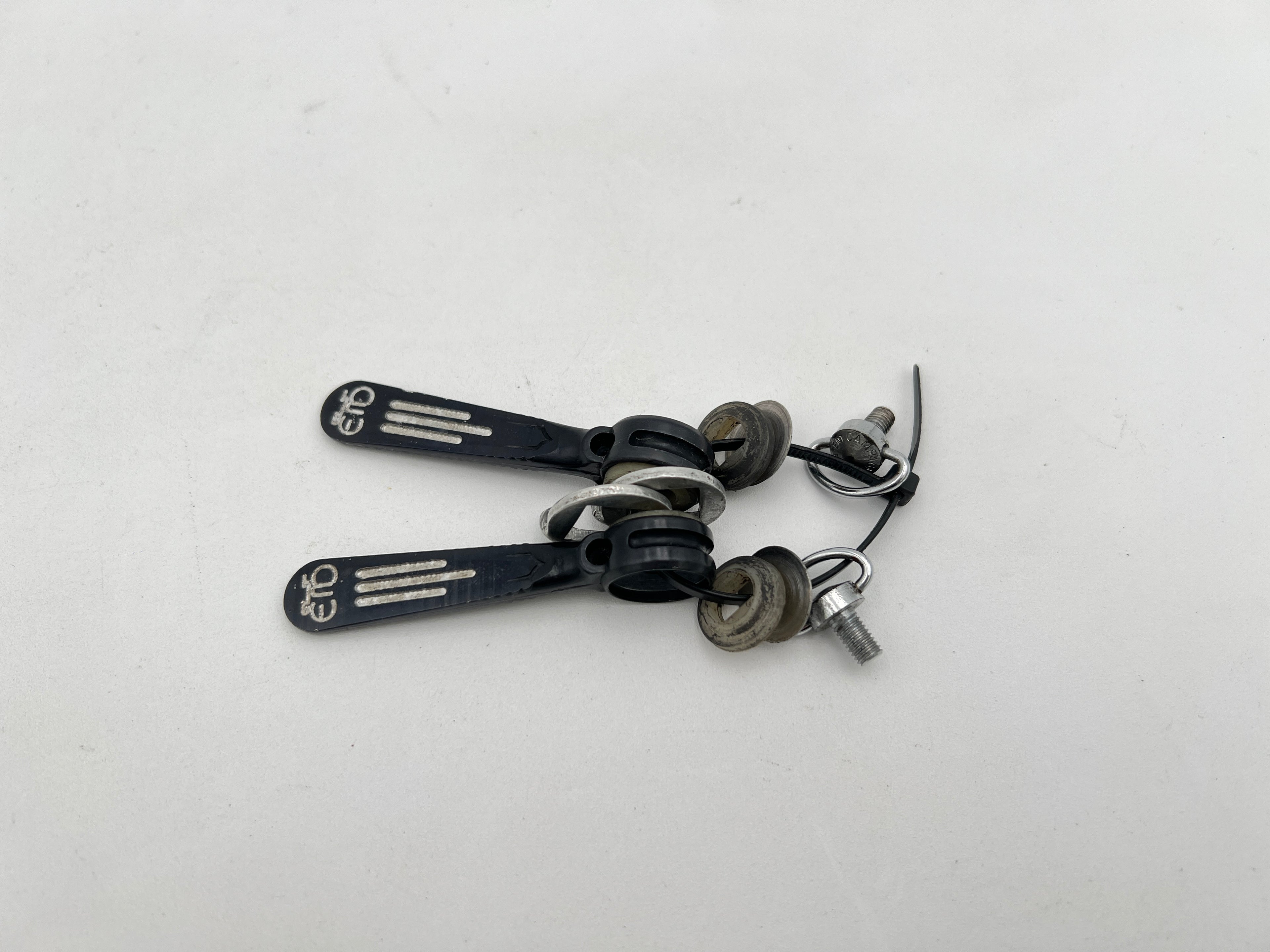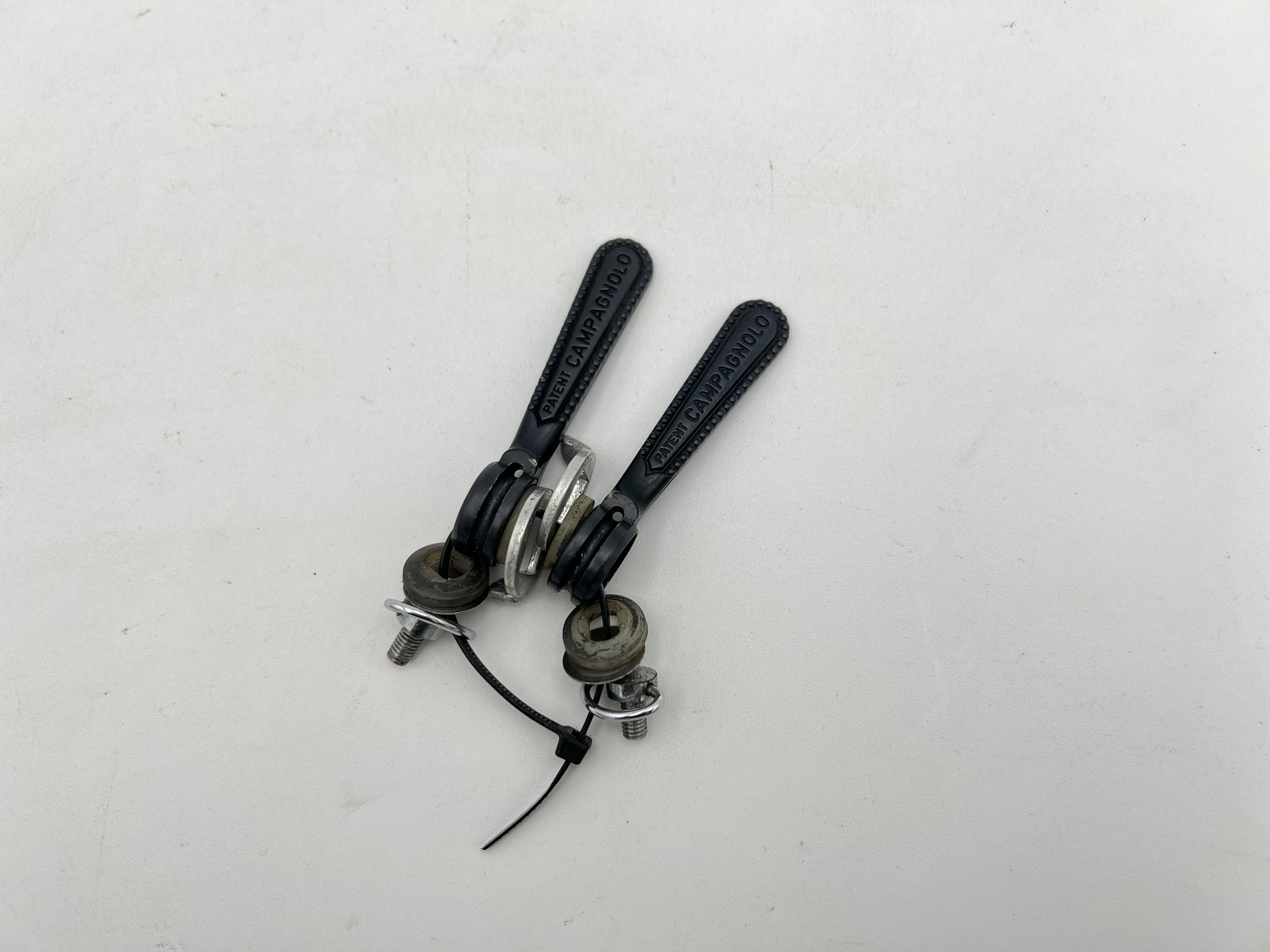 Original pair of Campagnolo Record Panto Eddy Merckx Shifters. Original black finish. The perfect shifters to complete your Eddy Merckx project.