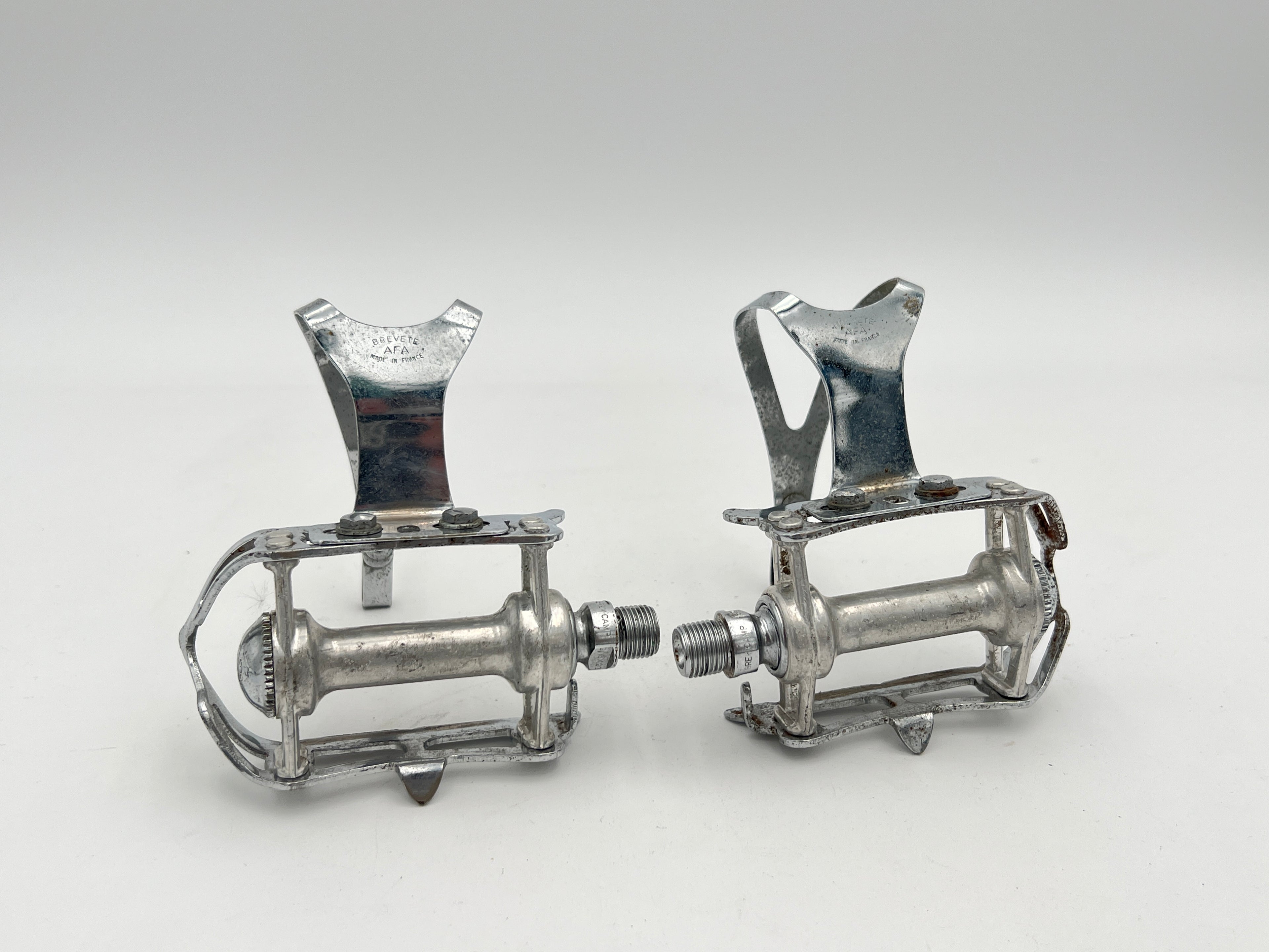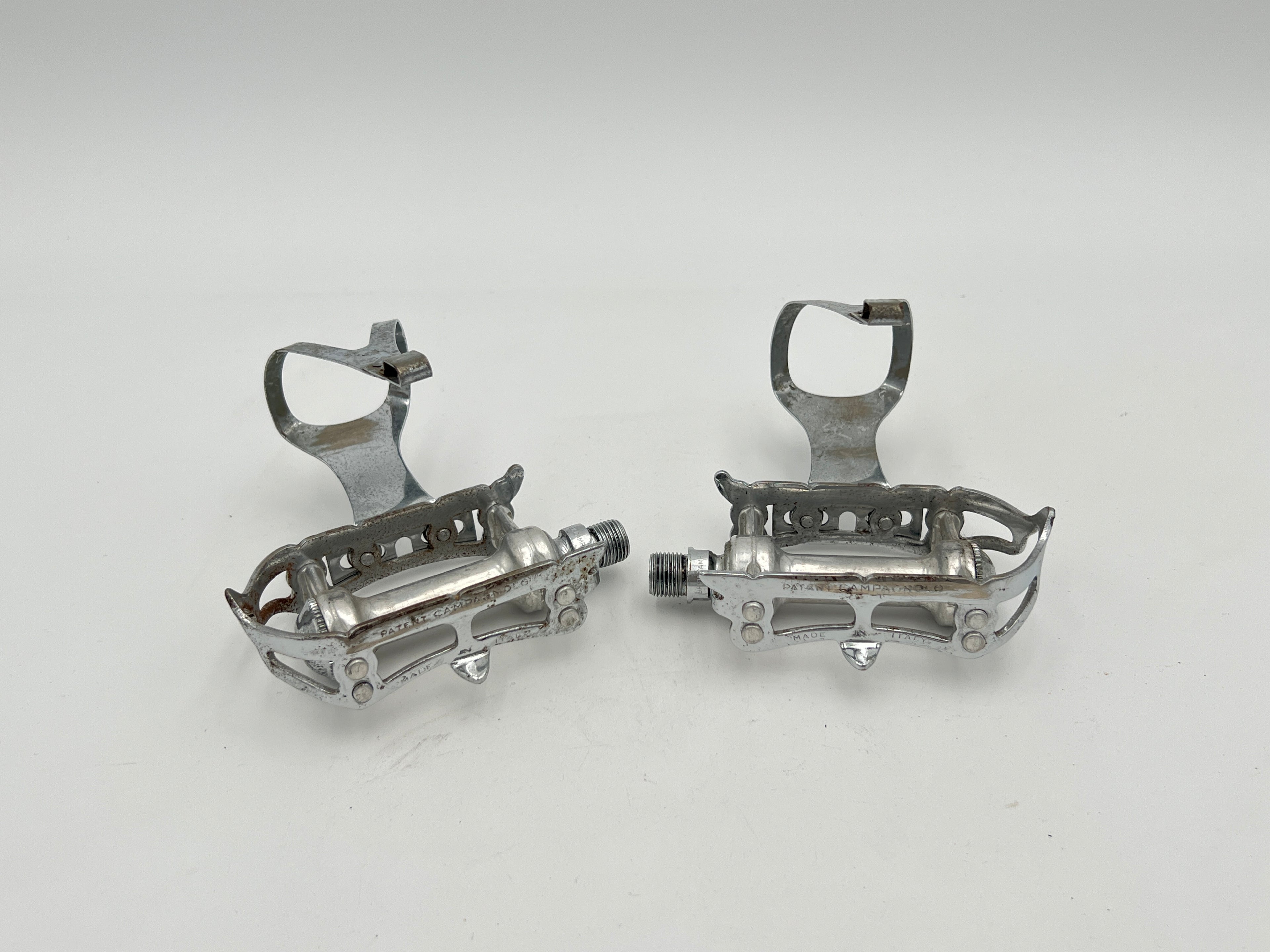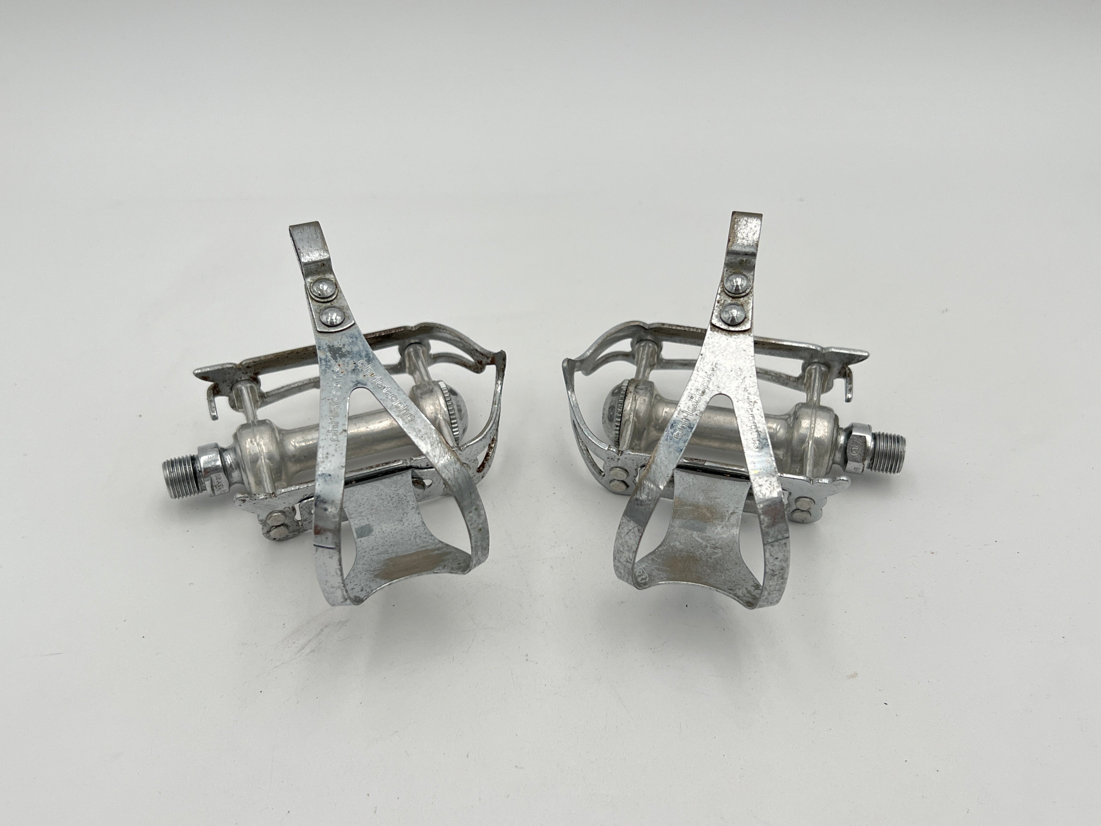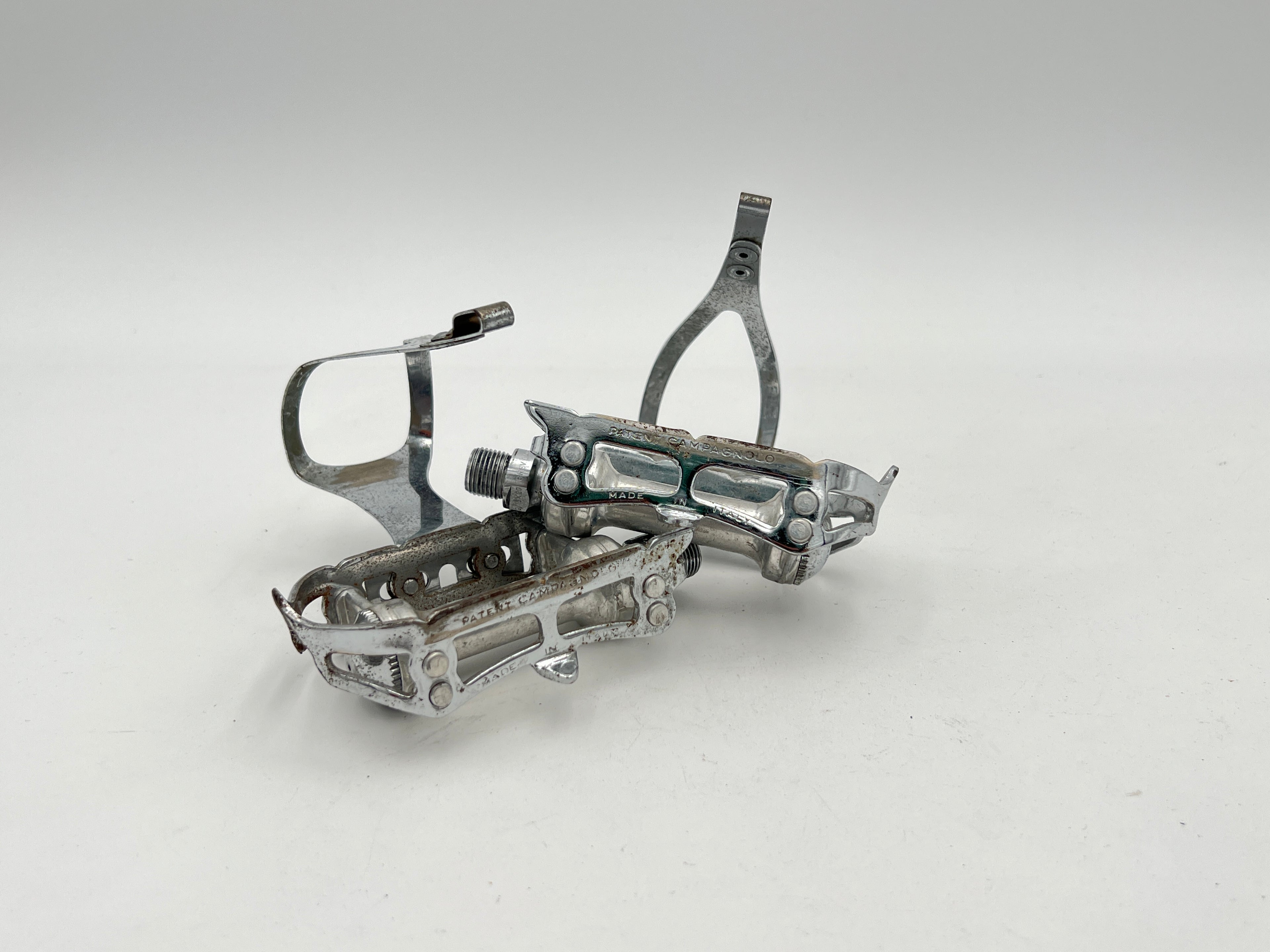 Original pair of Campagnolo Record Pedals Incl. Toeclips. Running smooth. Ready to install.