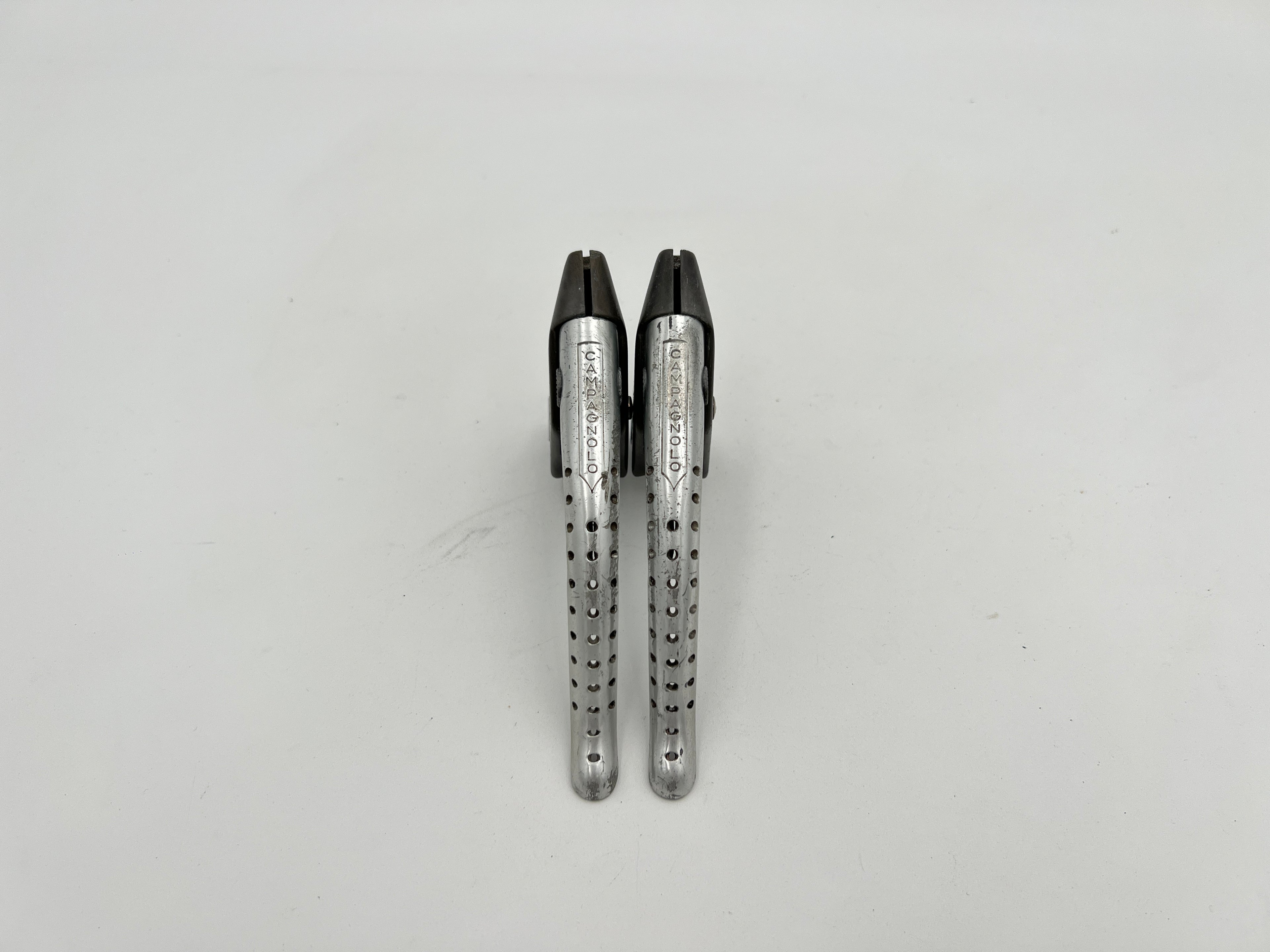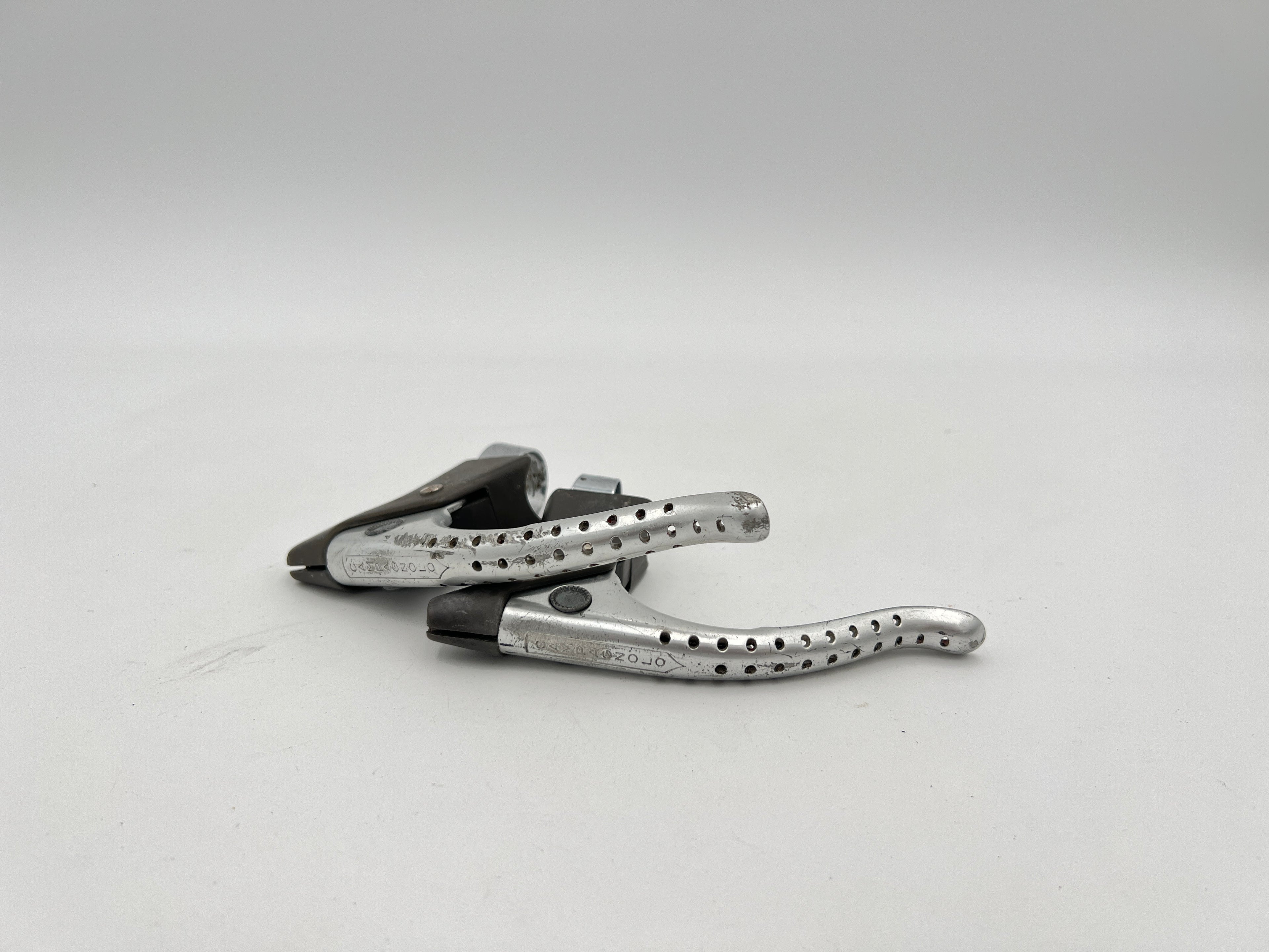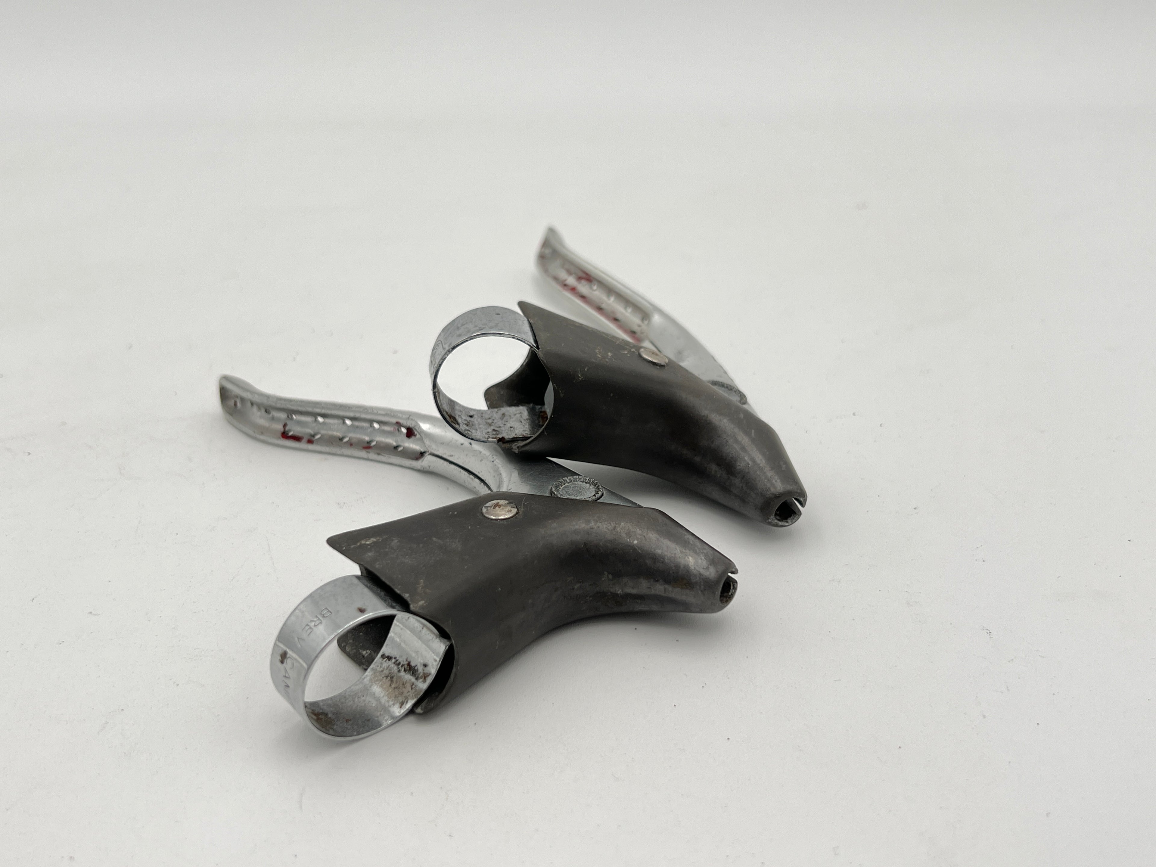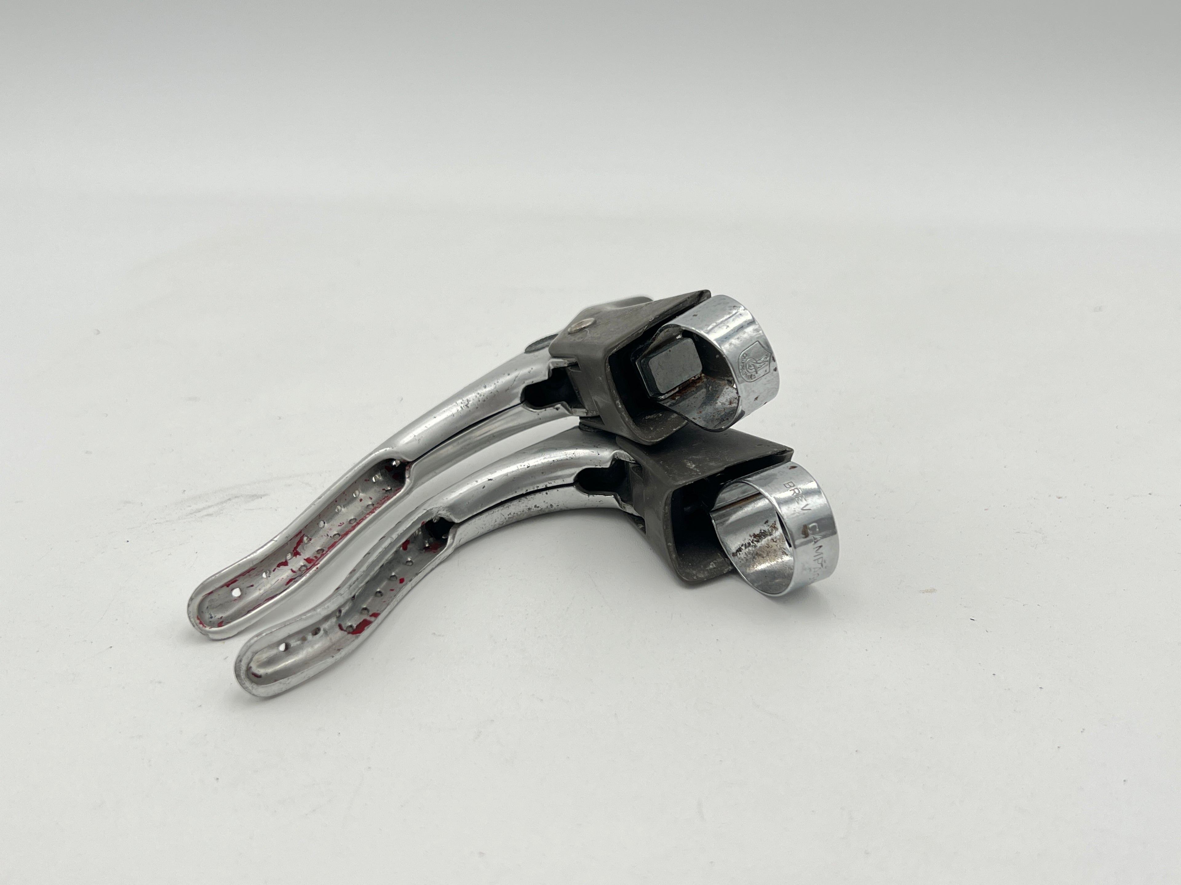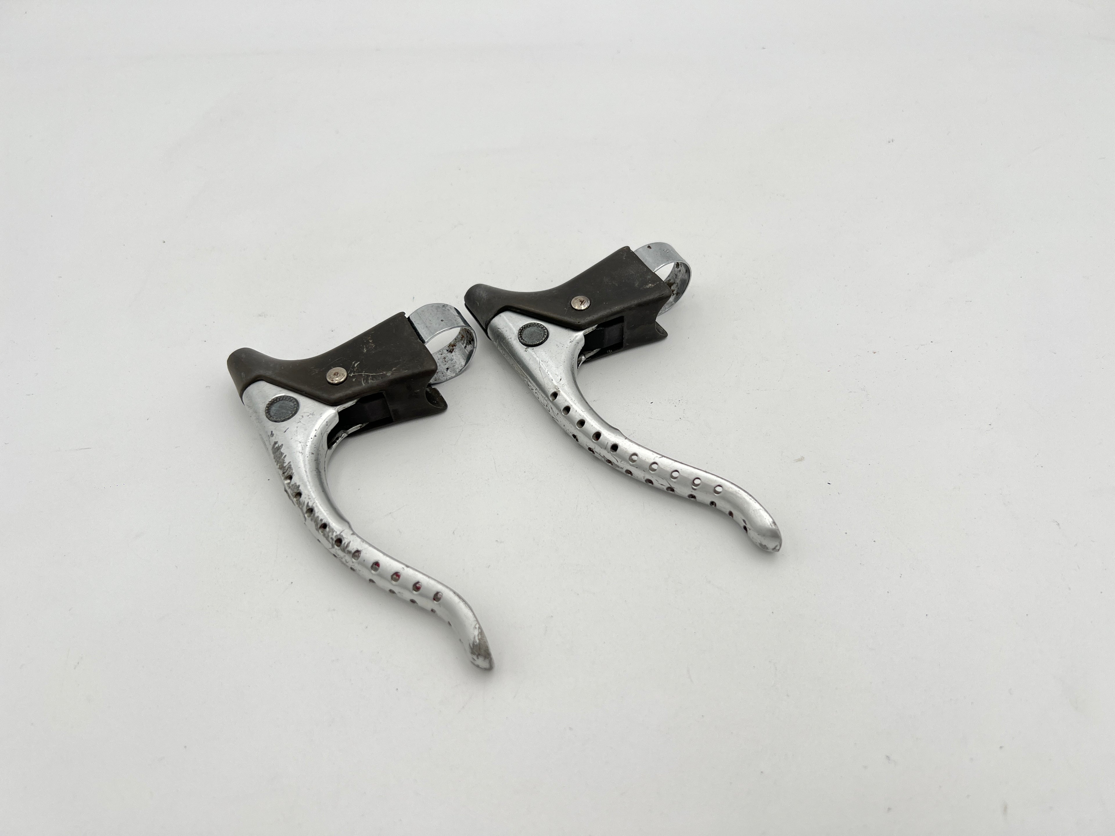 Original pair of Campagnolo Super Record Brake Levers. Not polished. Including 2 not identical, Campagnolo bar clamps.
