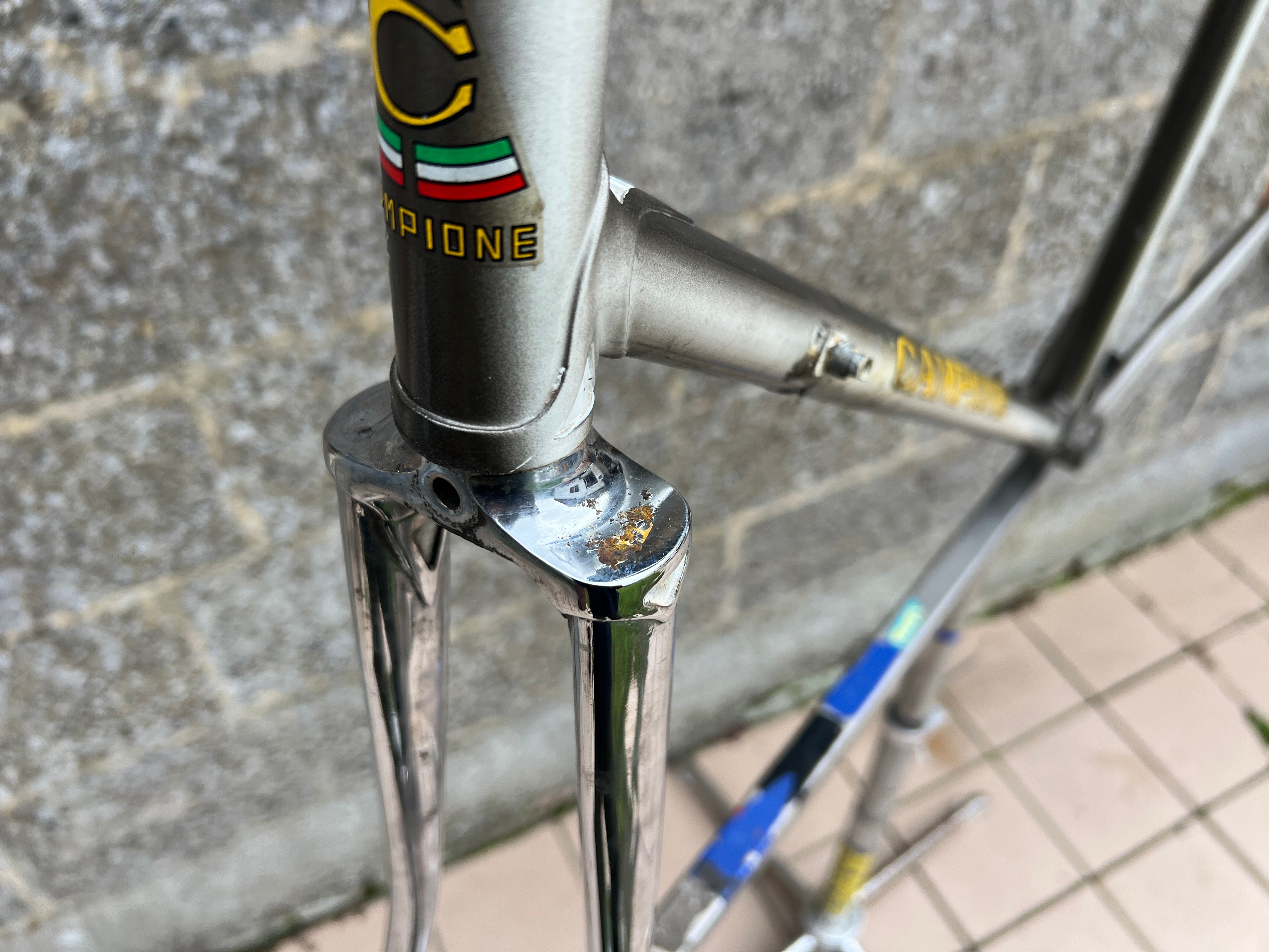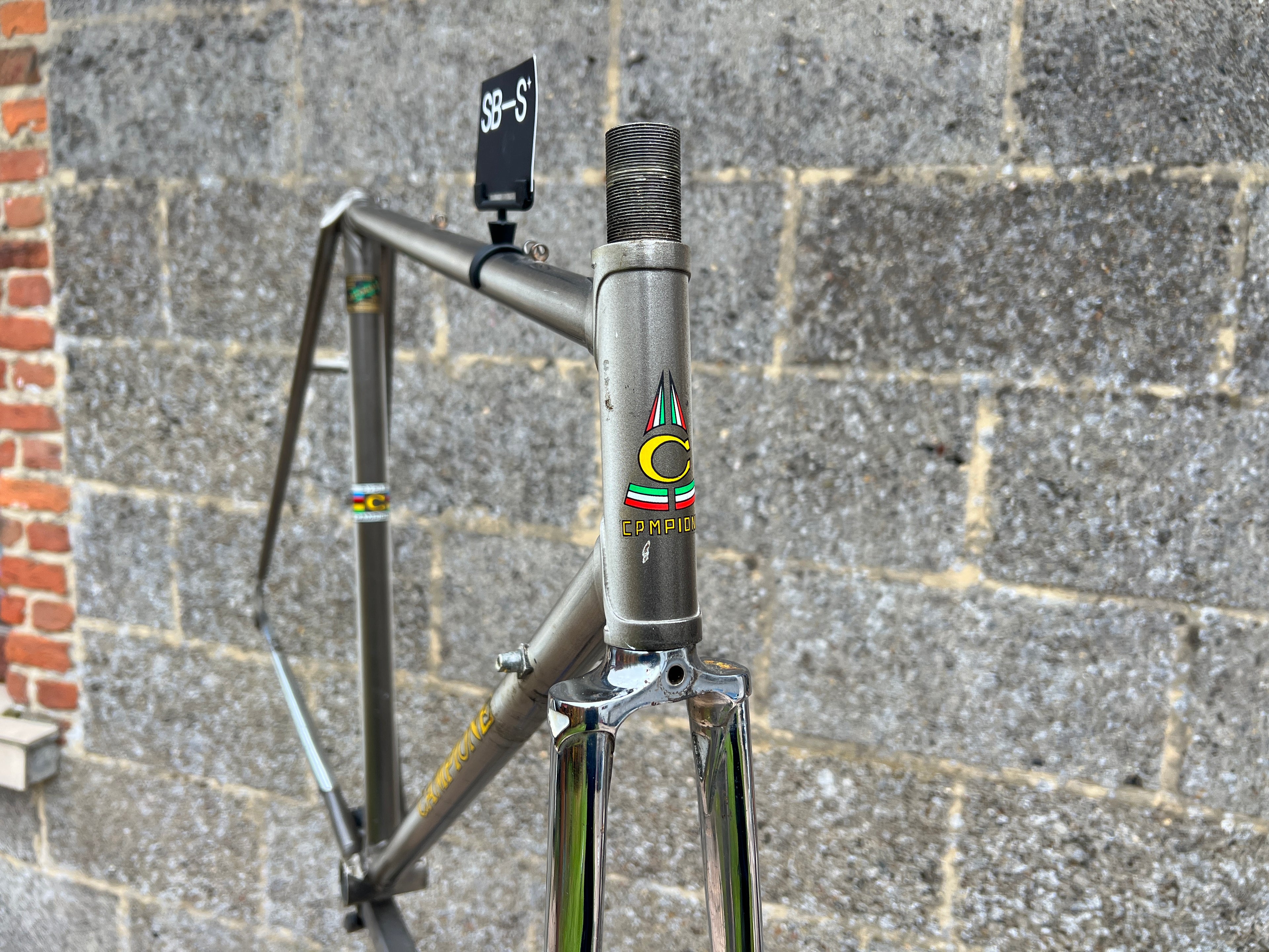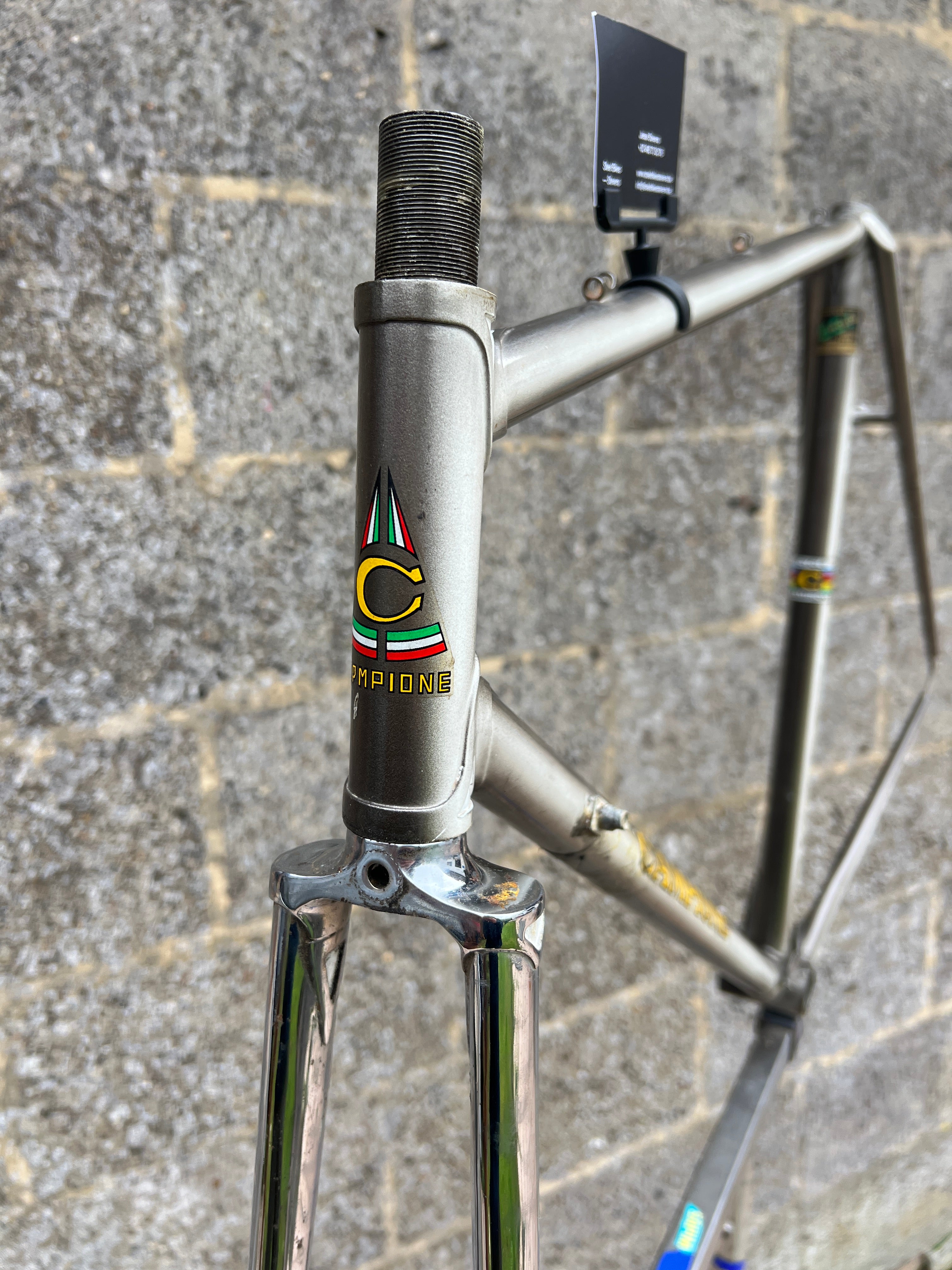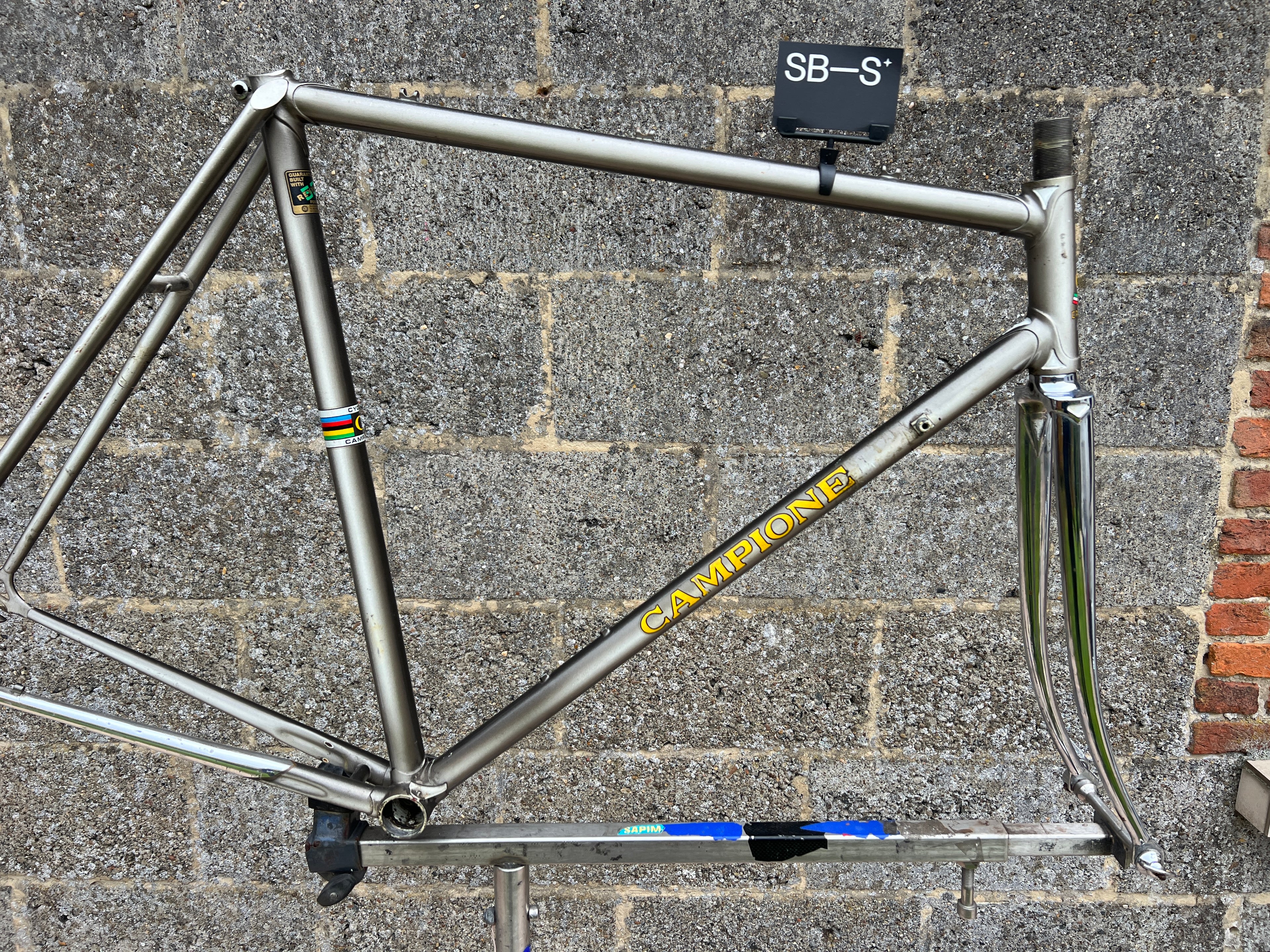 Campione Frameset. Belgian quality frameset. Campagnolo dropouts. No dents, no cracks. It’s a perfect project for anyone looking to build a reliable vintage road bike or restore a high-quality steel frame.