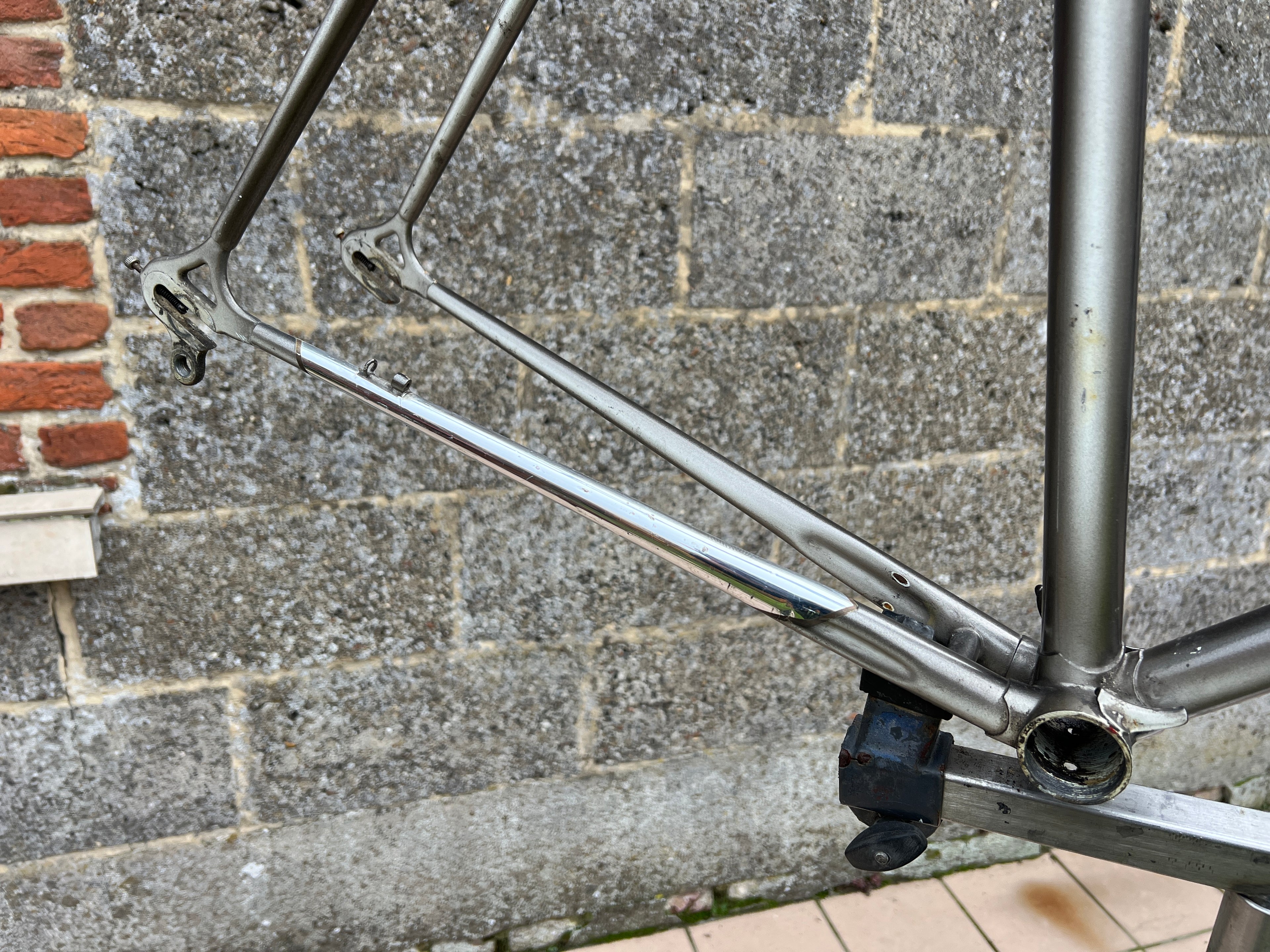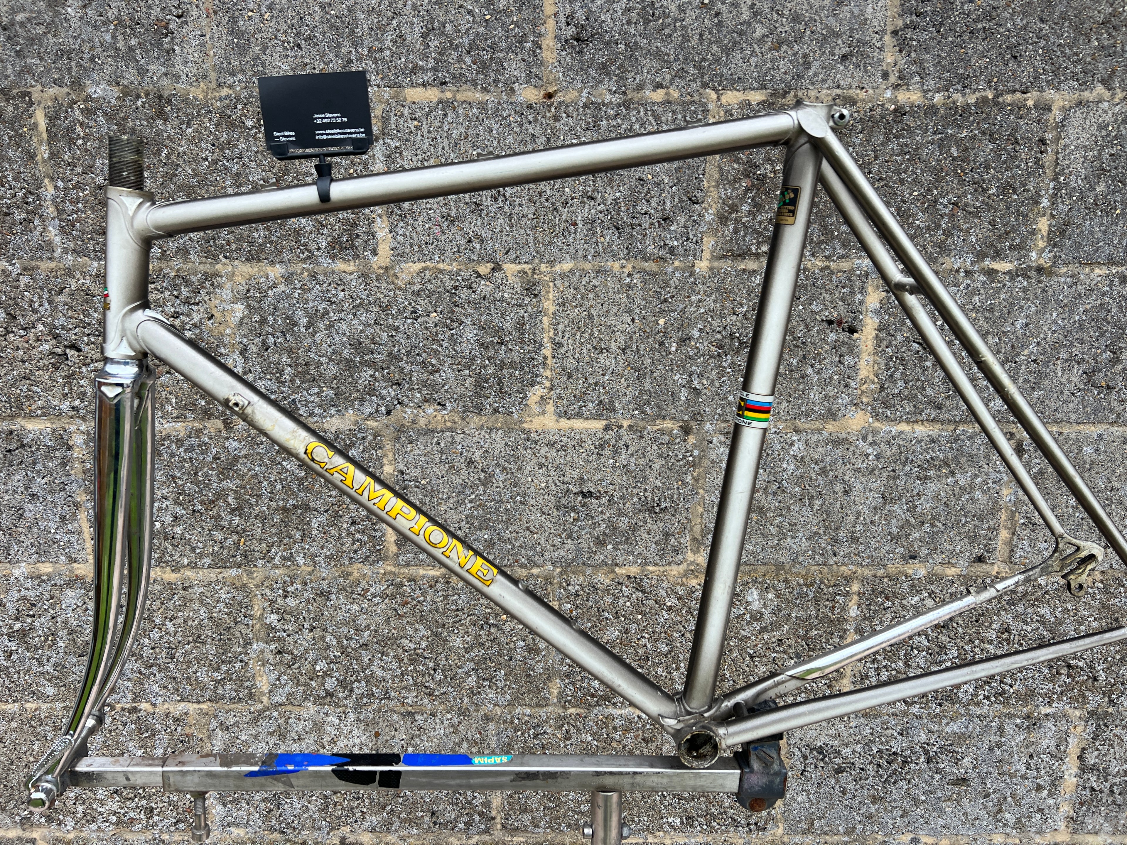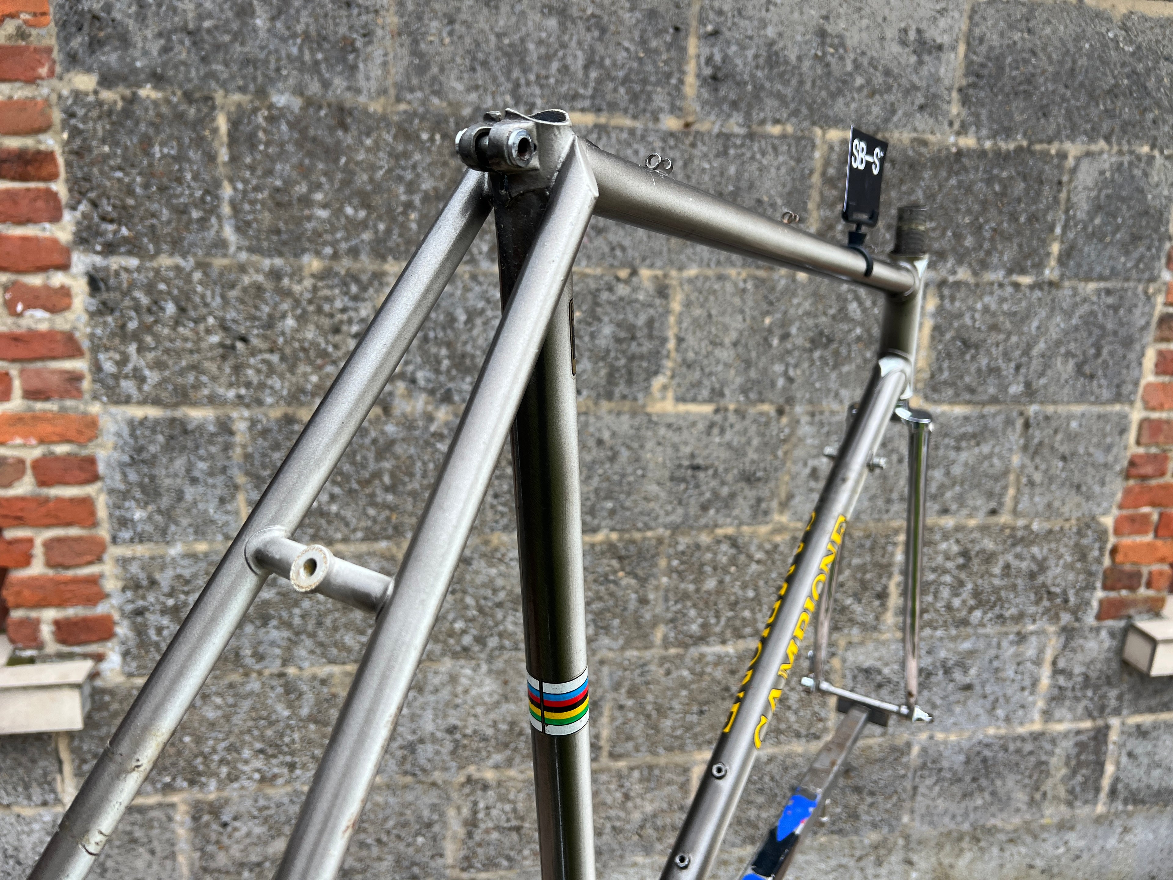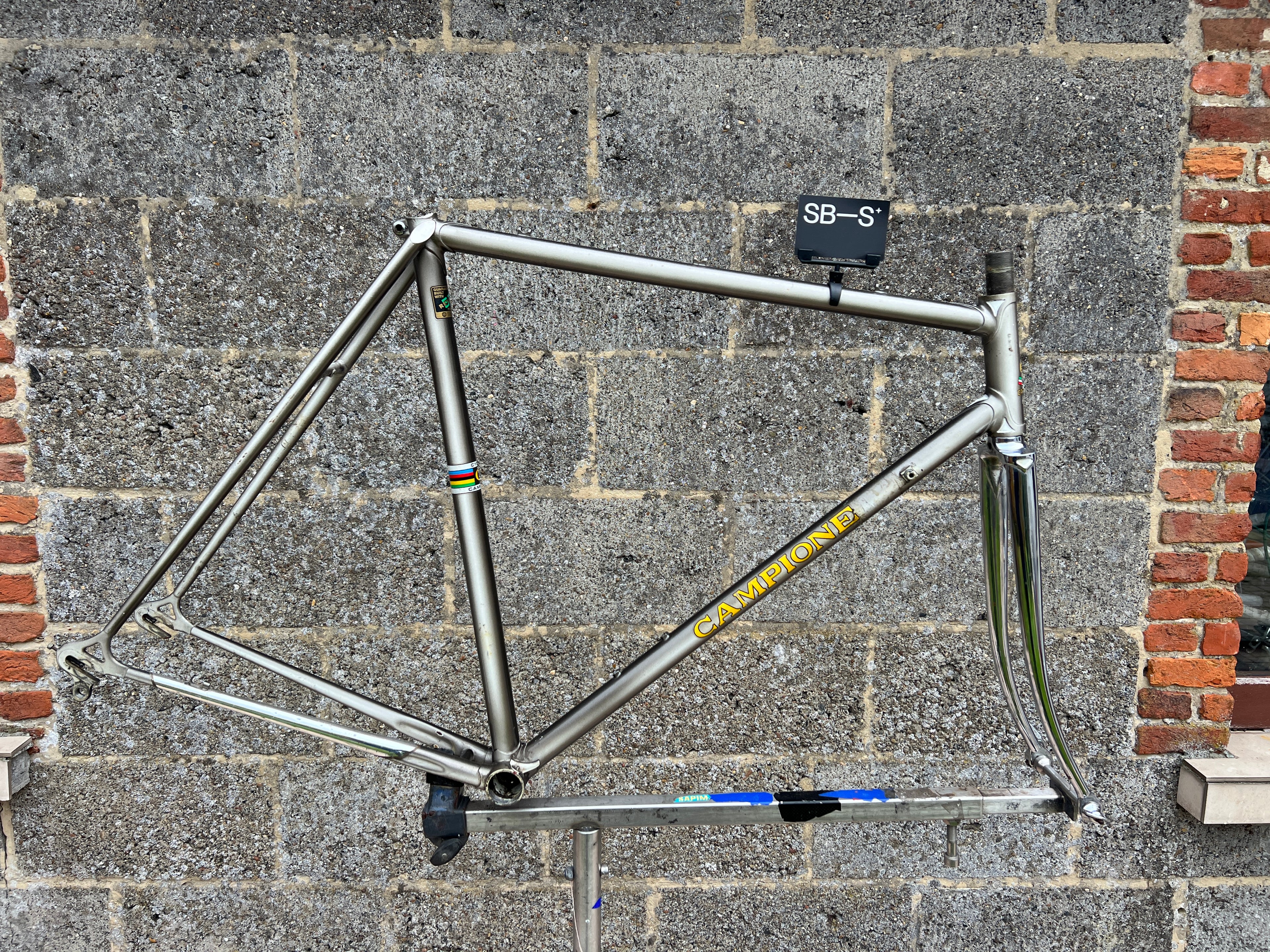 Campione Frameset. Belgian quality frameset. Campagnolo dropouts. No dents, no cracks. It’s a perfect project for anyone looking to build a reliable vintage road bike or restore a high-quality steel frame.