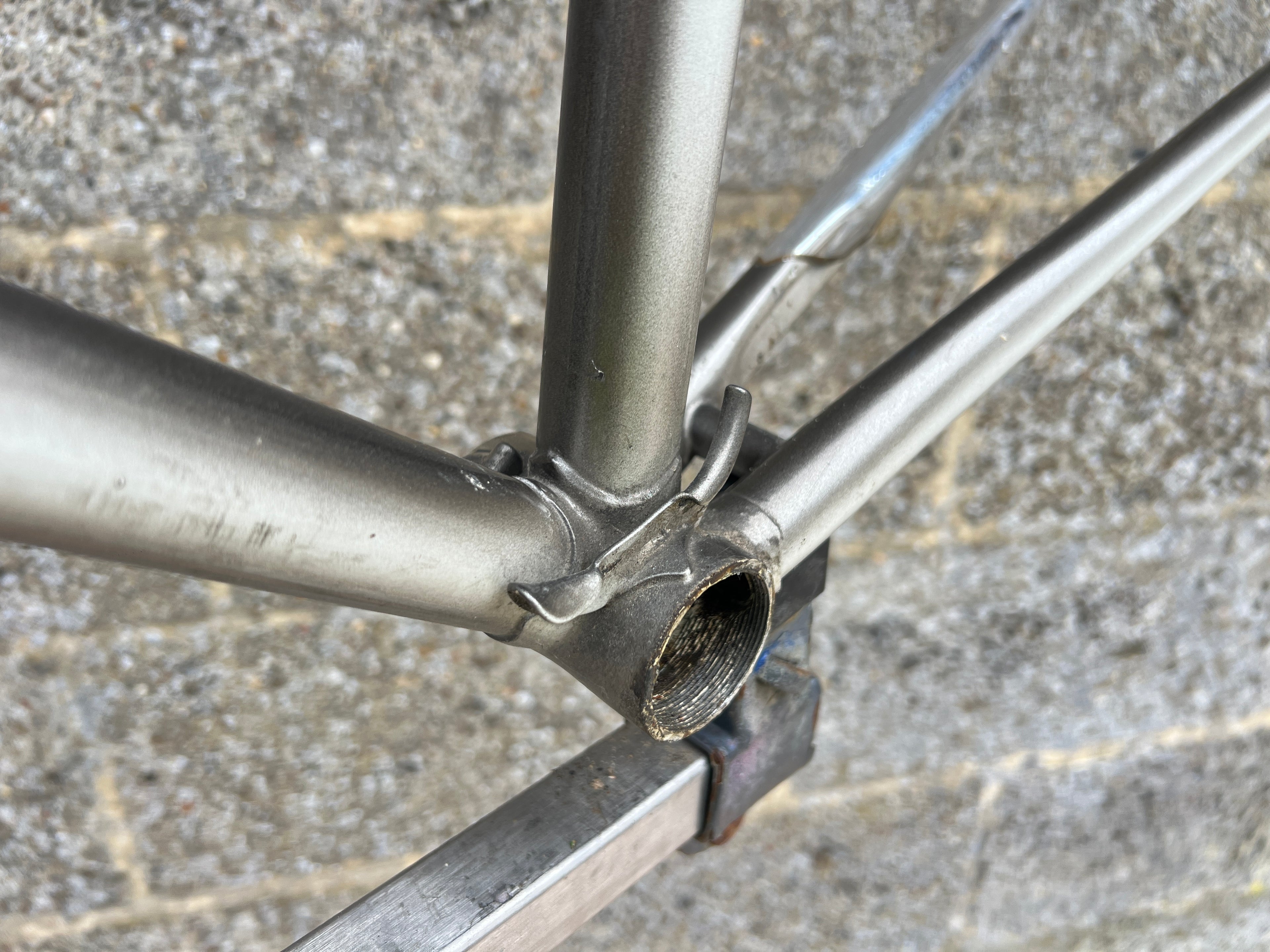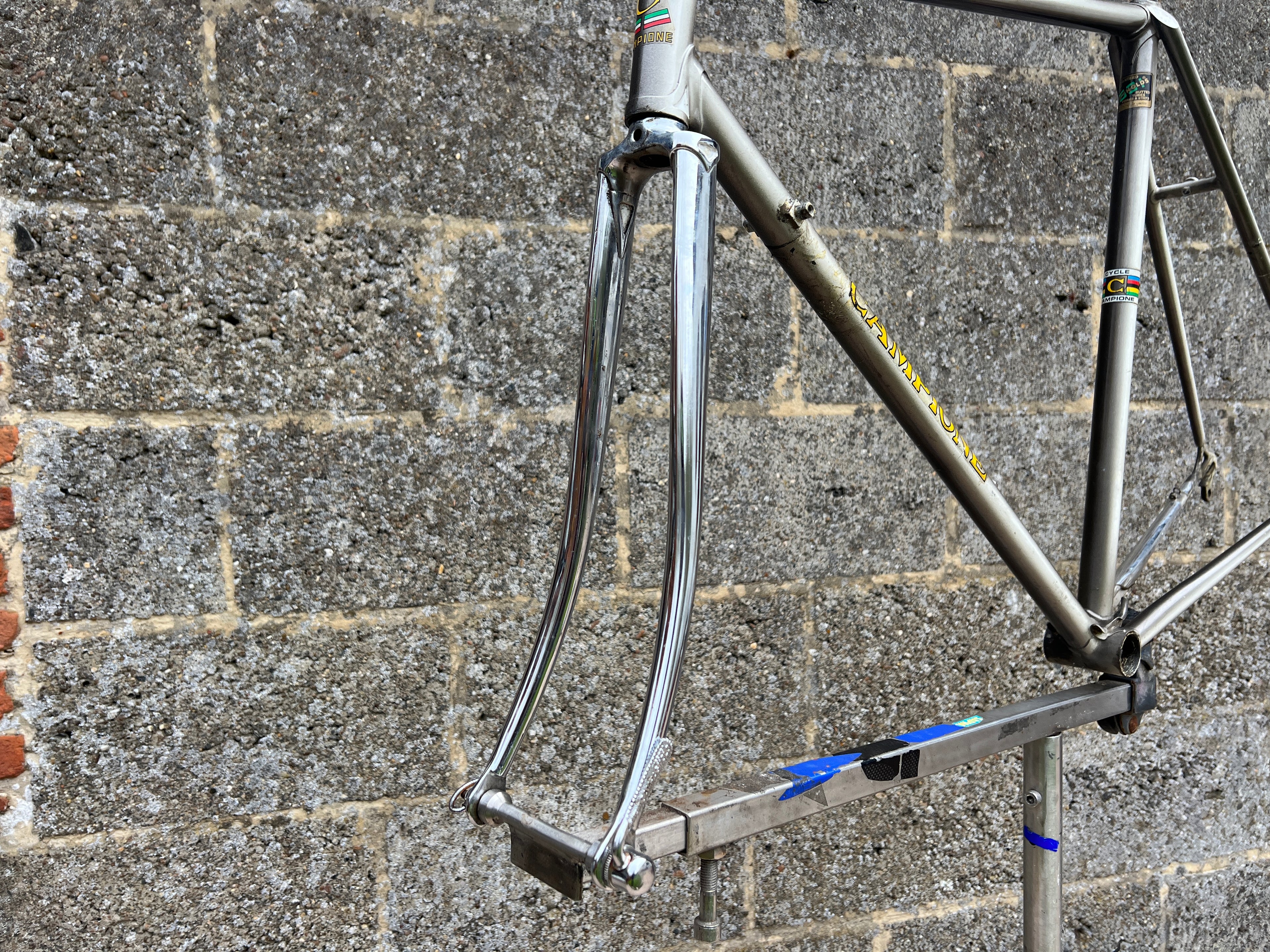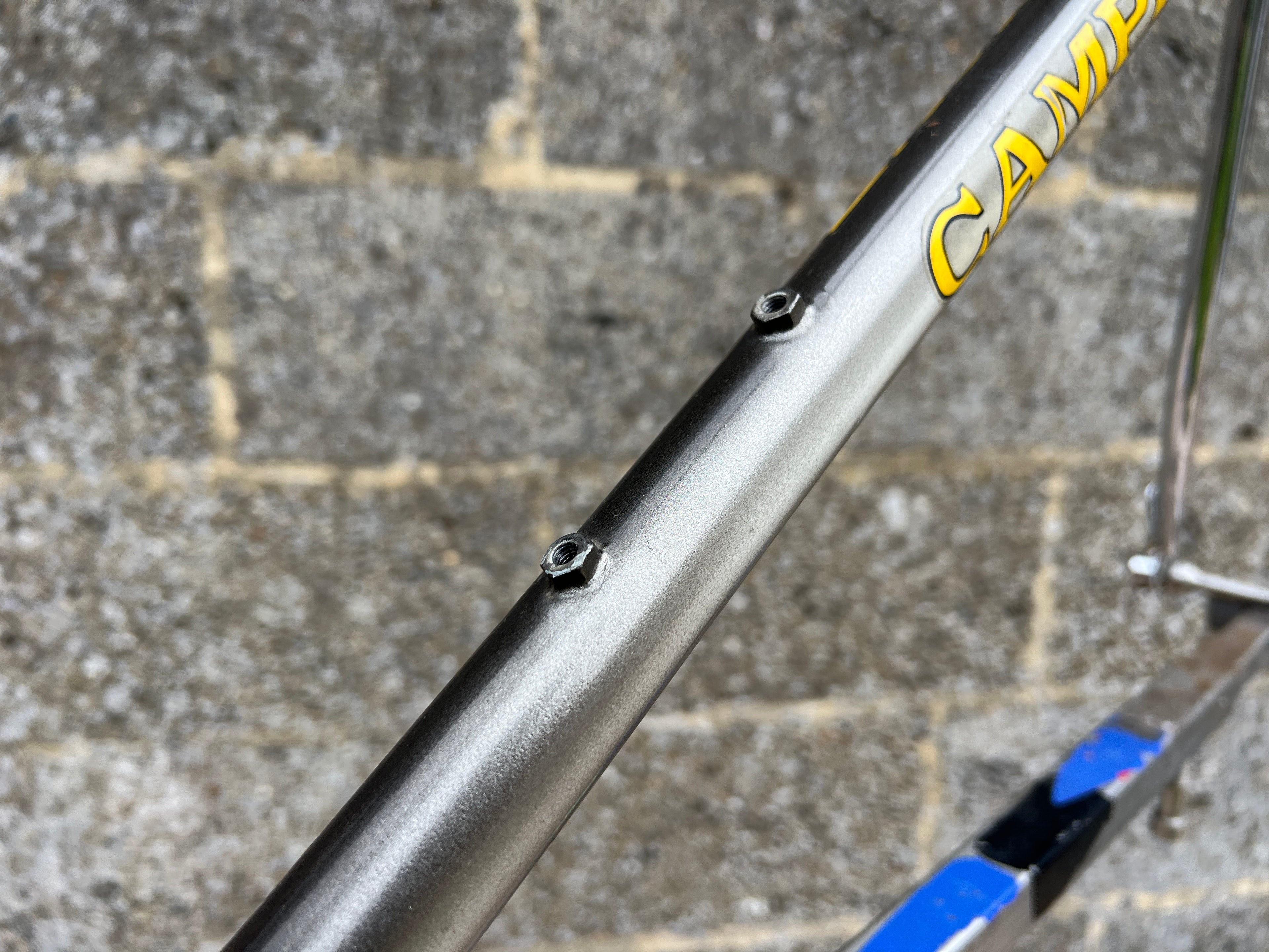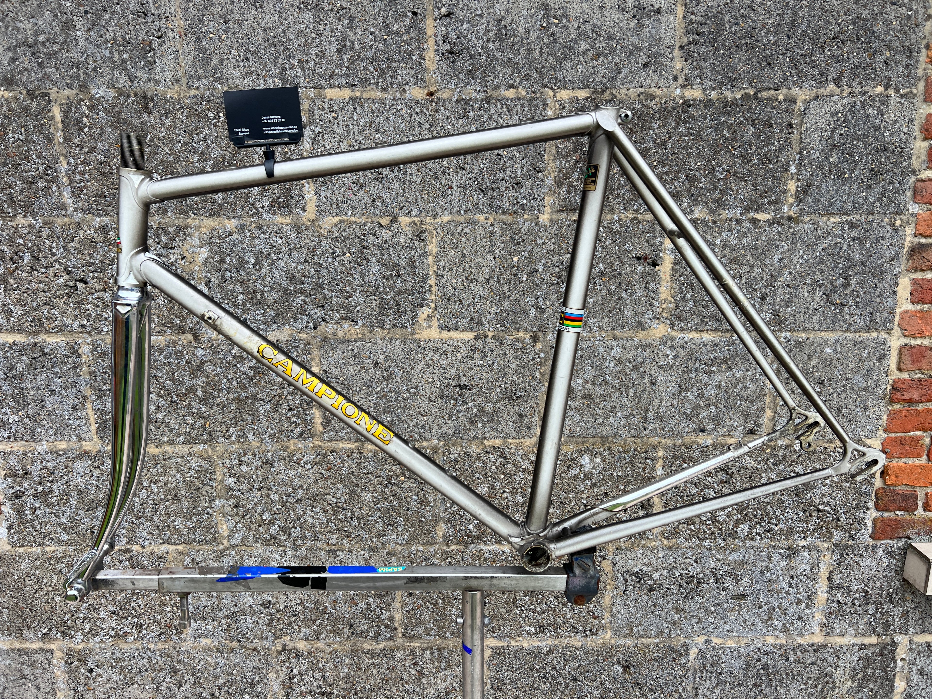 Campione Frameset. Belgian quality frameset. Campagnolo dropouts. No dents, no cracks. It’s a perfect project for anyone looking to build a reliable vintage road bike or restore a high-quality steel frame.