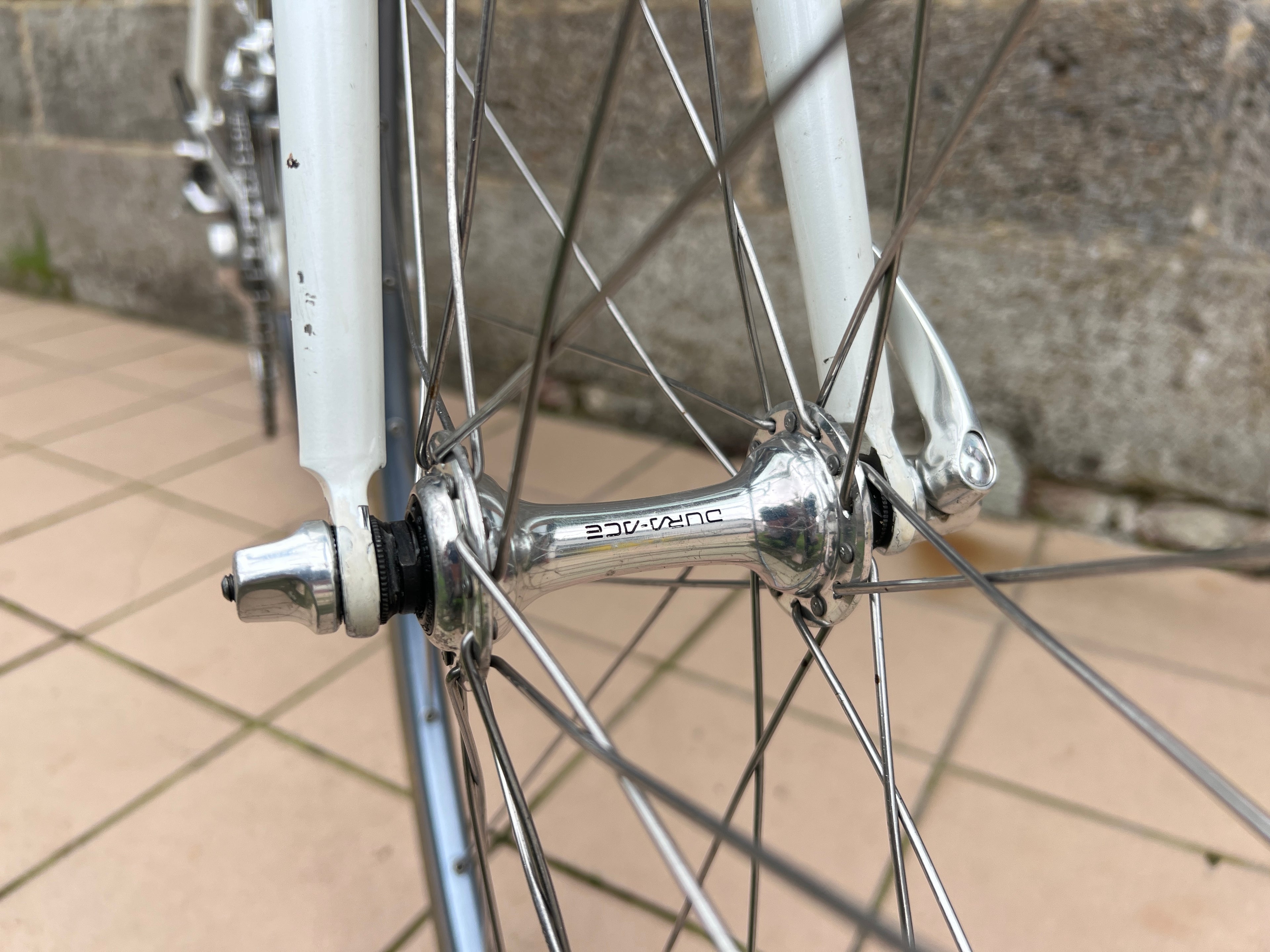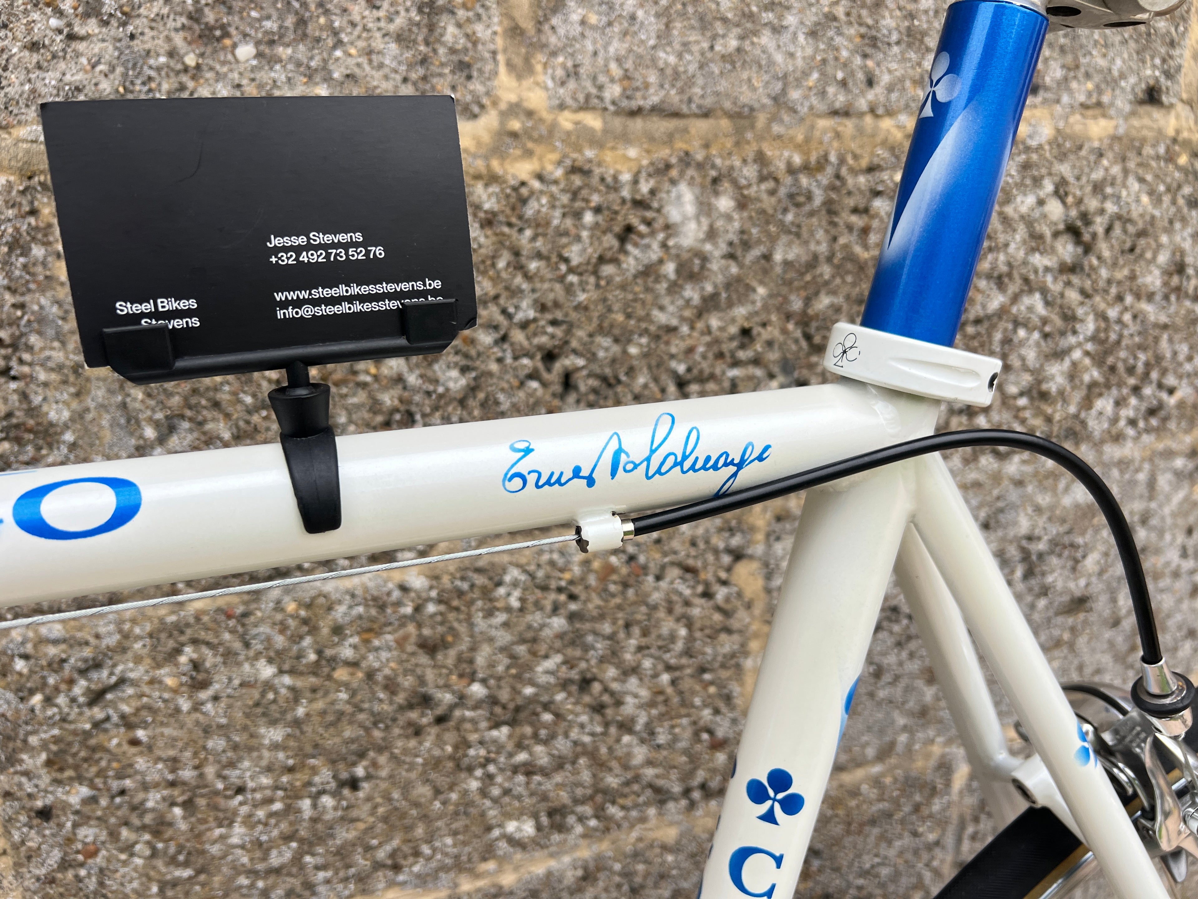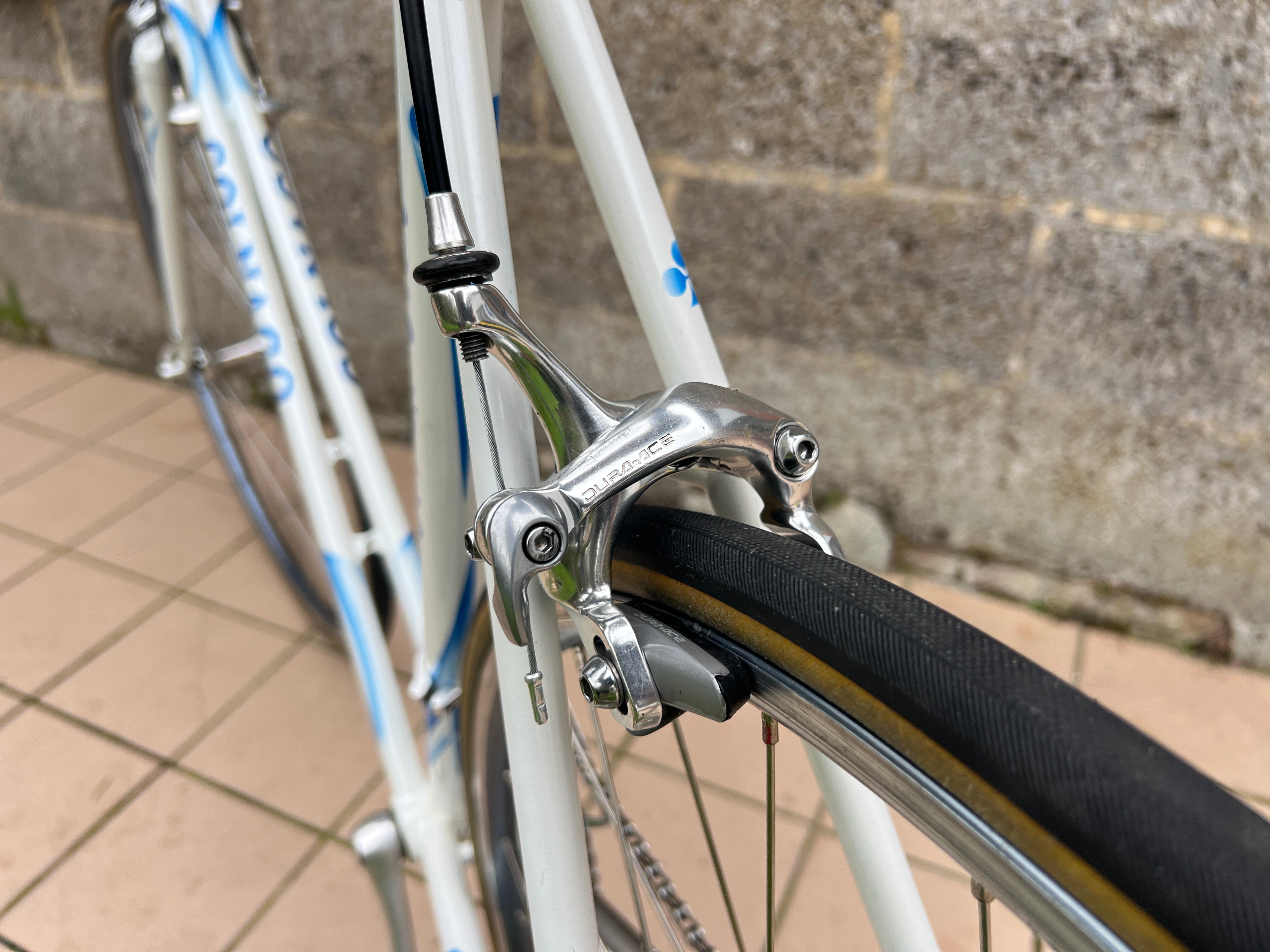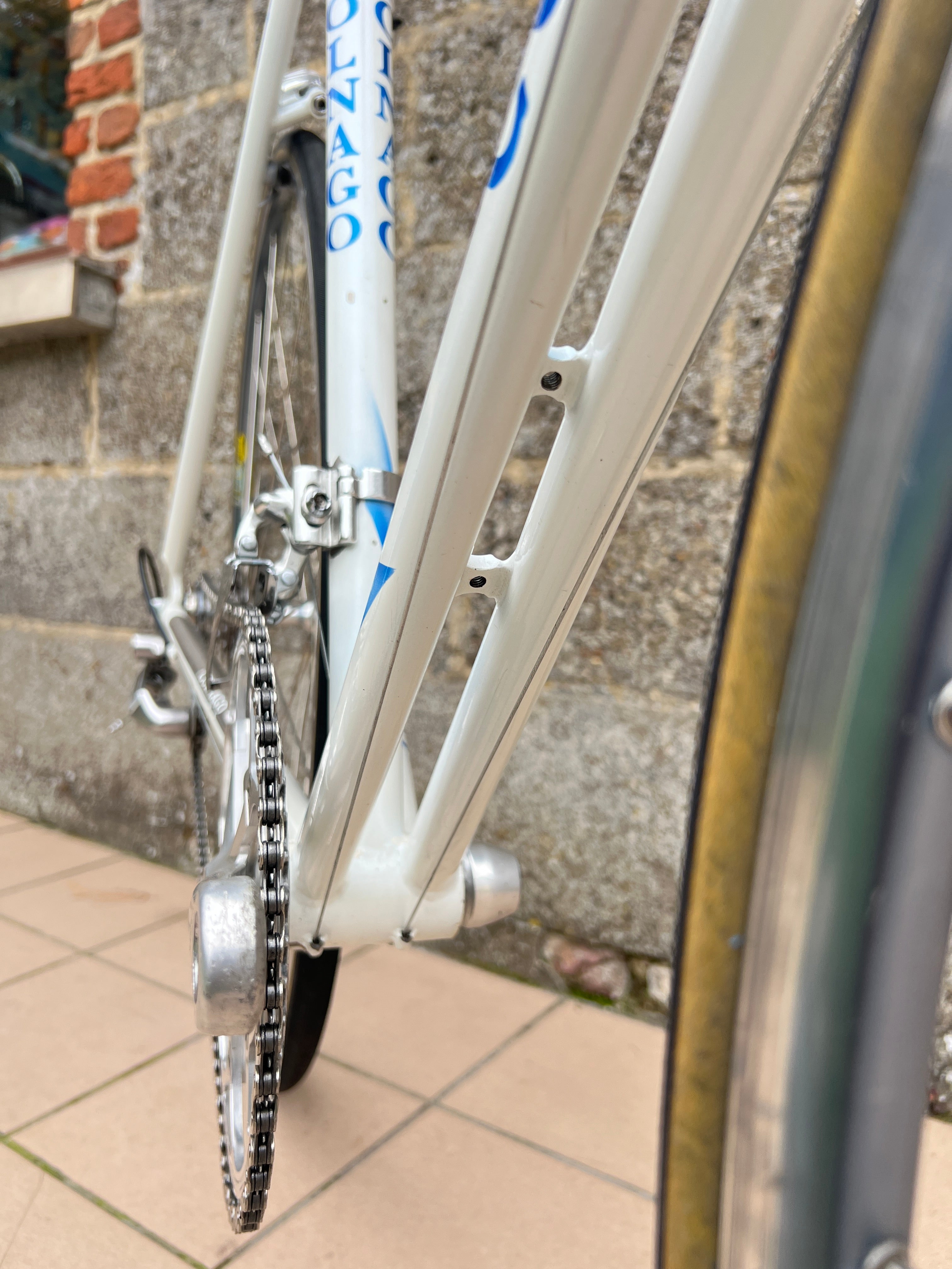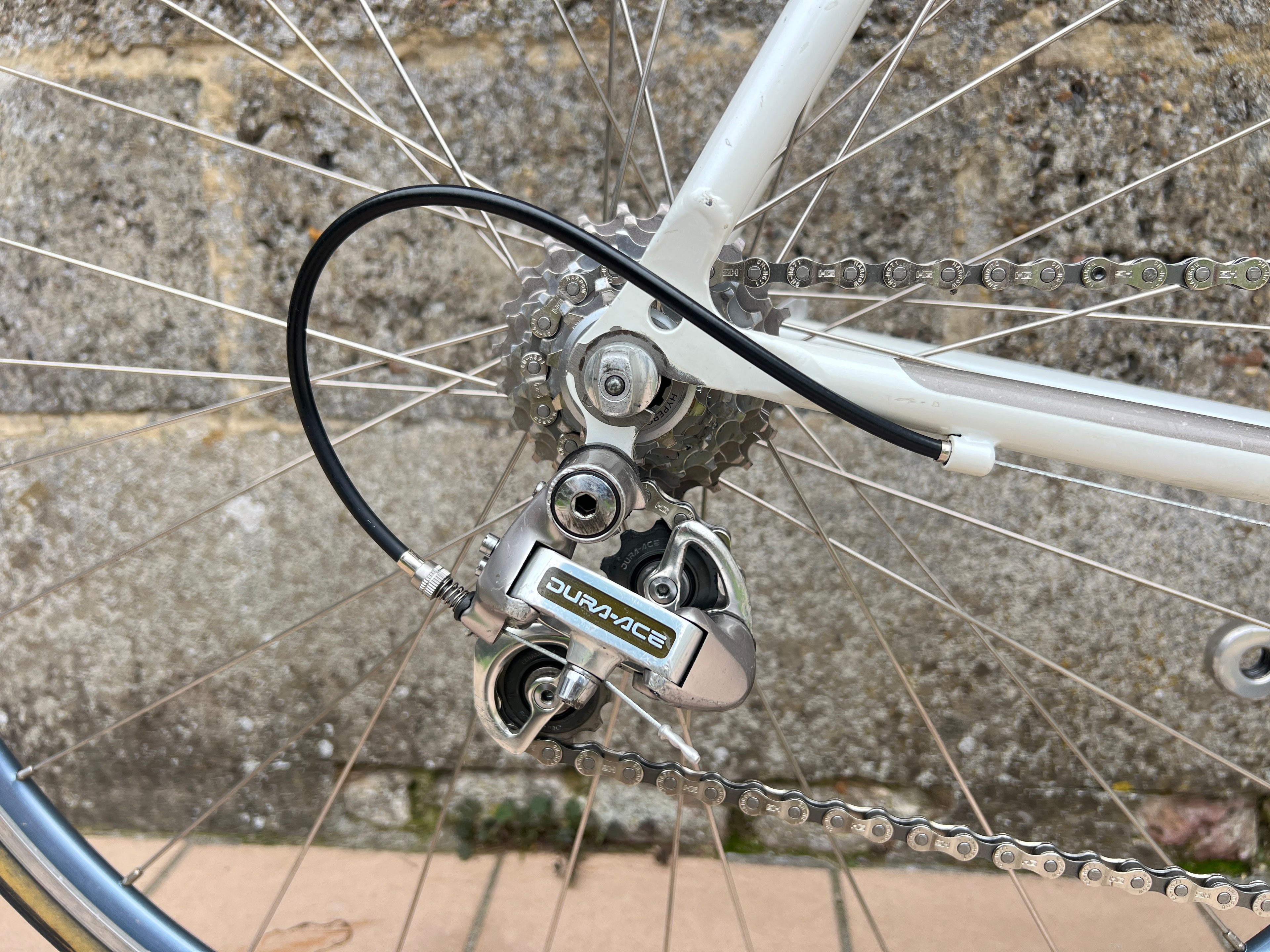 An exceptional opportunity to acquire a true icon of 1990s Italian craftsmanship. The Colnago Bititan Titanio. Presented here in the ultra-rare Tony Rominger colorway. This masterpiece combines Colnago’s legendary titanium frame design with the unmistakable double downtube construction. A hallmark of innovation and aesthetics from Ernesto Colnago’s golden era. Every detail reflects precision and artistry. From the signature Colnago pantograph engravings on the fork to the custom-painted seatpost, finished to order. The bike is equipped with a complete Shimano Dura-Ace groupset. It features clincher wheels. Please note that one rim shows a minor hairline crack around a spoke nipple. Having spent years as part of a private collection, this Bititan has been beautifully preserved and is now available for the discerning collector or passionate Colnago enthusiast.