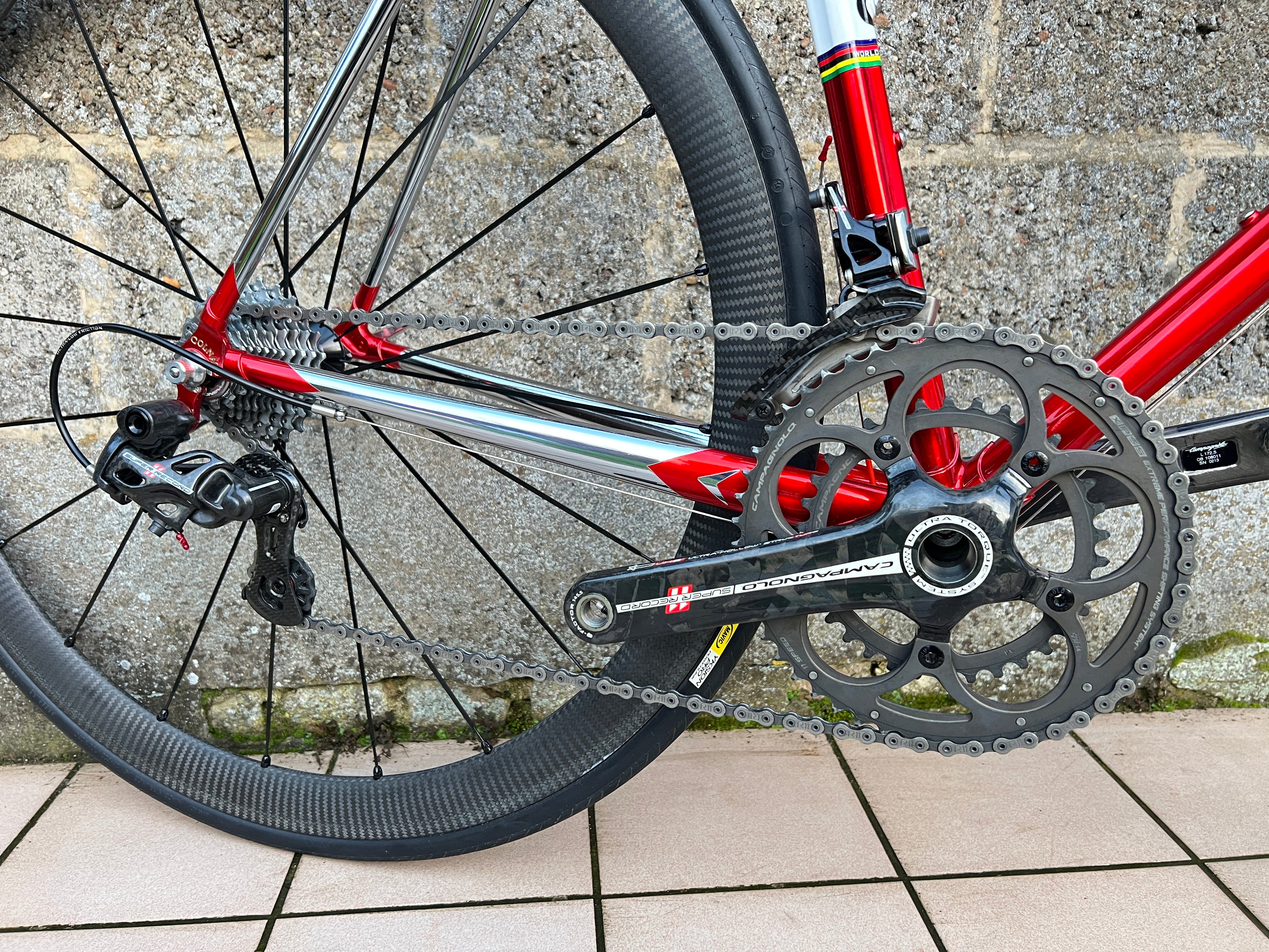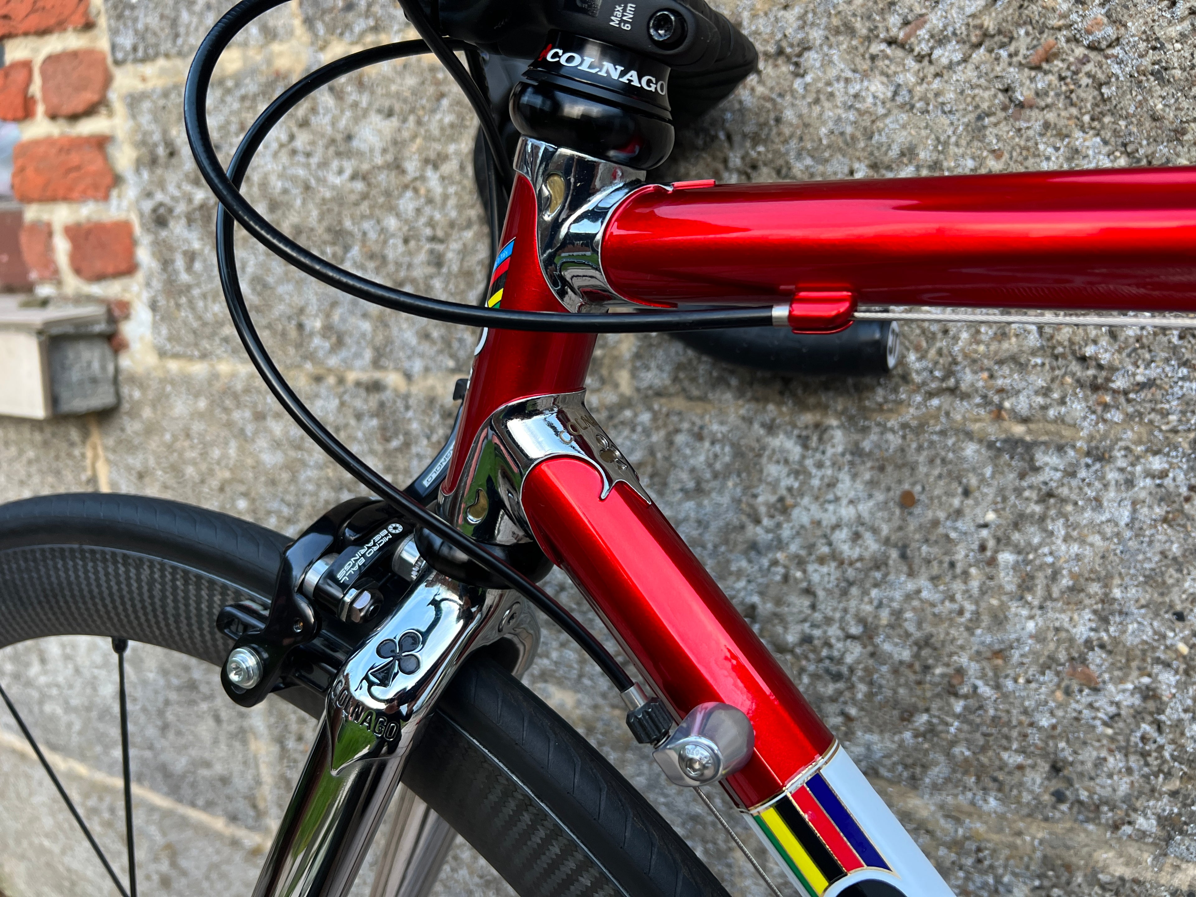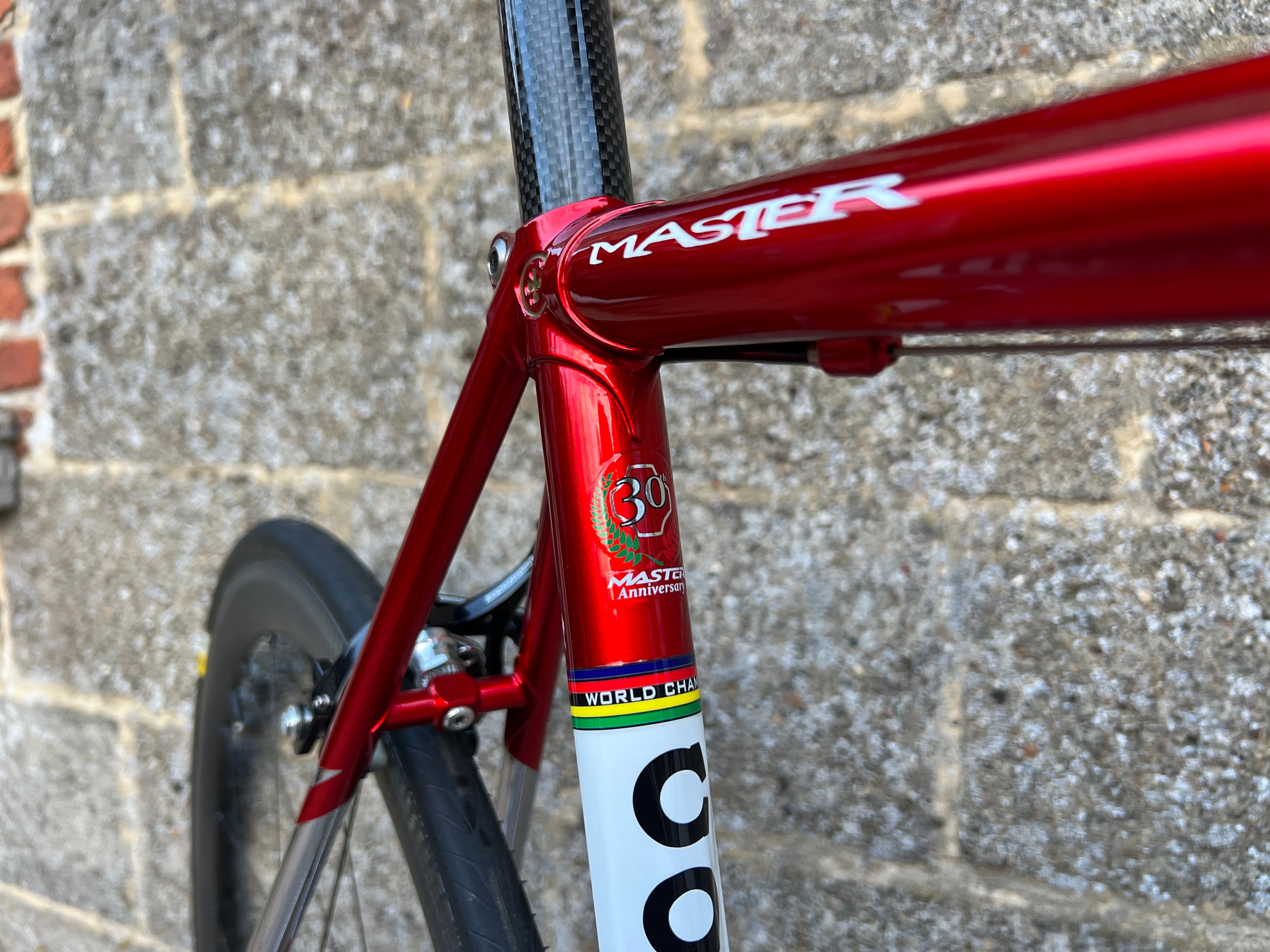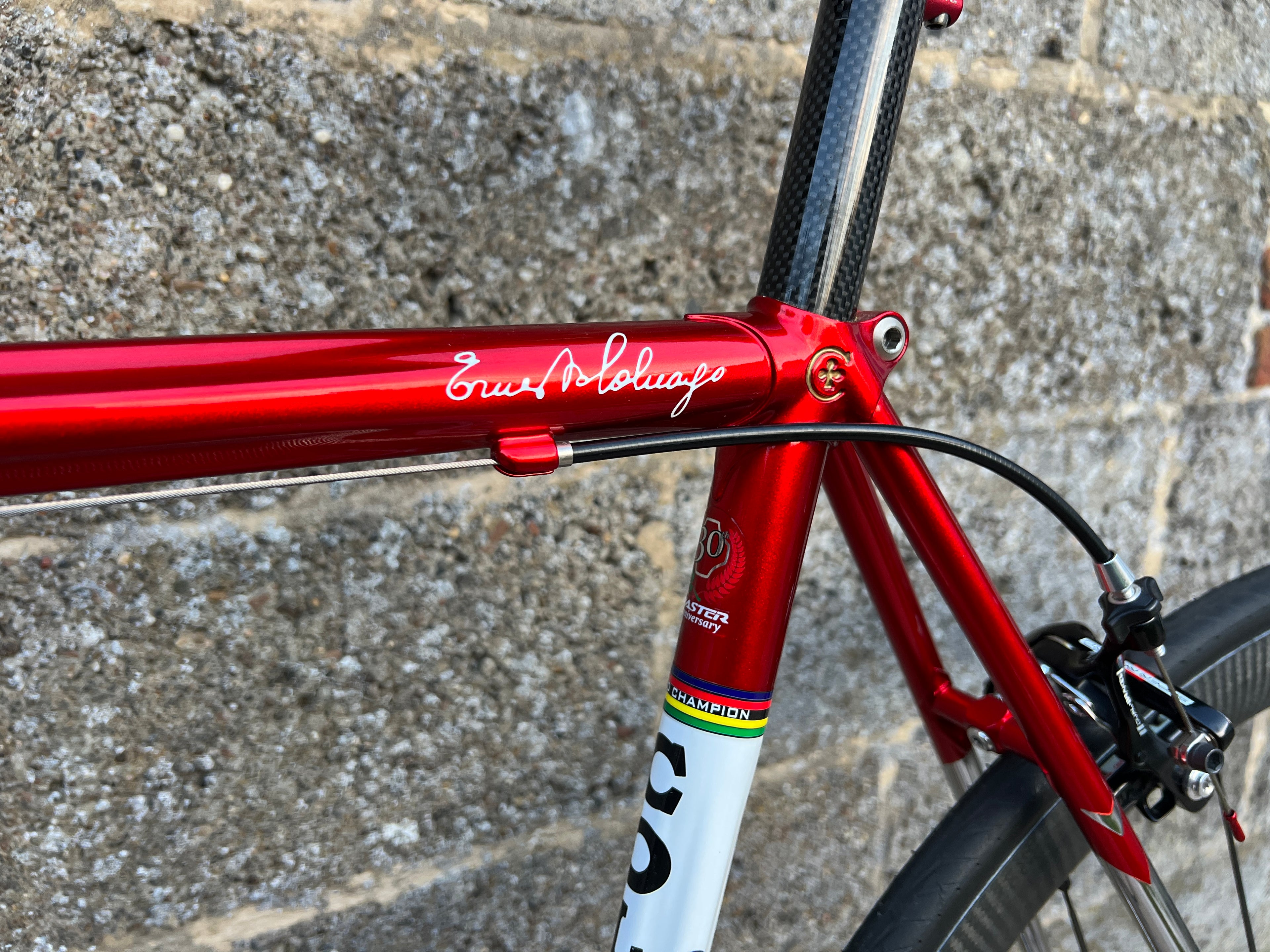This Colnago Master X-Light 30th Anniversary Saronni is a perfect example of his craftsmanship. I’m proudly presenting this Colnago Master X-Light 30th Anniversary shining in his original Saronni red paintjob. An absolute classic! The superb frameset is made of very stiff DT15V steel.