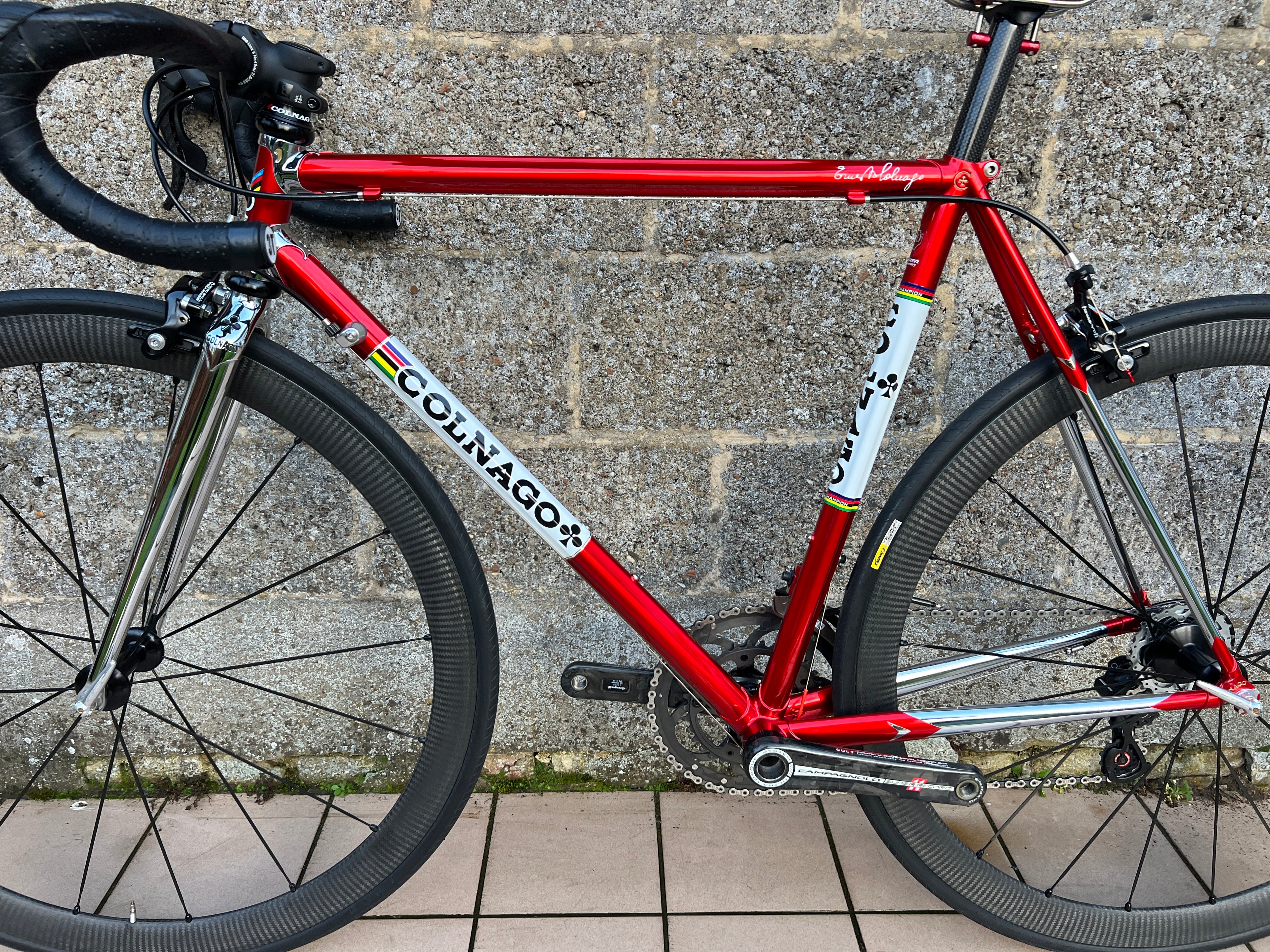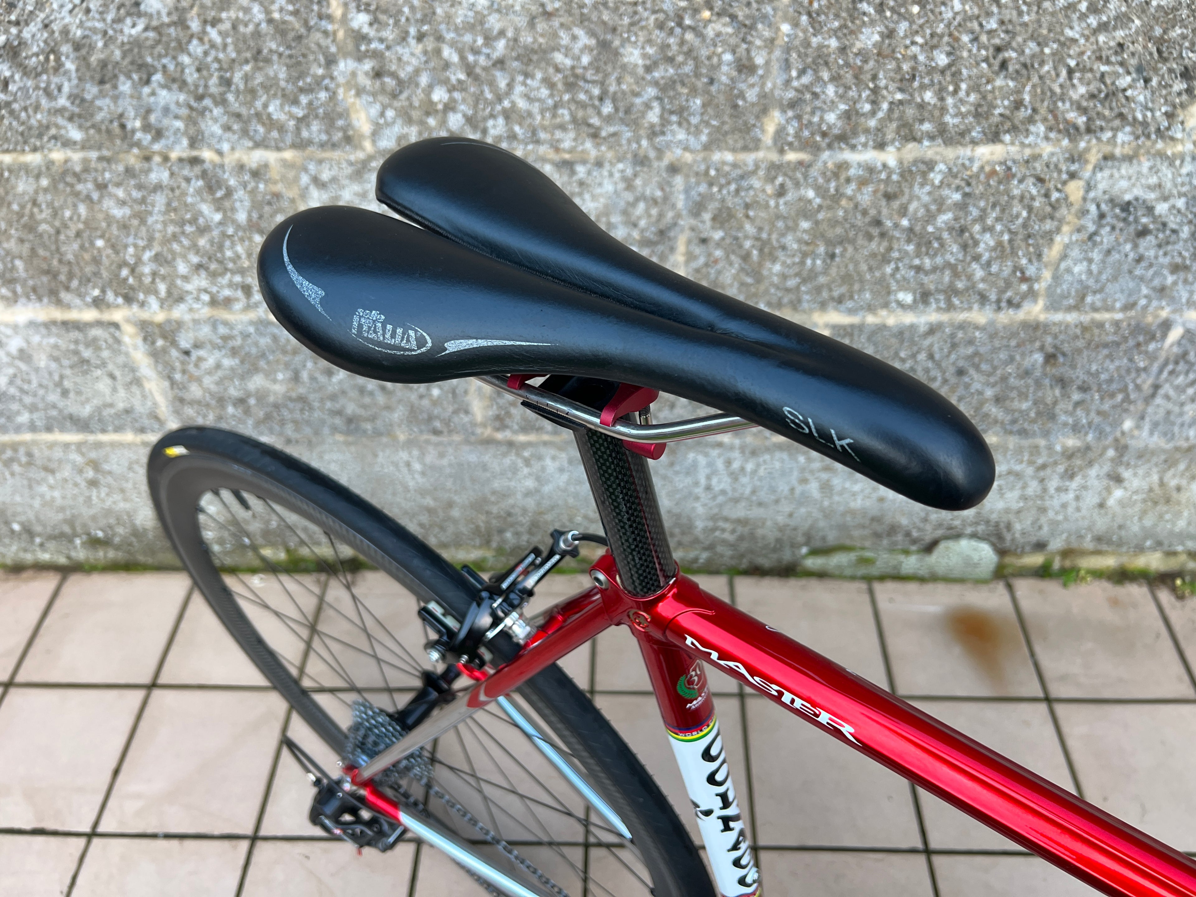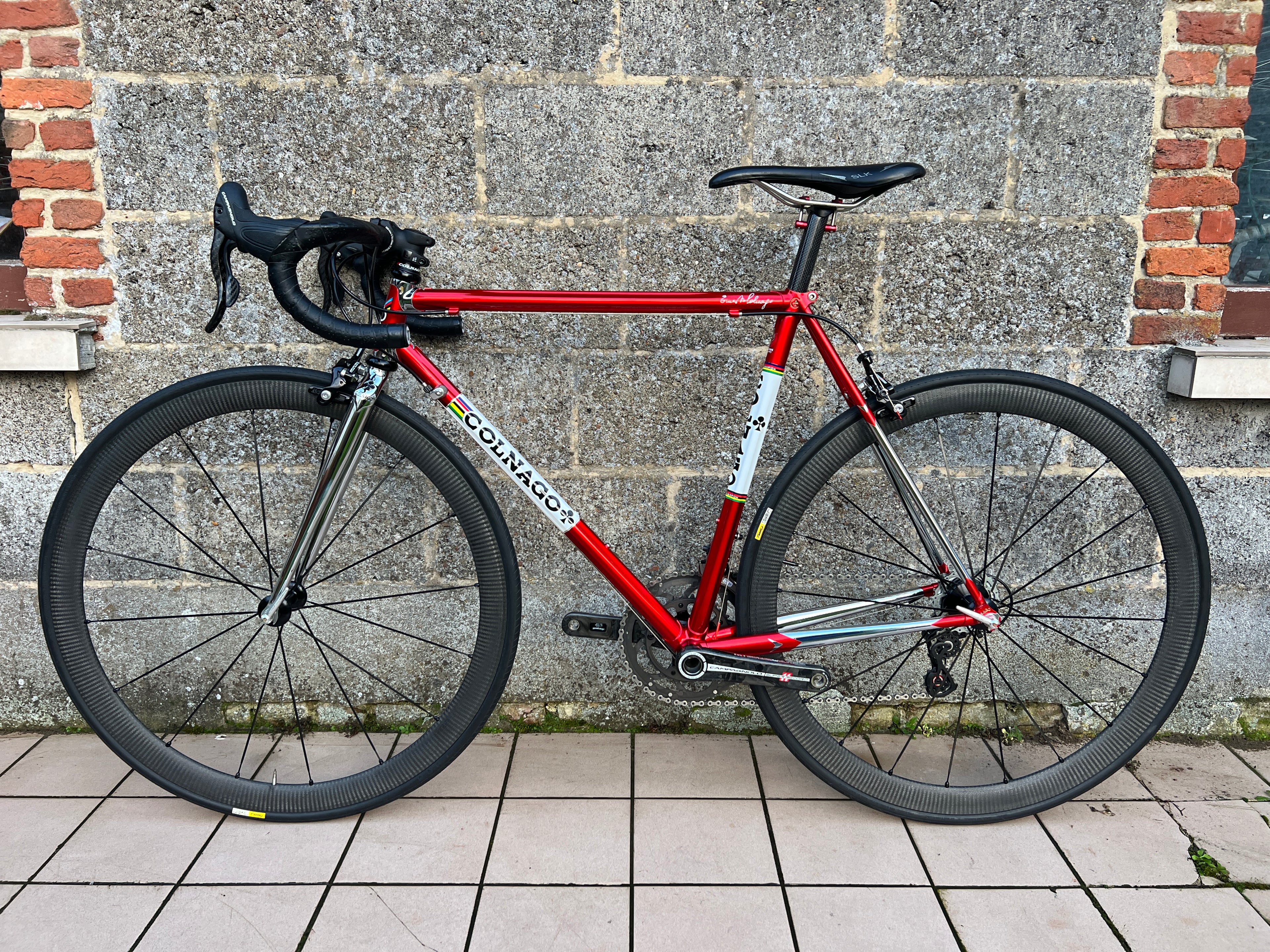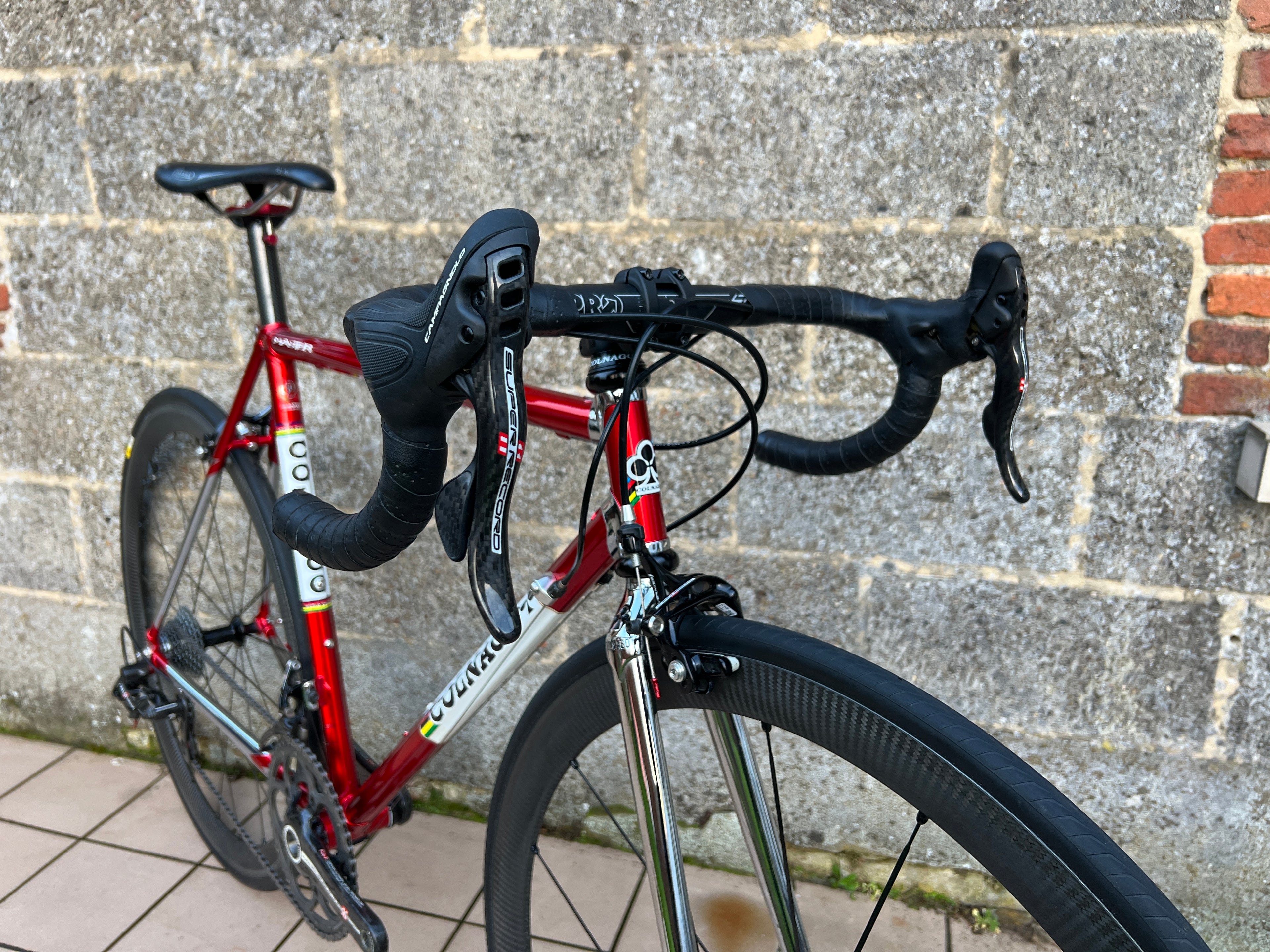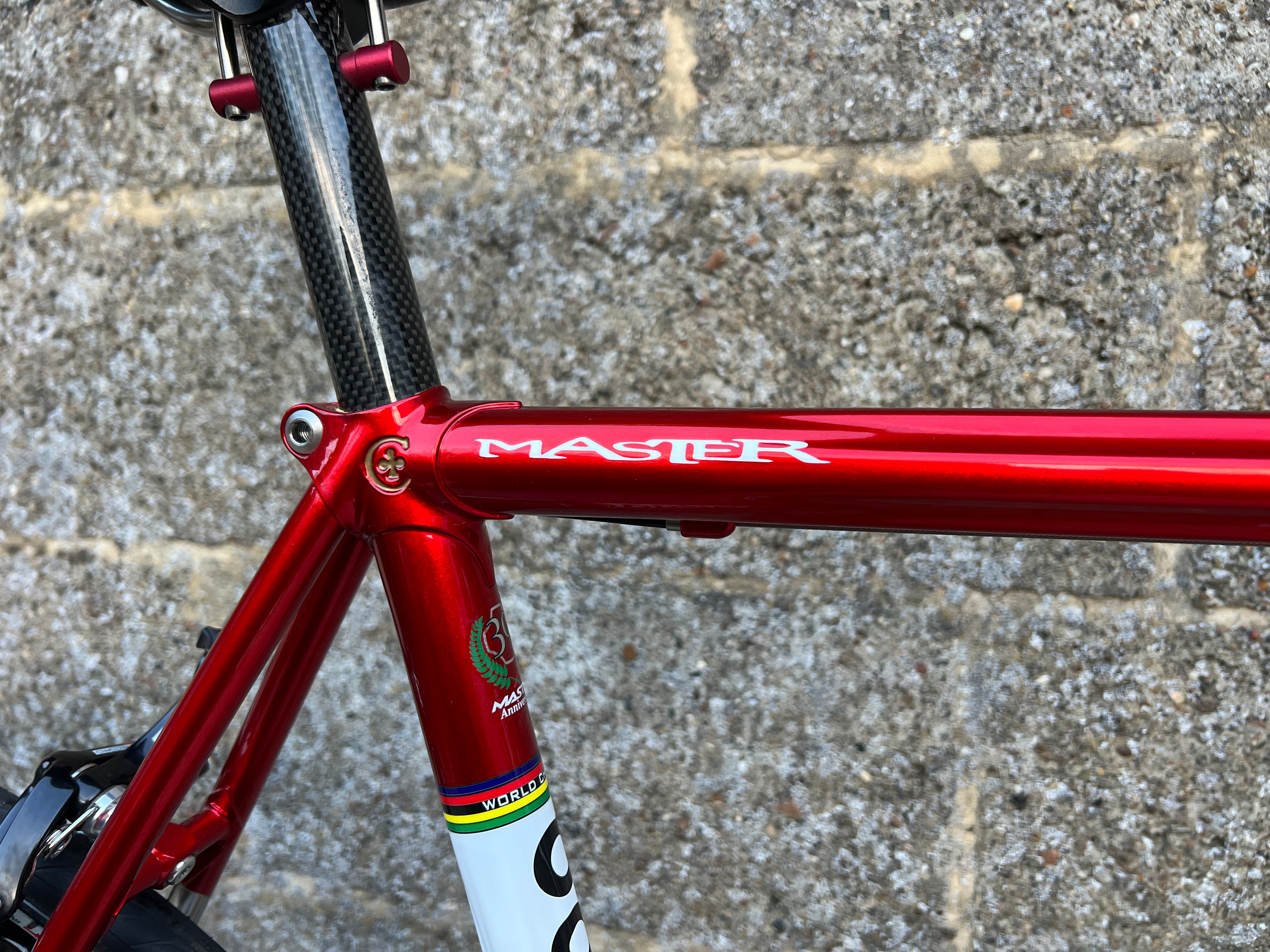 This Colnago Master X-Light 30th Anniversary Saronni is a perfect example of his craftsmanship. I’m proudly presenting this Colnago Master X-Light 30th Anniversary shining in his original Saronni red paintjob. An absolute classic! The superb frameset is made of very stiff DT15V steel.