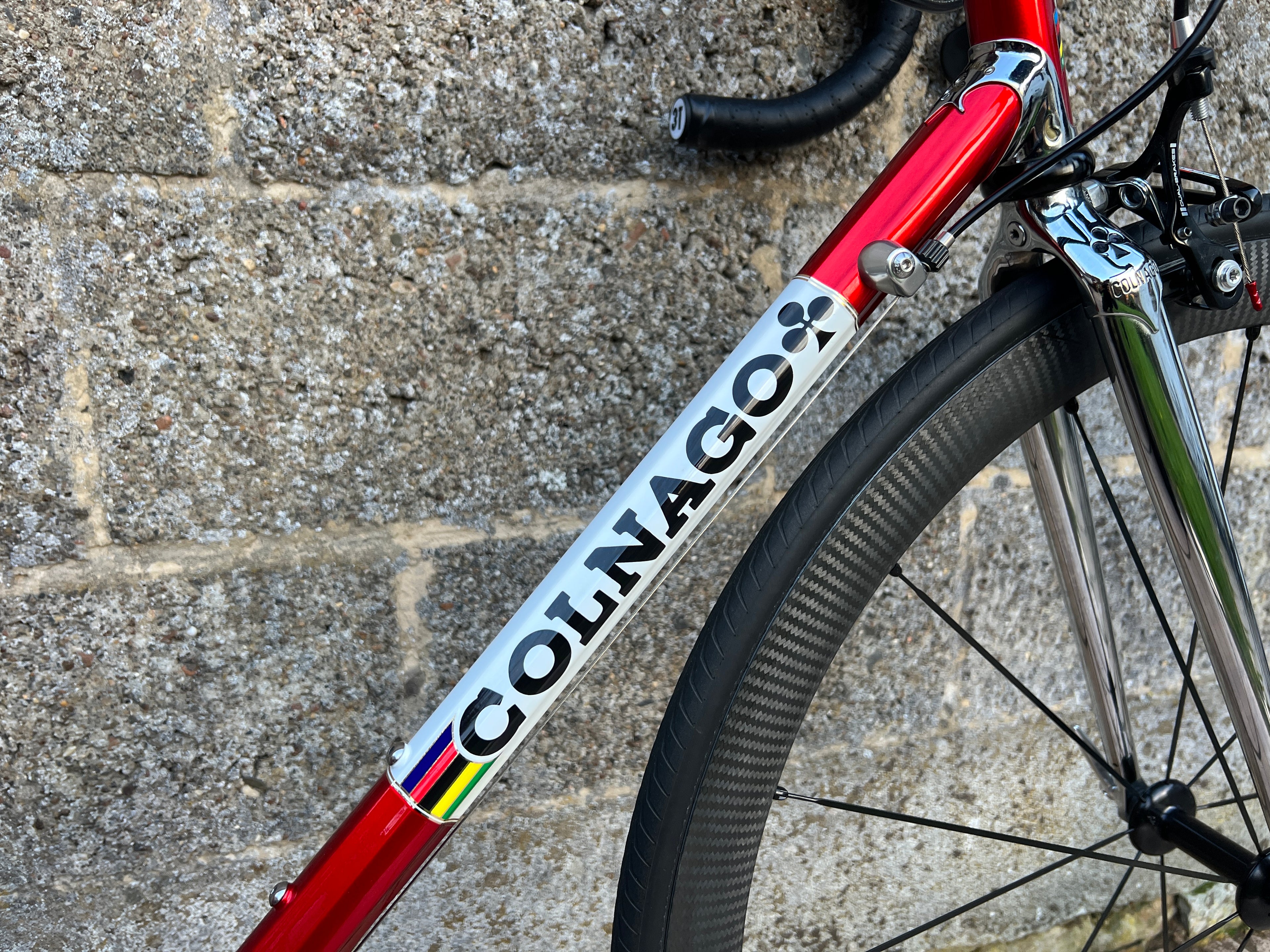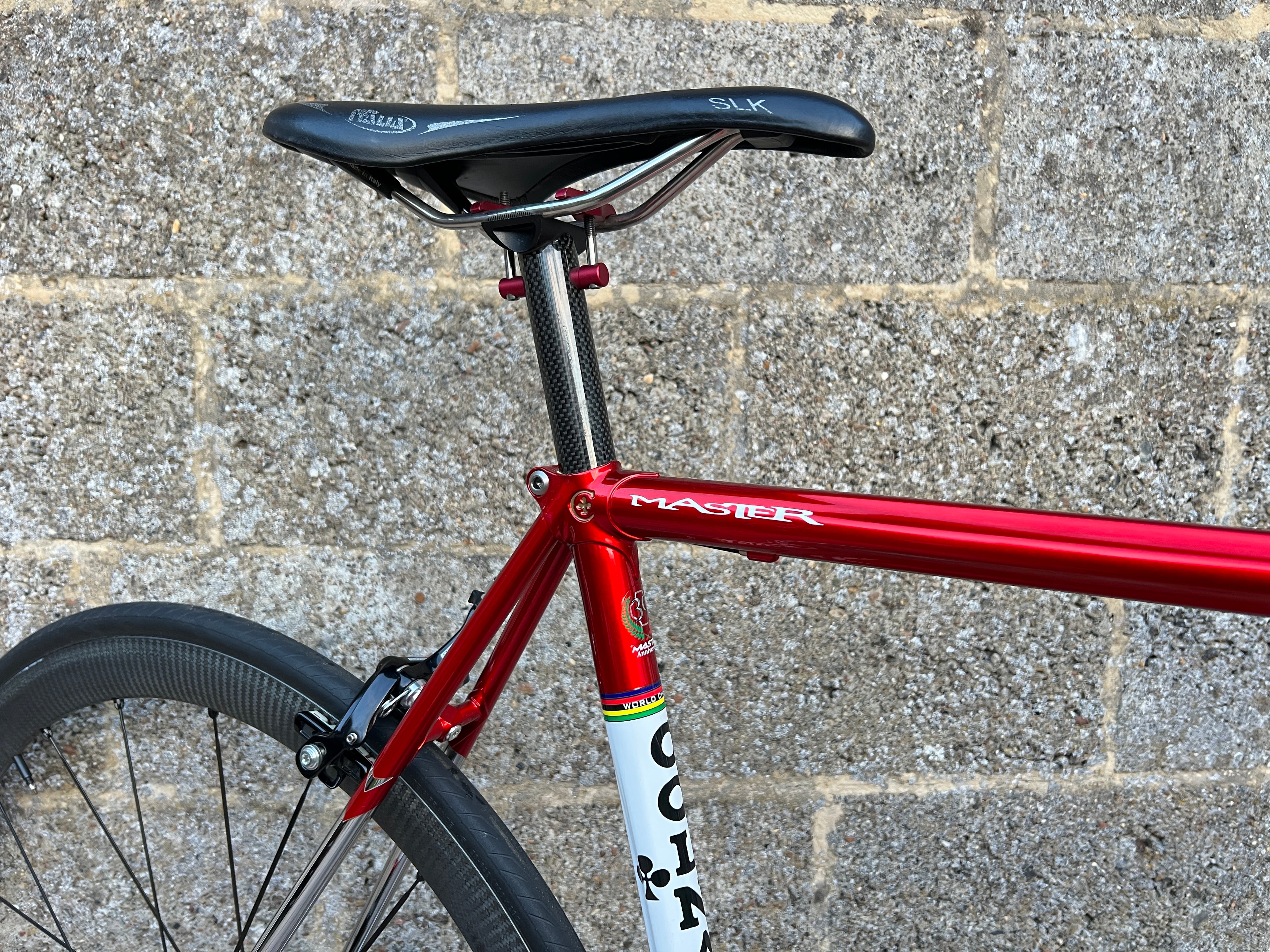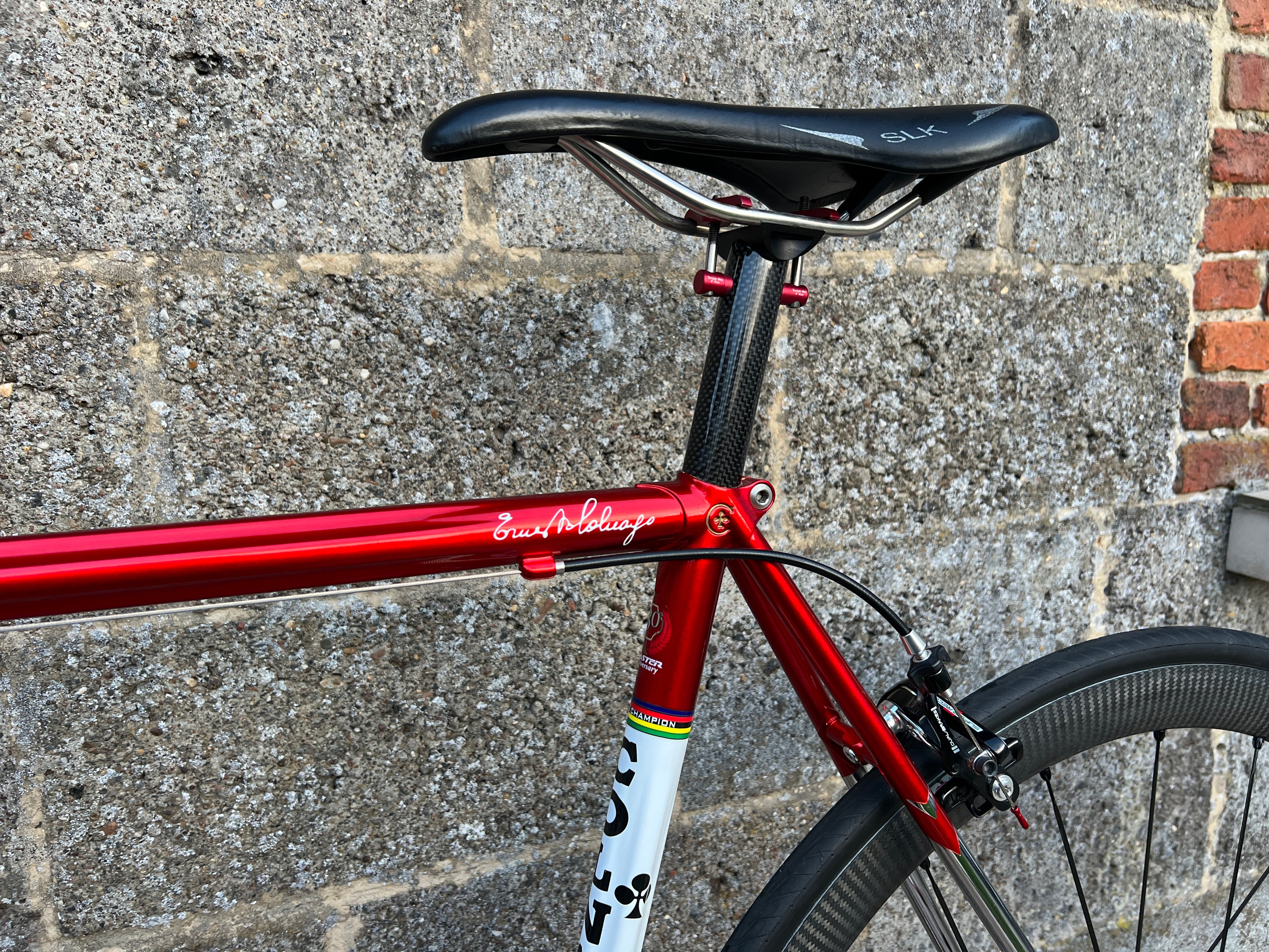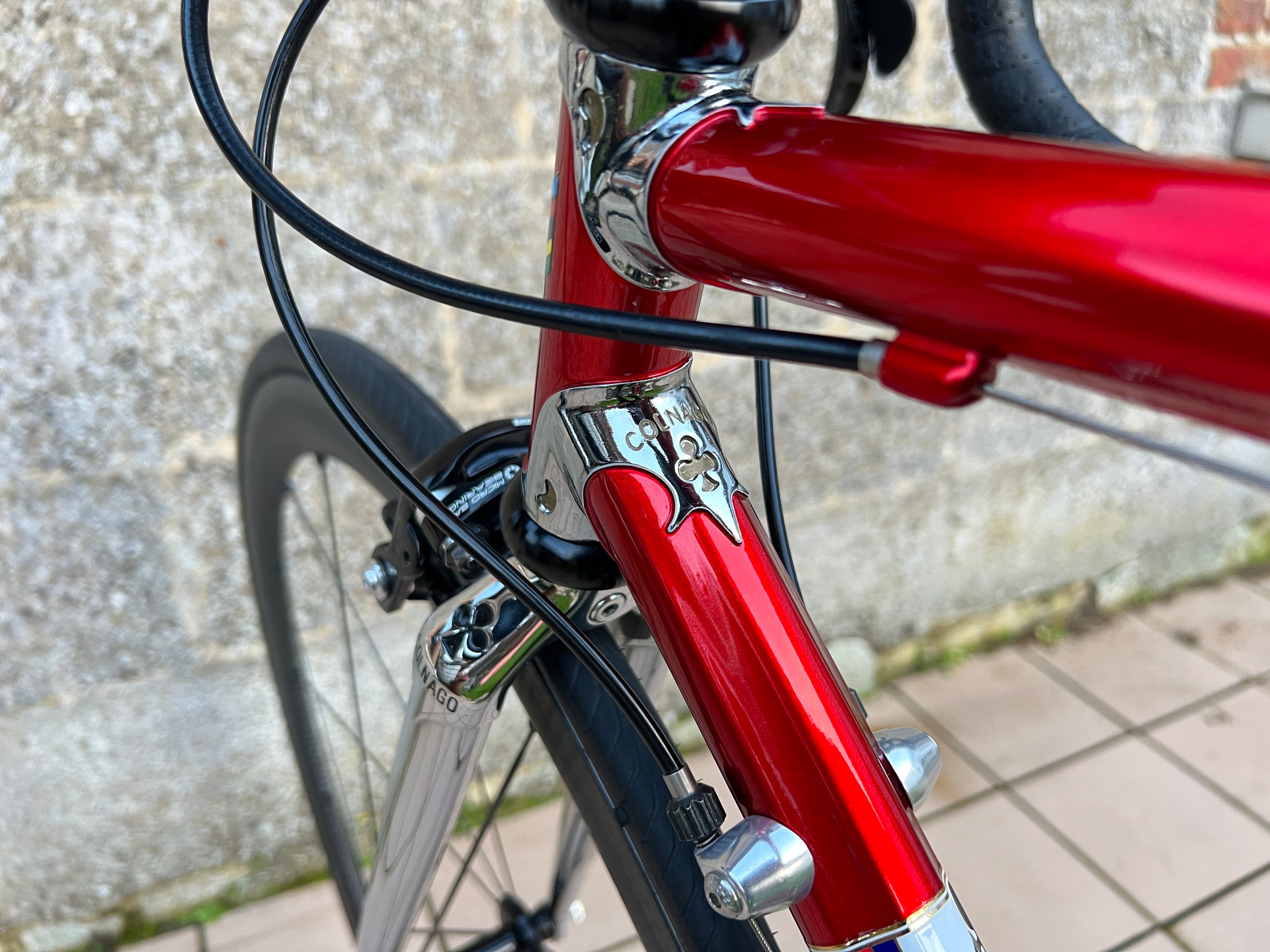 This Colnago Master X-Light 30th Anniversary Saronni is a perfect example of his craftsmanship. I’m proudly presenting this Colnago Master X-Light 30th Anniversary shining in his original Saronni red paintjob. An absolute classic! The superb frameset is made of very stiff DT15V steel.