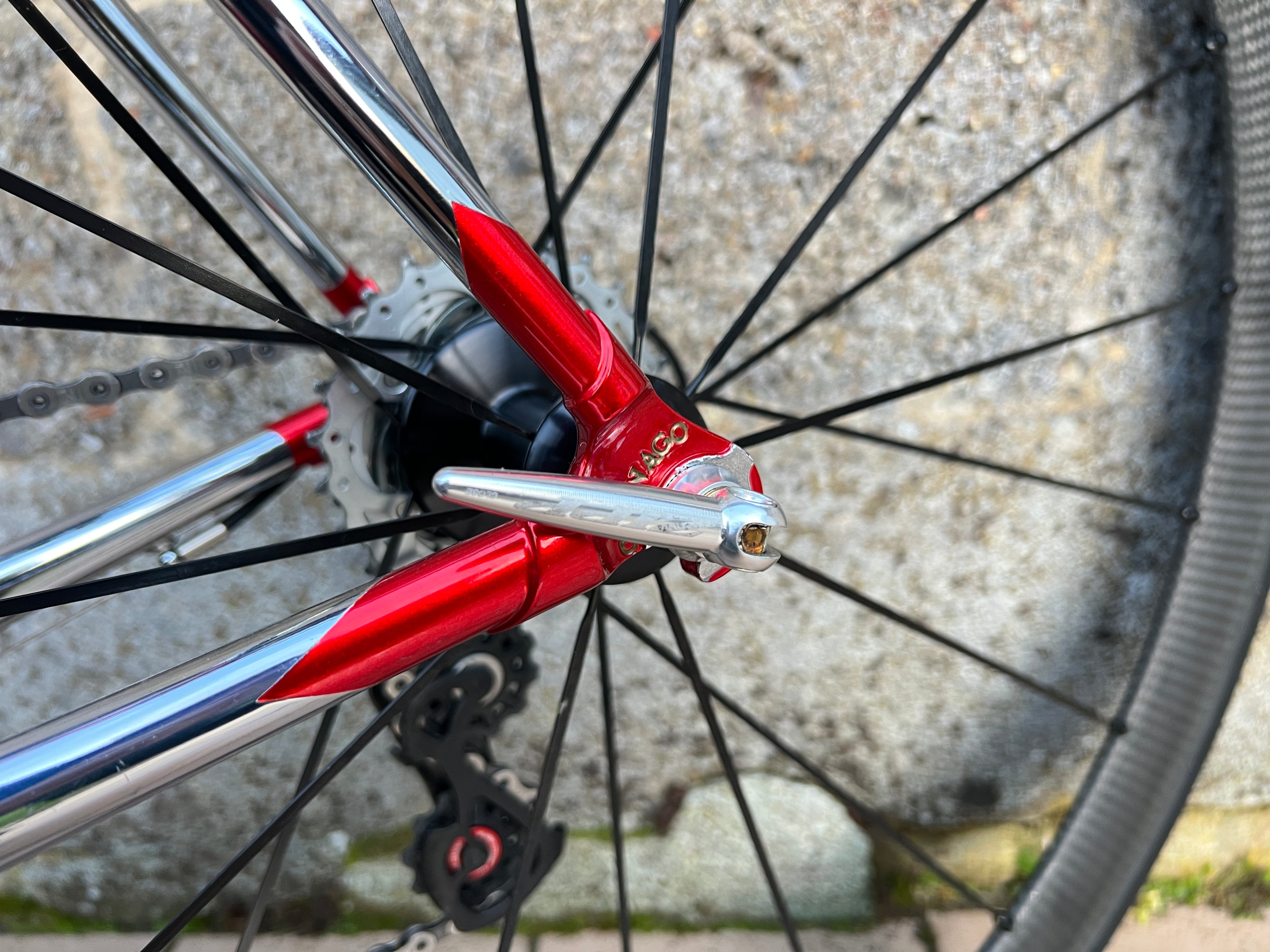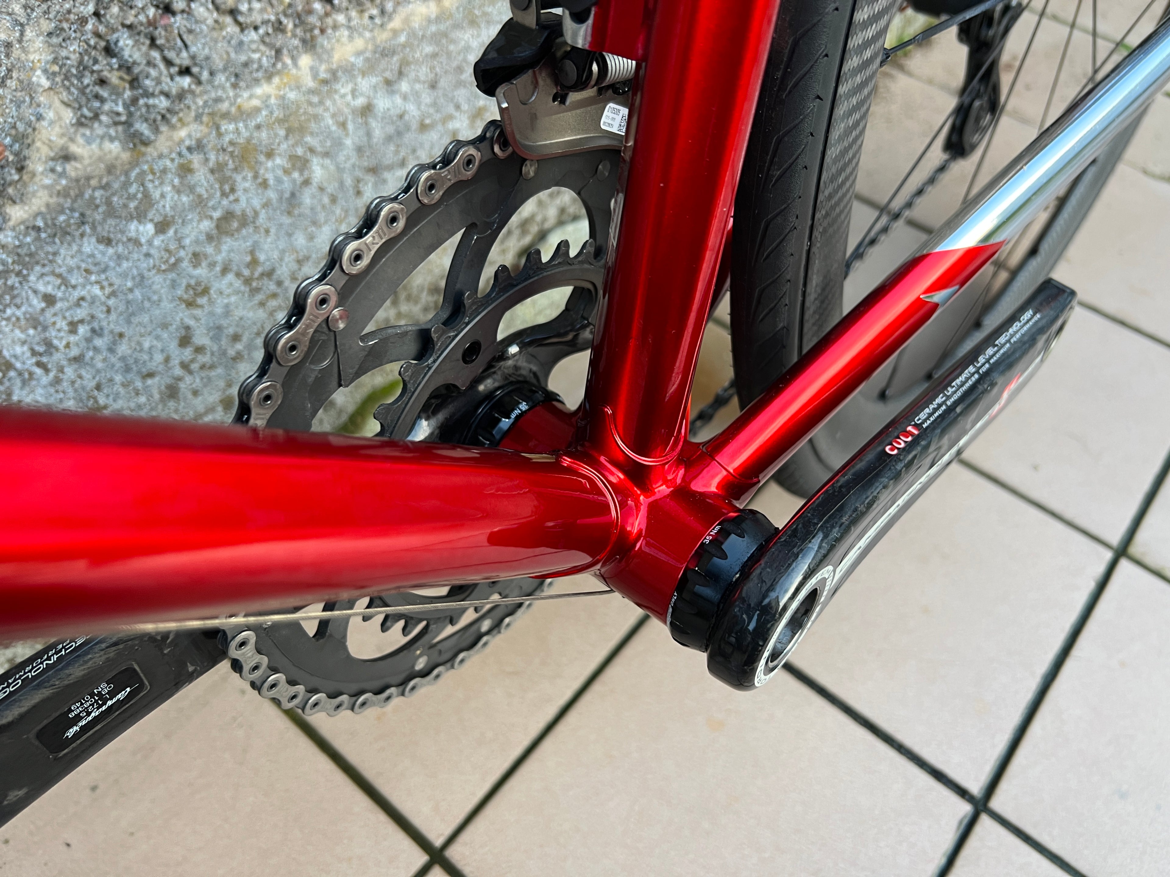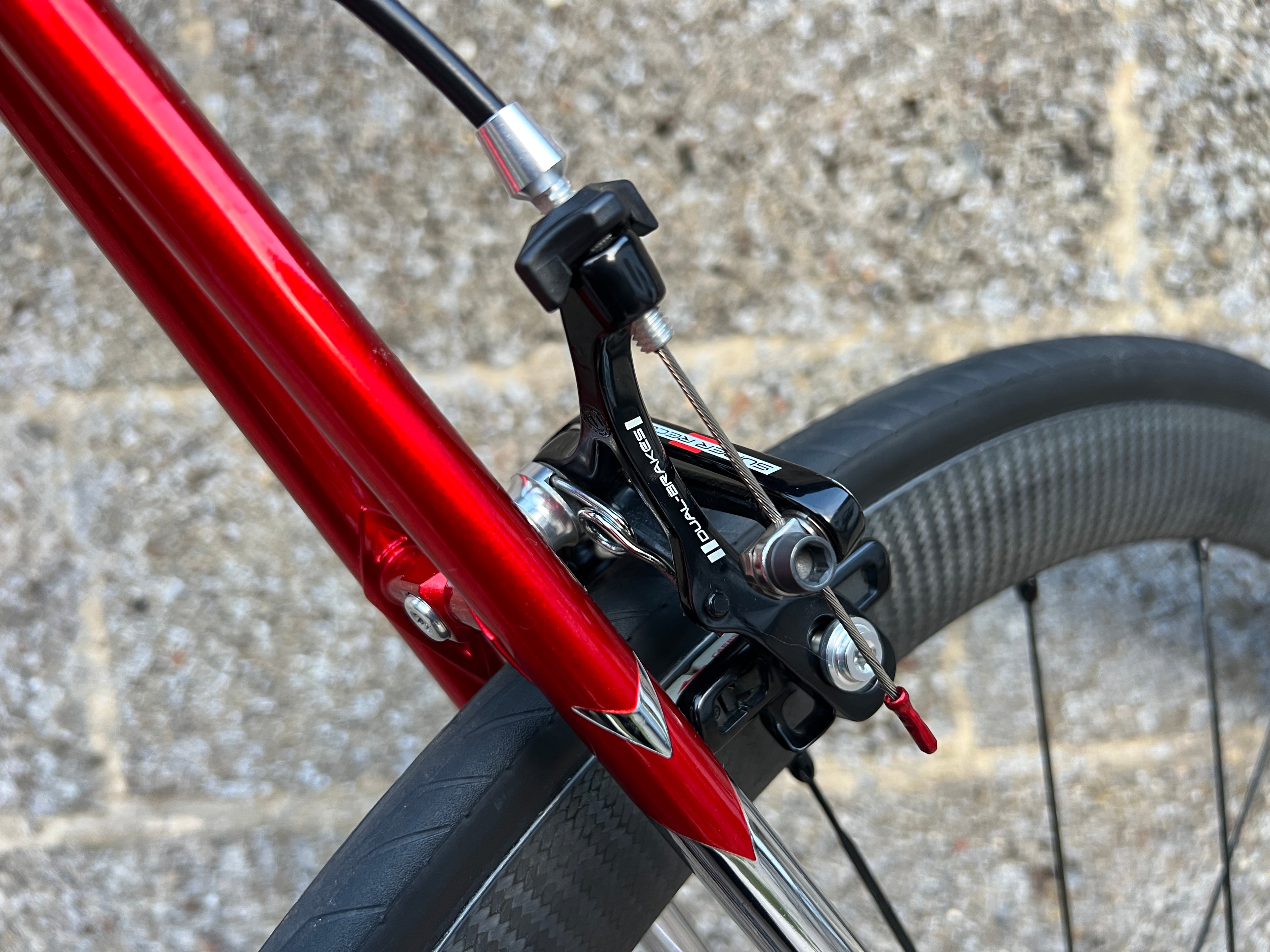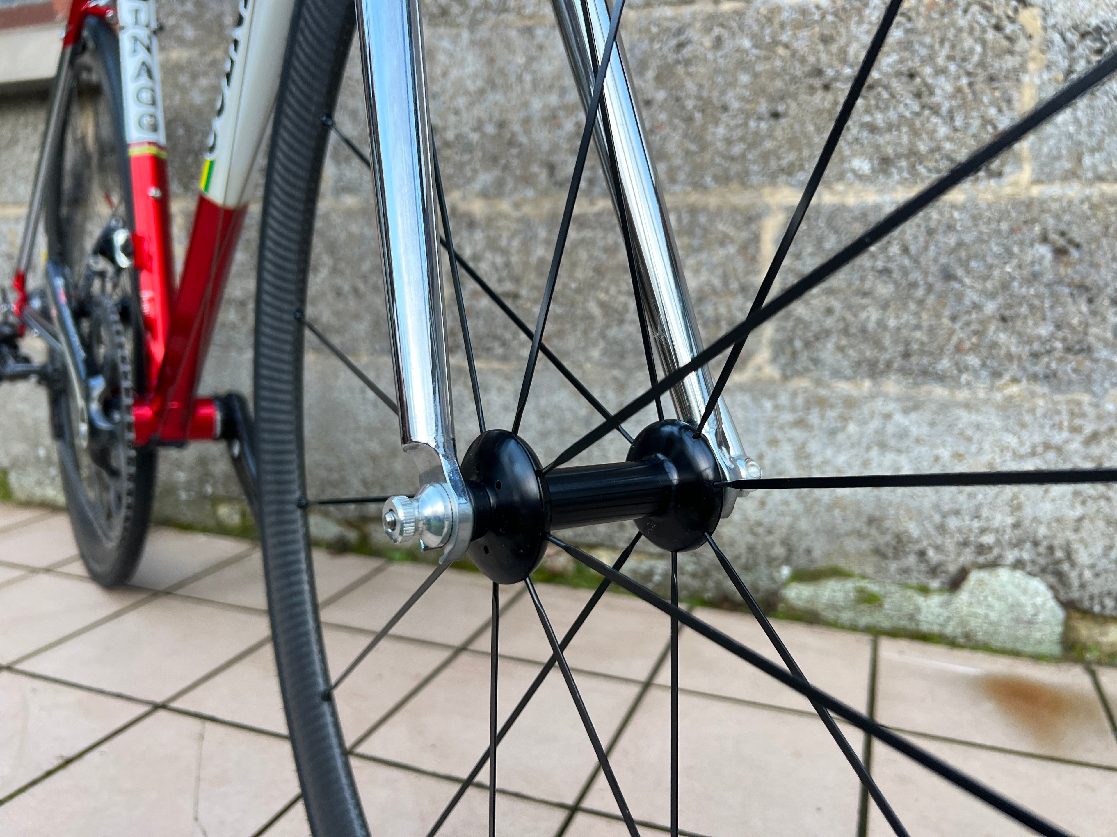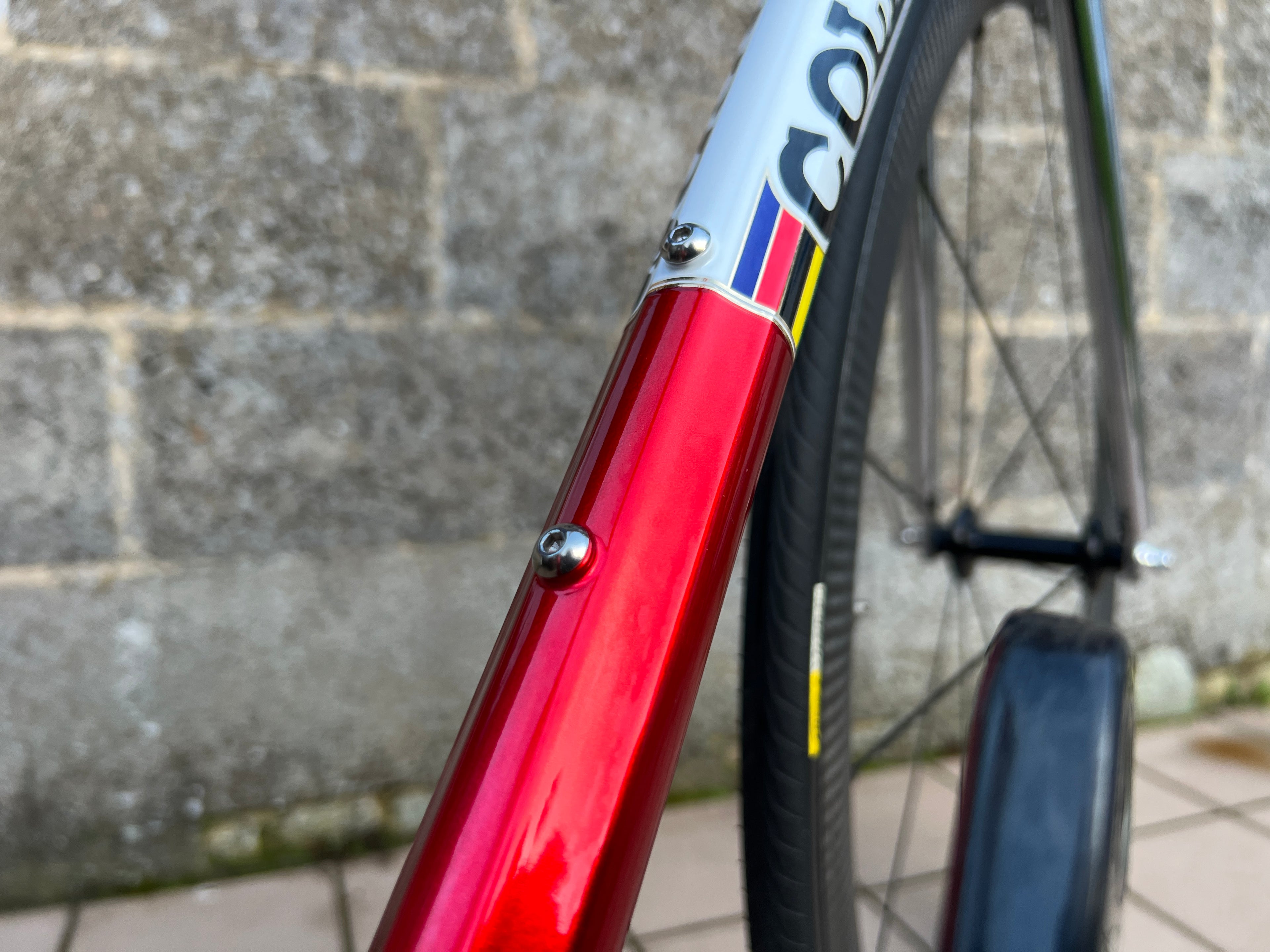 This Colnago Master X-Light 30th Anniversary Saronni is a perfect example of his craftsmanship. I’m proudly presenting this Colnago Master X-Light 30th Anniversary shining in his original Saronni red paintjob. An absolute classic! The superb frameset is made of very stiff DT15V steel.