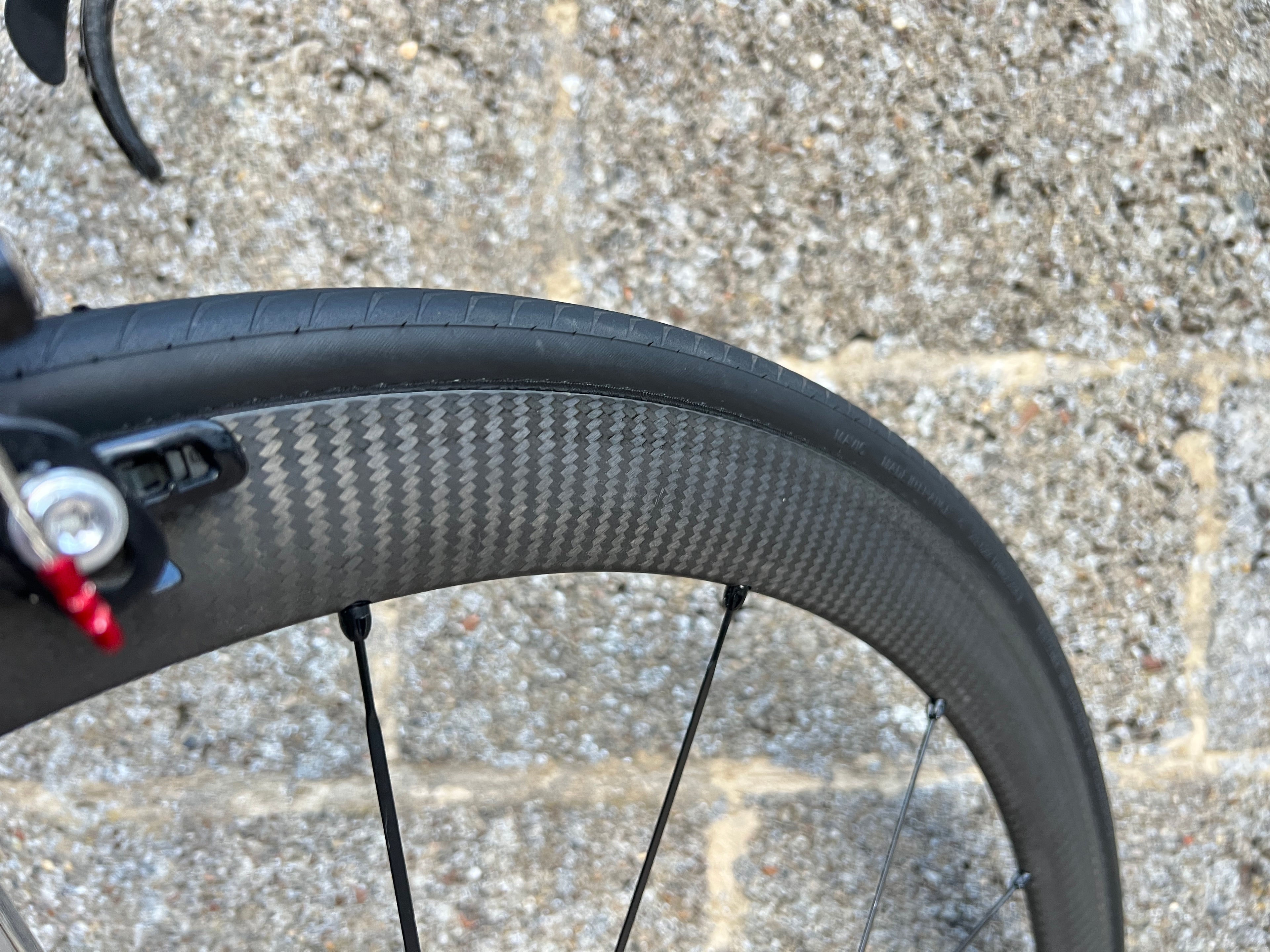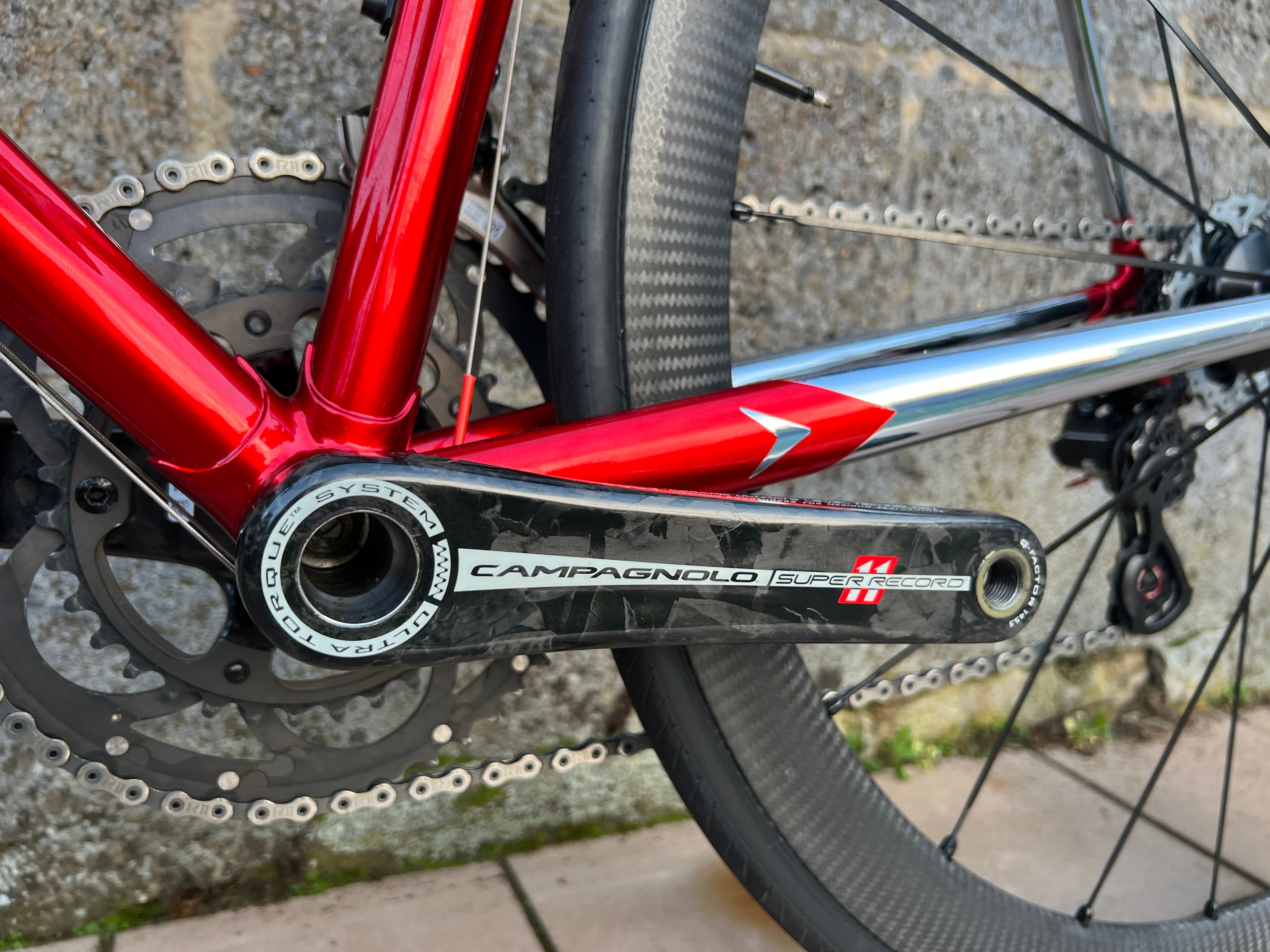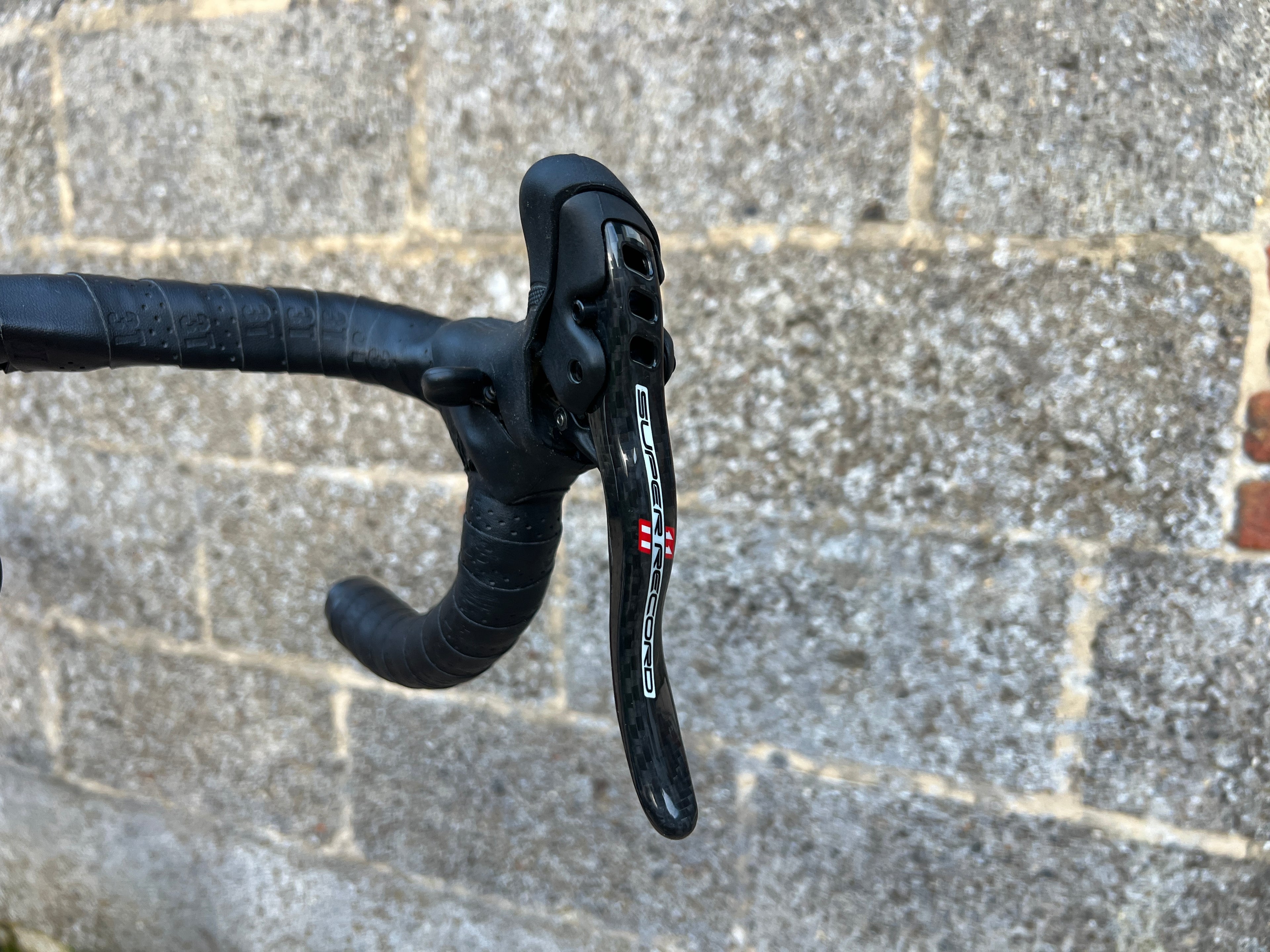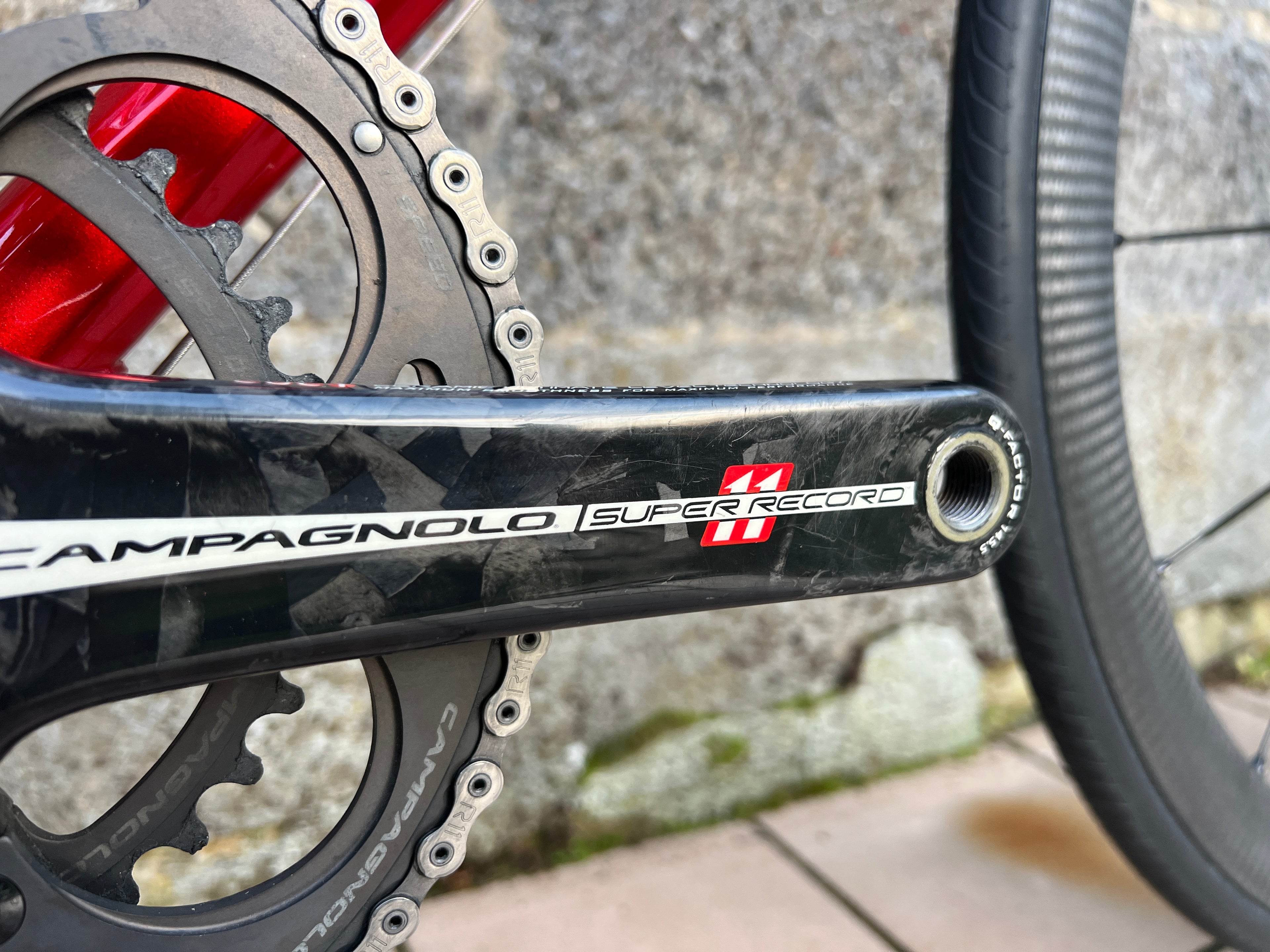 This masterpiece is equipped with one of the best groupsets in Campagnolo history. A Campagnolo Super Record 11S groupset. Carbon Mavic wheels. Those are clearly mint as well. The bike is in pristine condition and ready to ride.
