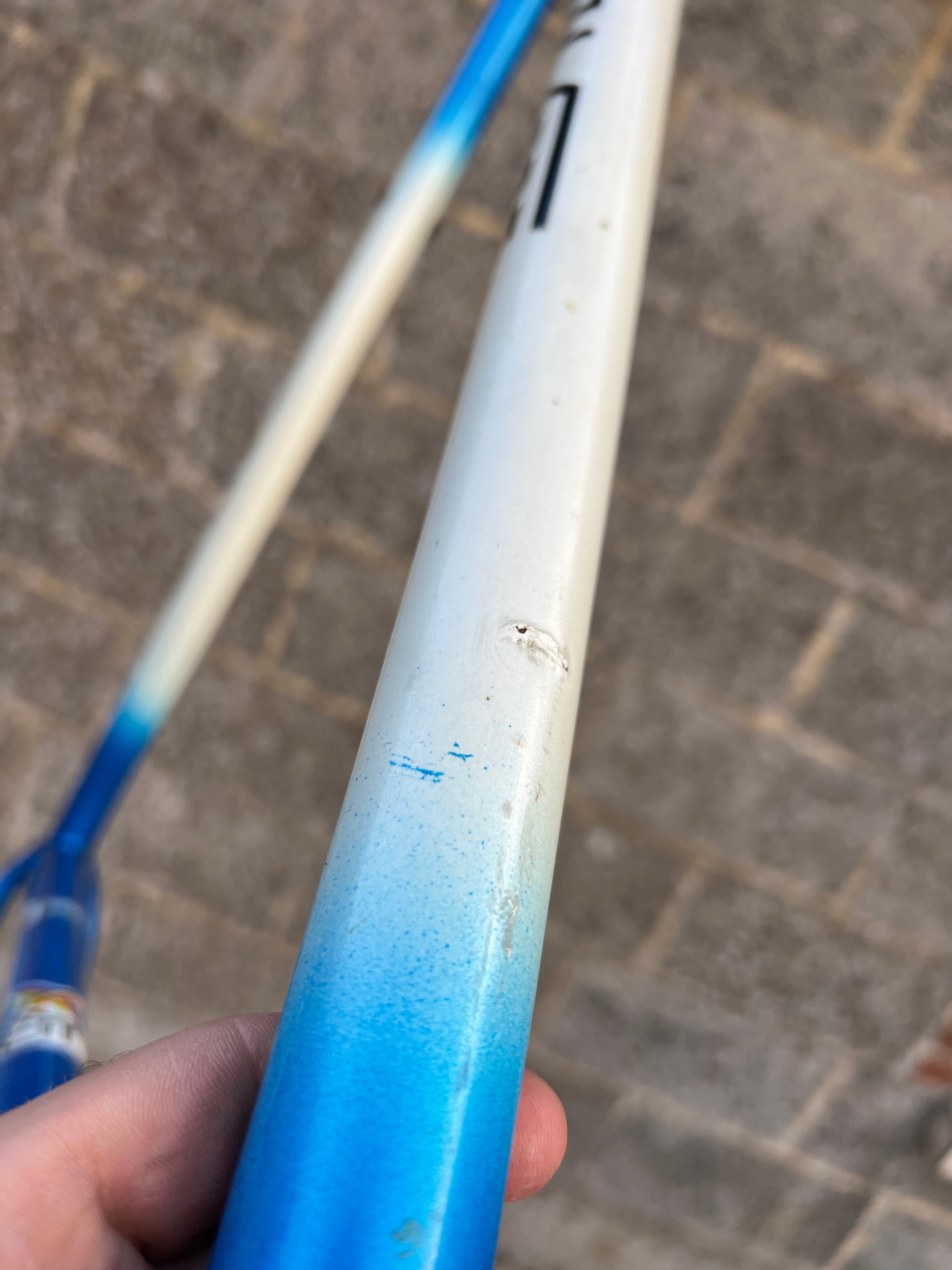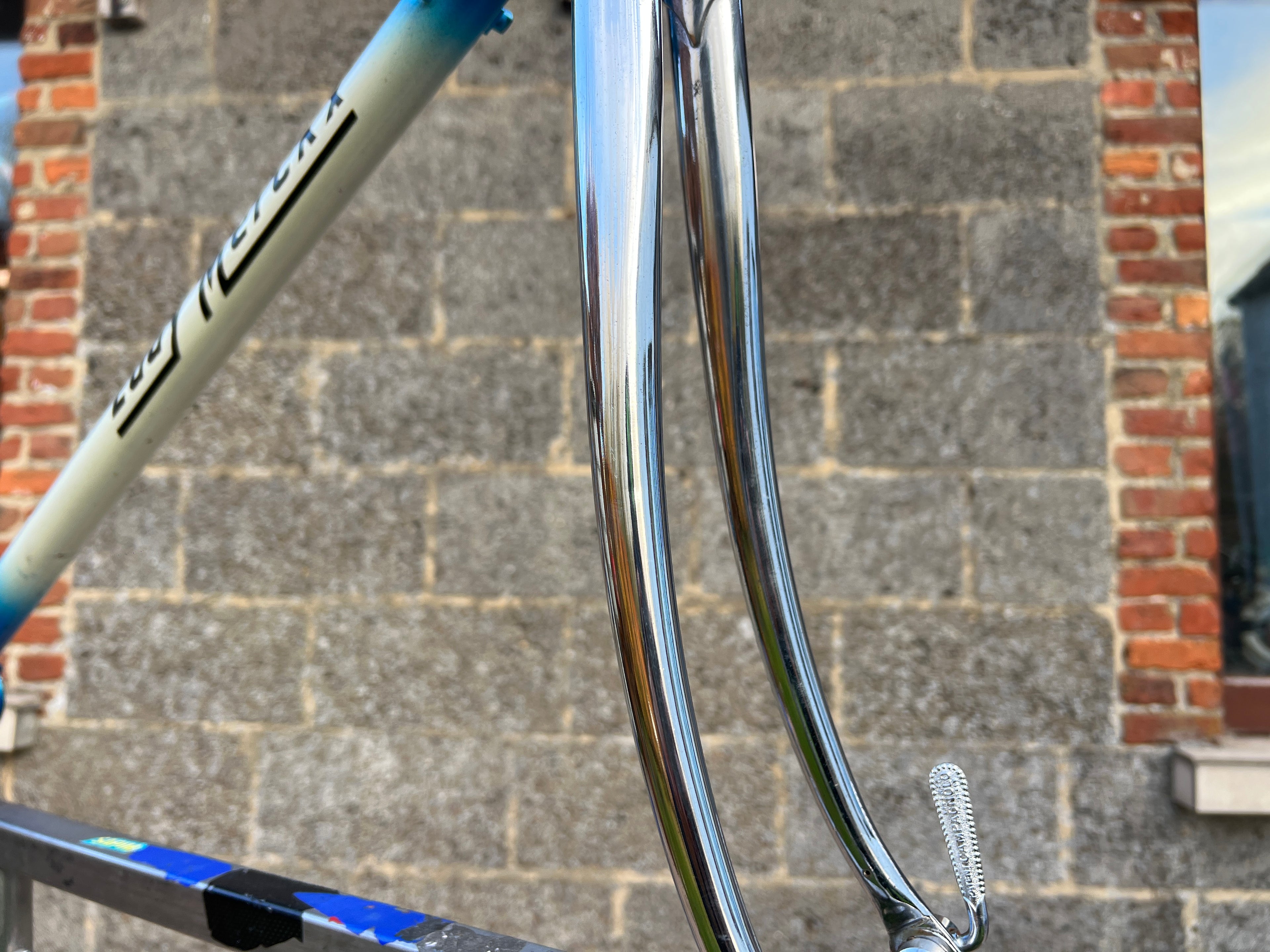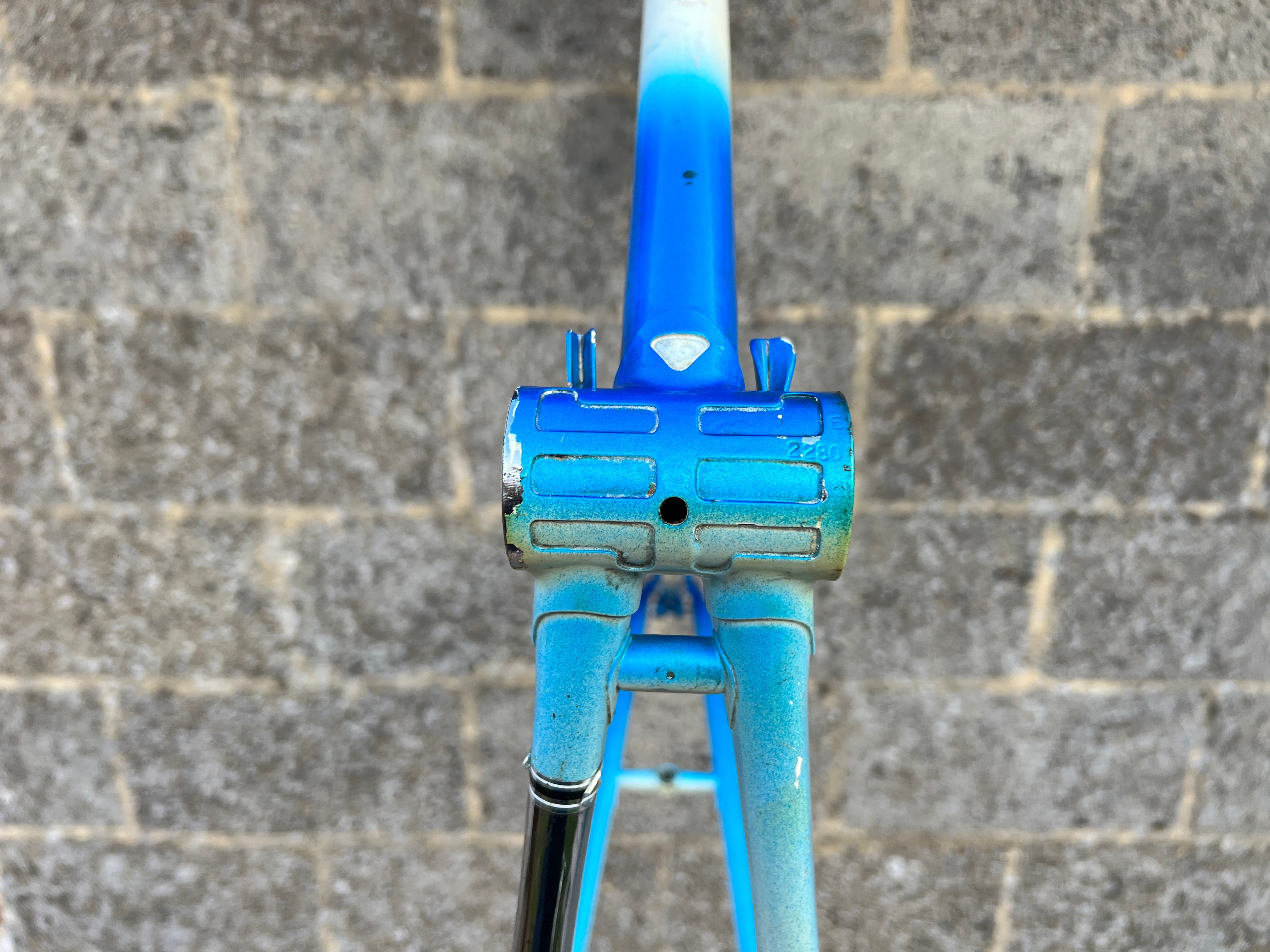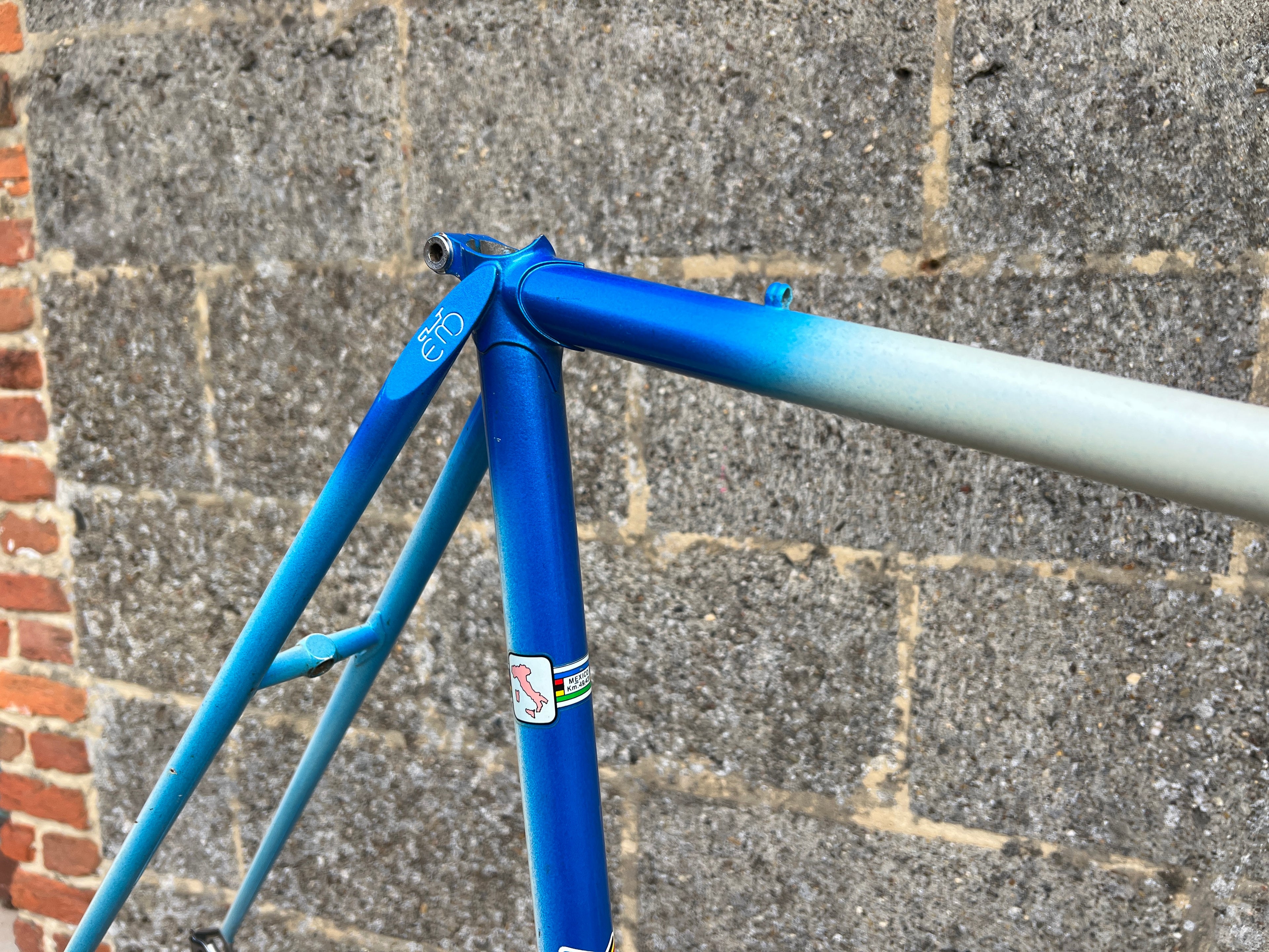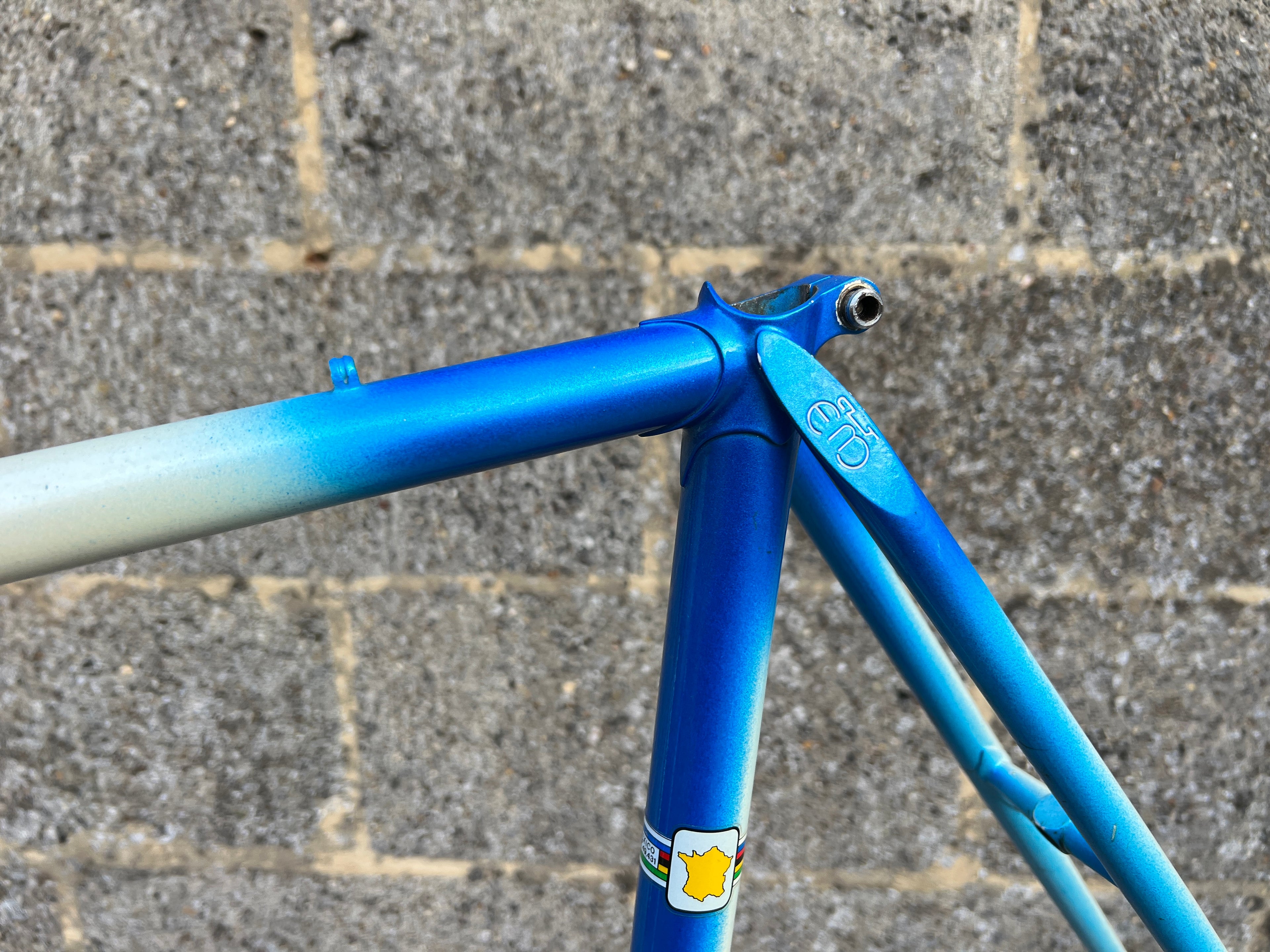 Fantastic Eddy Merckx Professional. Handmade in Belgium with Columbus SL tubing. No cracks, and only a very small dent/paint issue under the down tube. No structural damage at all. Some small paint chips and minor signs of age on the chrome, but nothing serious. A true Belgian classic.
