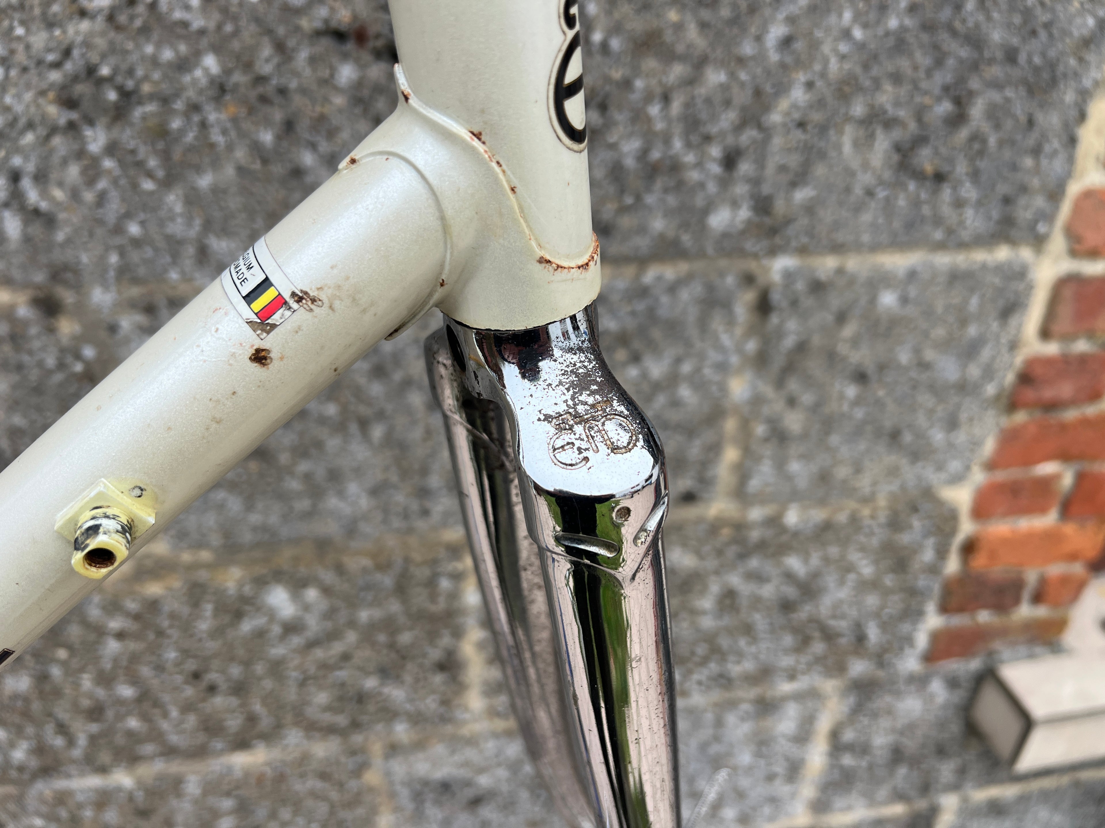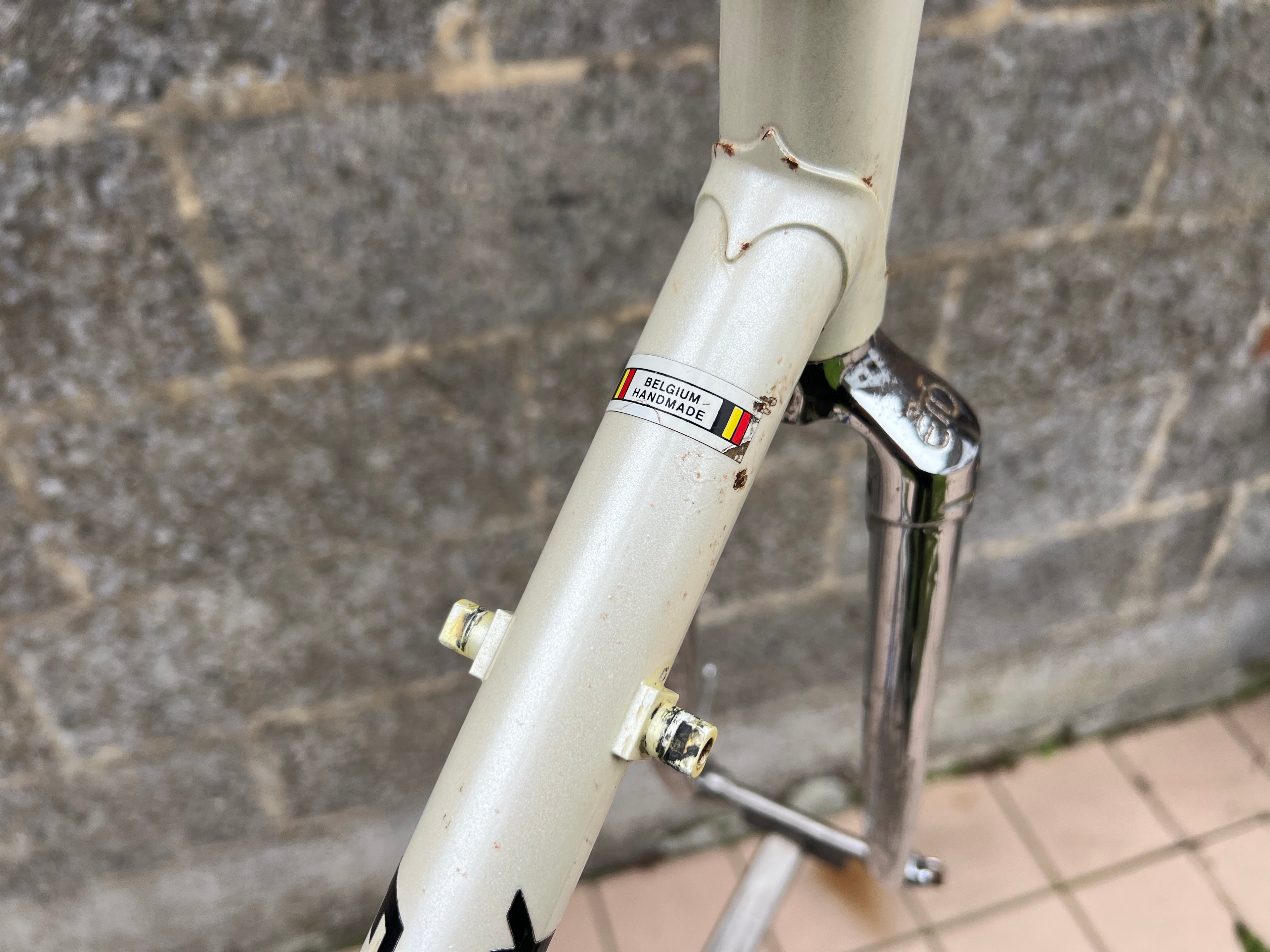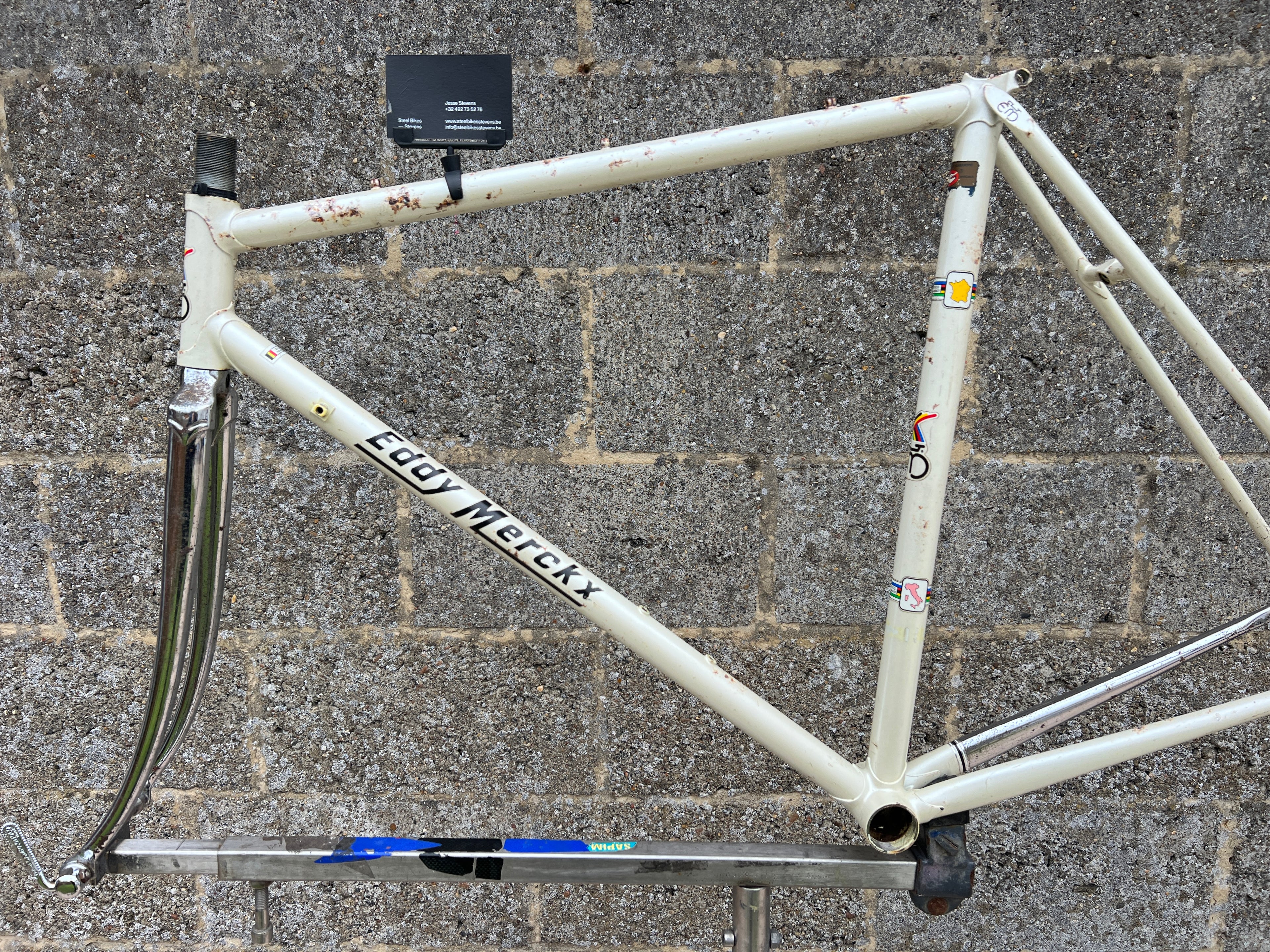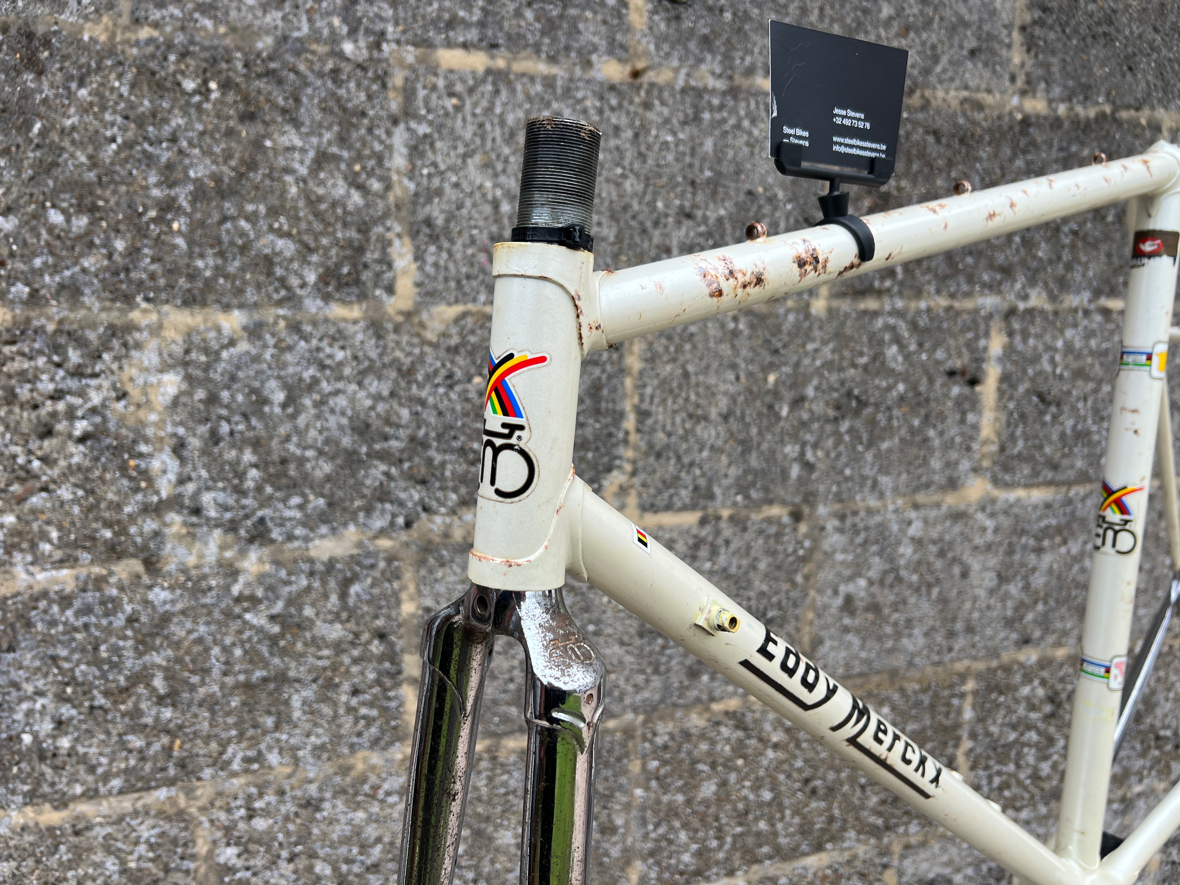 Fantastic Eddy Merckx Professional. Handmade in Belgium with Columbus SL tubing. Original paint and chrome. Perfect frameset for restauration. No cracks. A true Belgian classic.