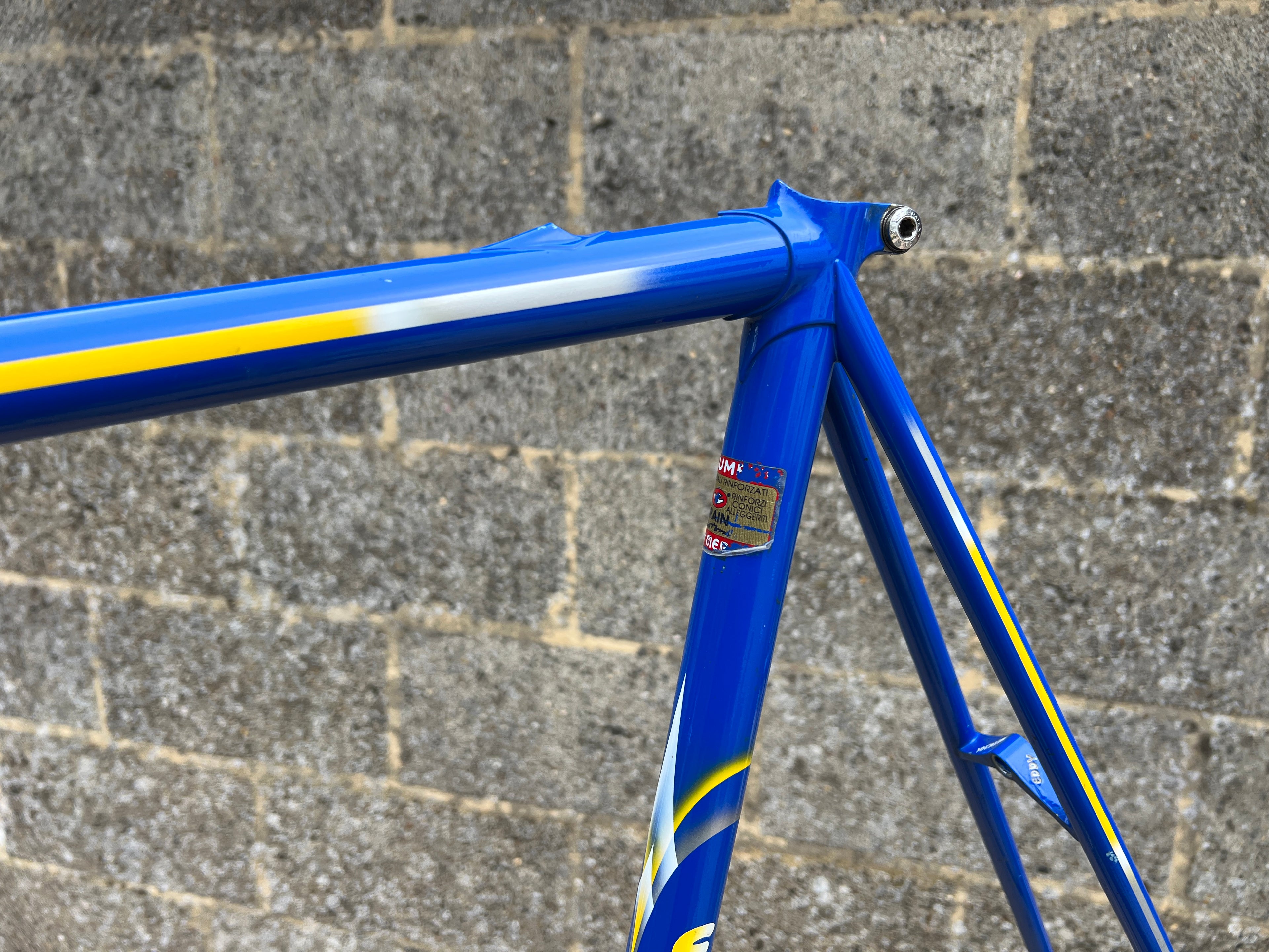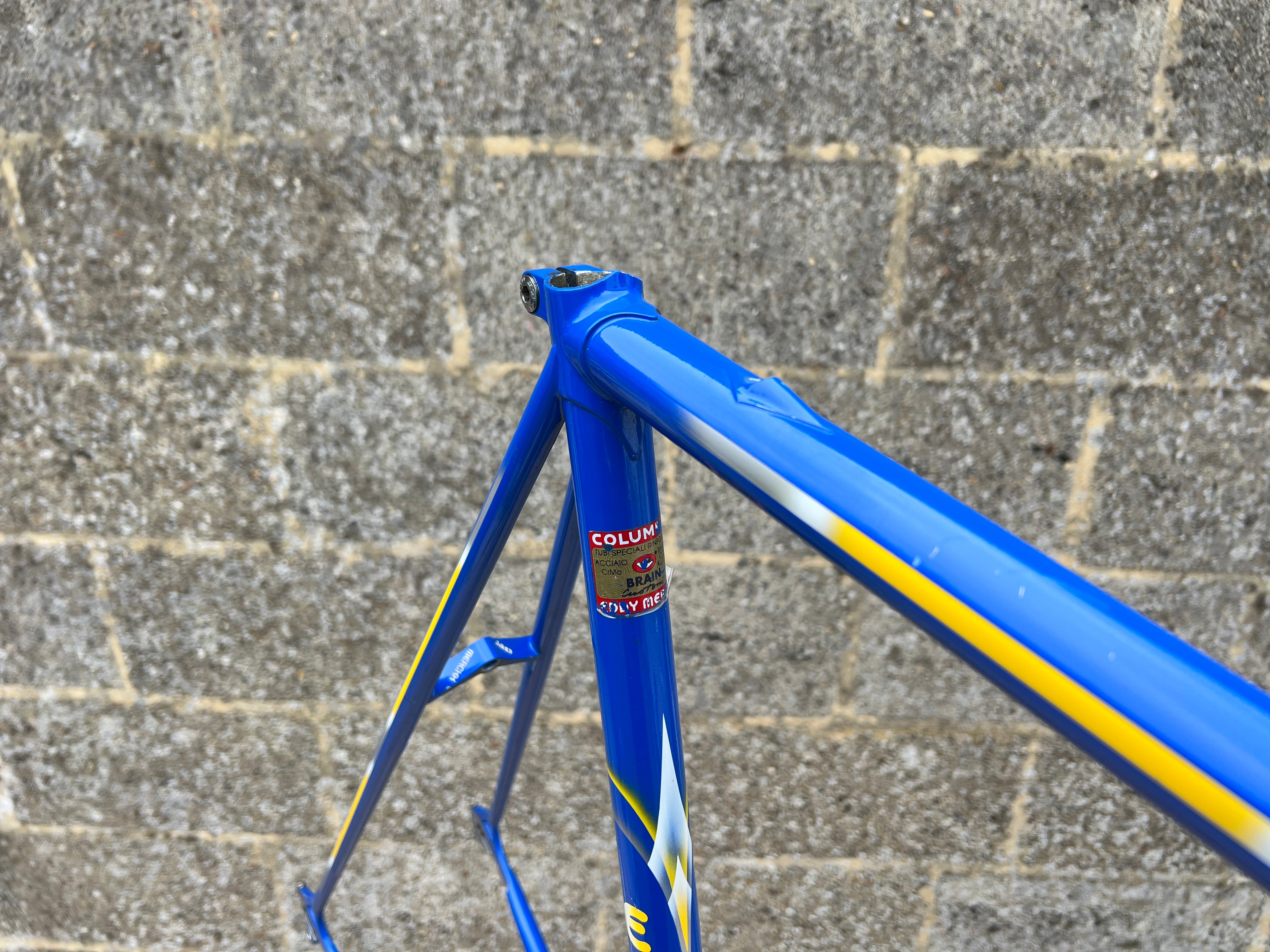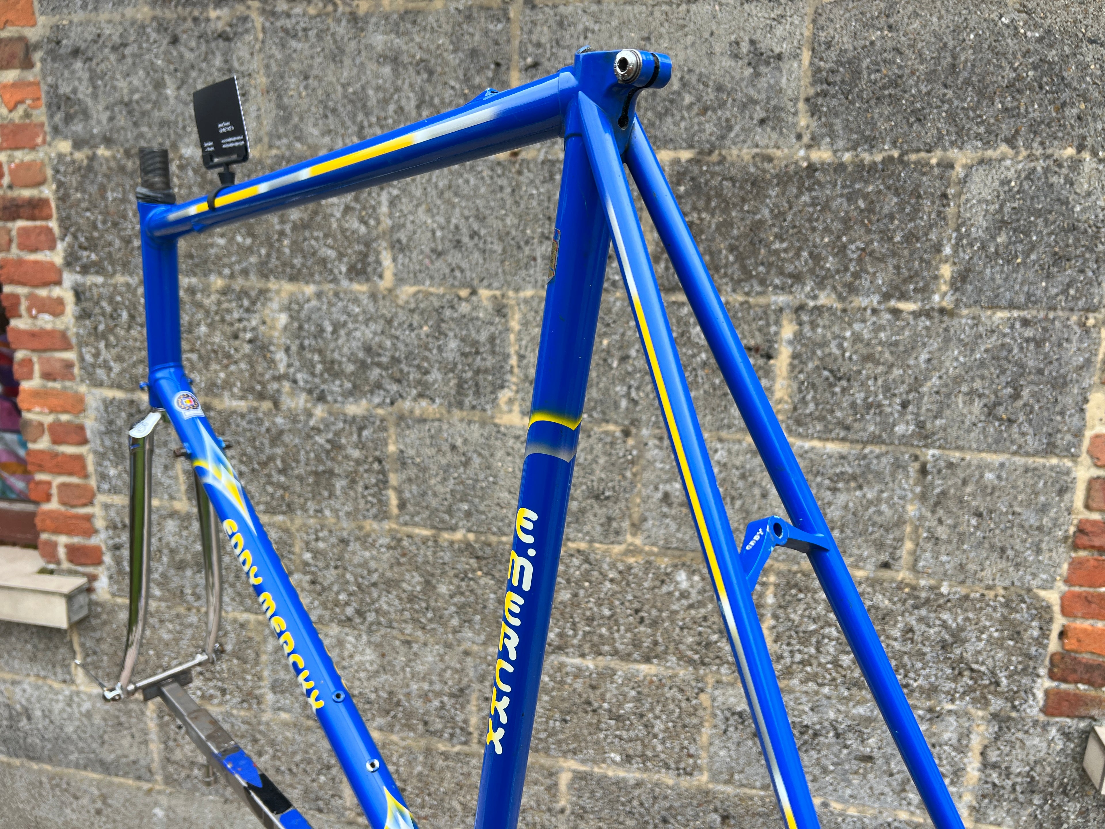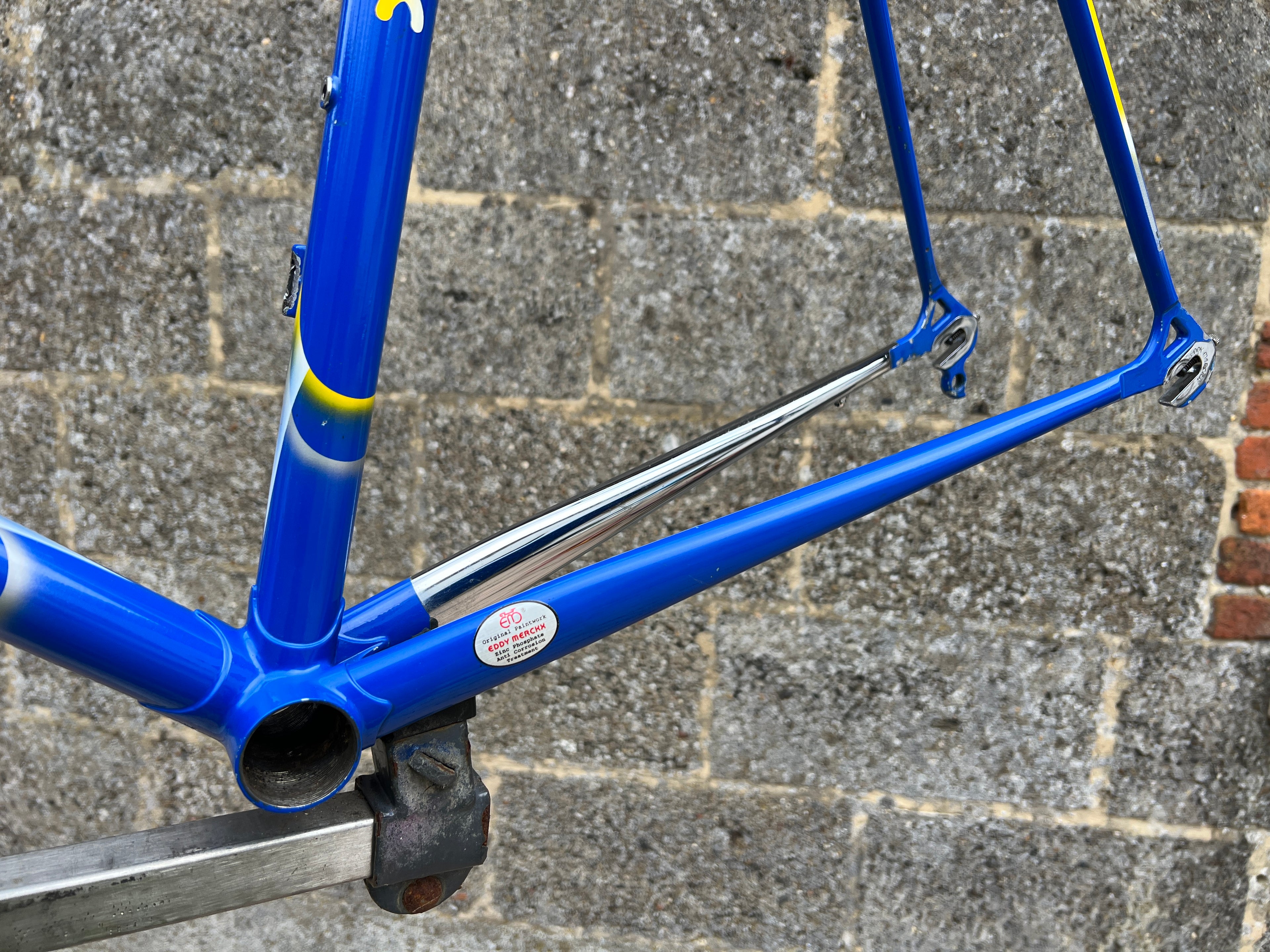 A superb example of the iconic Eddy Merckx Strada OS in the legendary Team GAN paint scheme. This frameset is exceptionally clean, showcasing original chrome in mint condition and the distinctive livery that makes it perfect for an authentic Team Replica build; Constructed from Columbus Brain tubing, the frame delivers the renowned ride quality, stiffness, and responsiveness associated with Merckx’s premium steel offerings. The paintwork is beautifully preserved with only a few very small, superficial chips. Nothing that detracts from its overall presentation. No cracks, dents, or structural issues. Fully inspected and ready for your next build. In this rare, extra large size and in such excellent condition, examples like this seldom appear on the market. A true collector’s piece.
