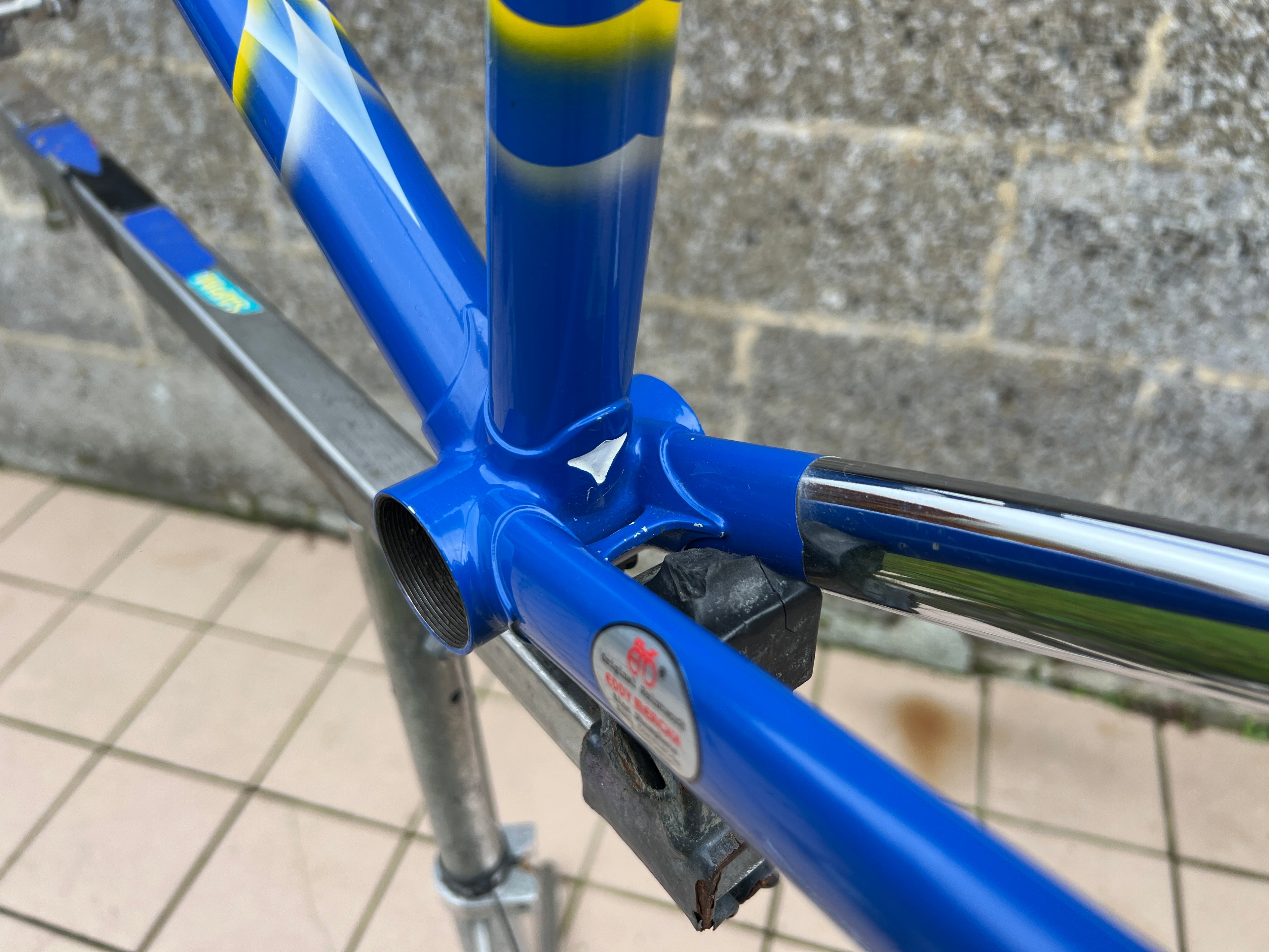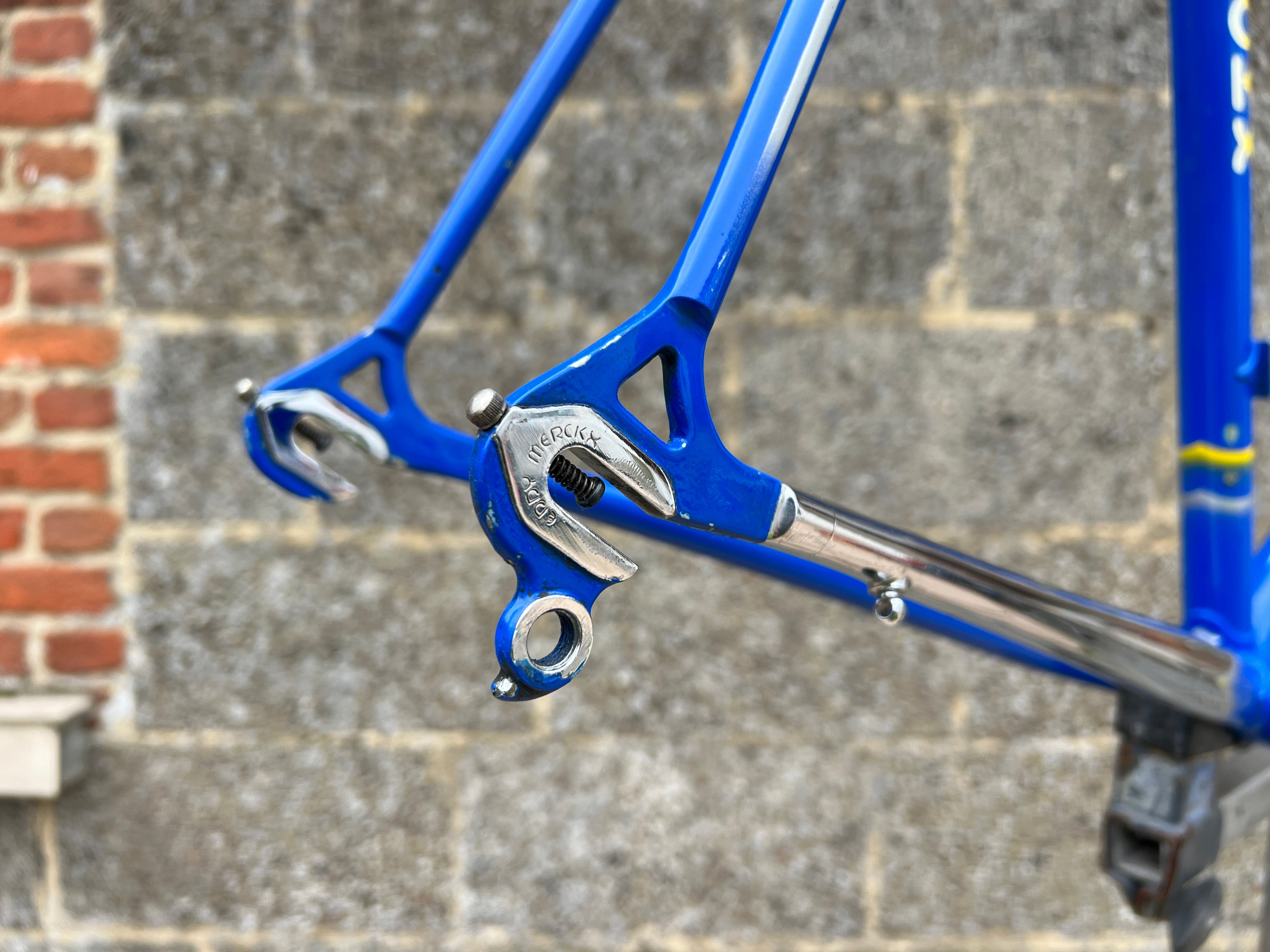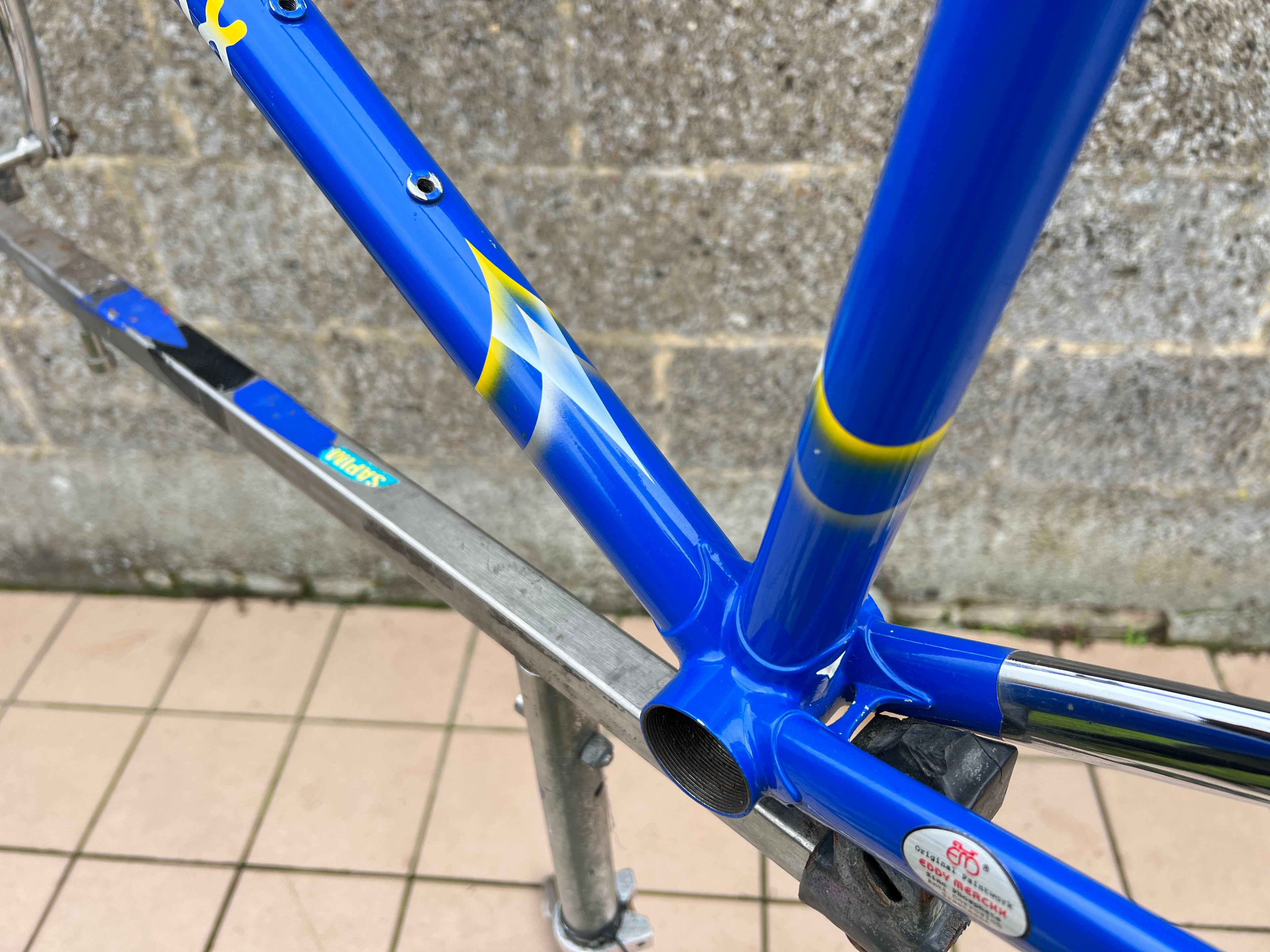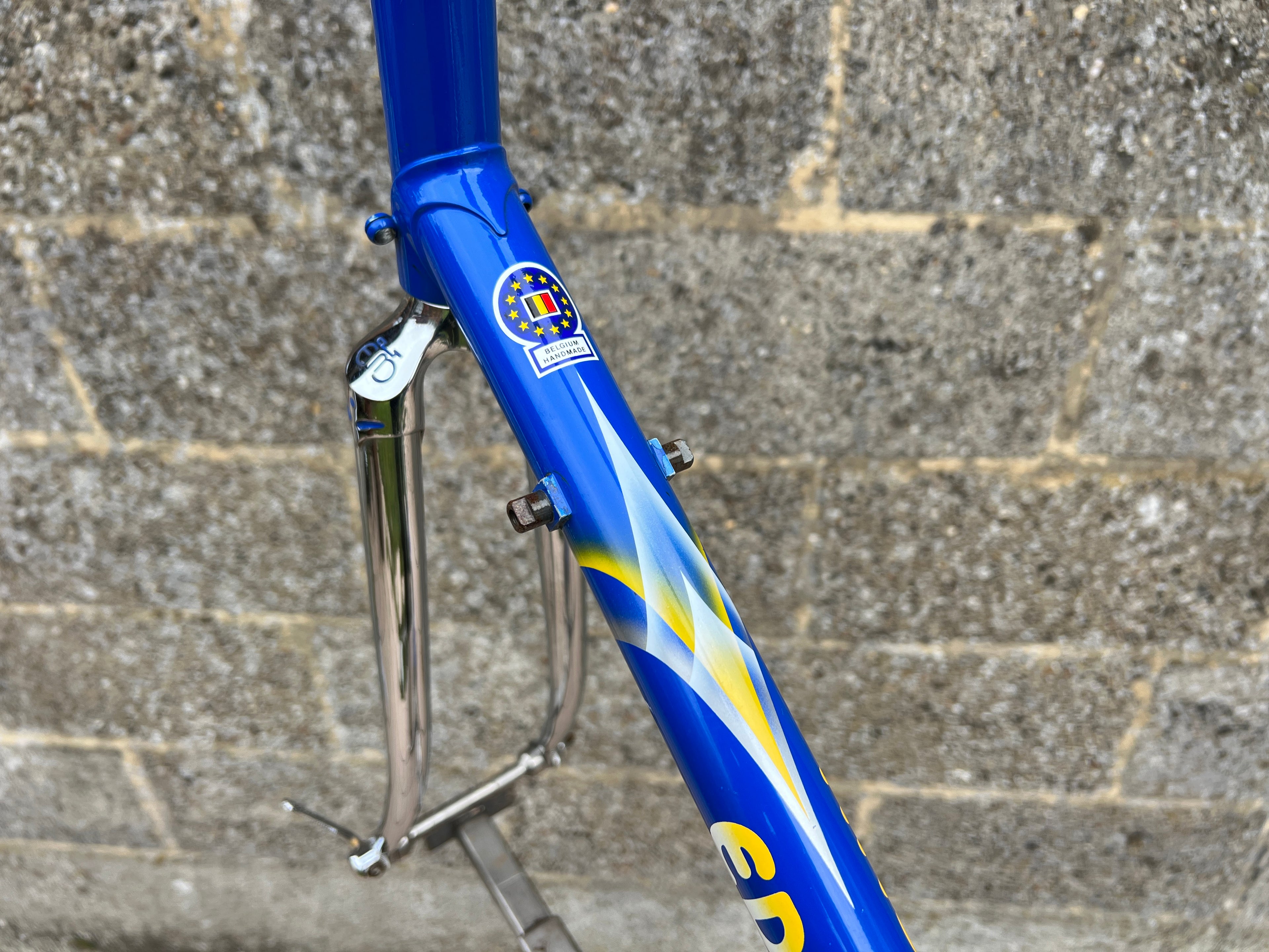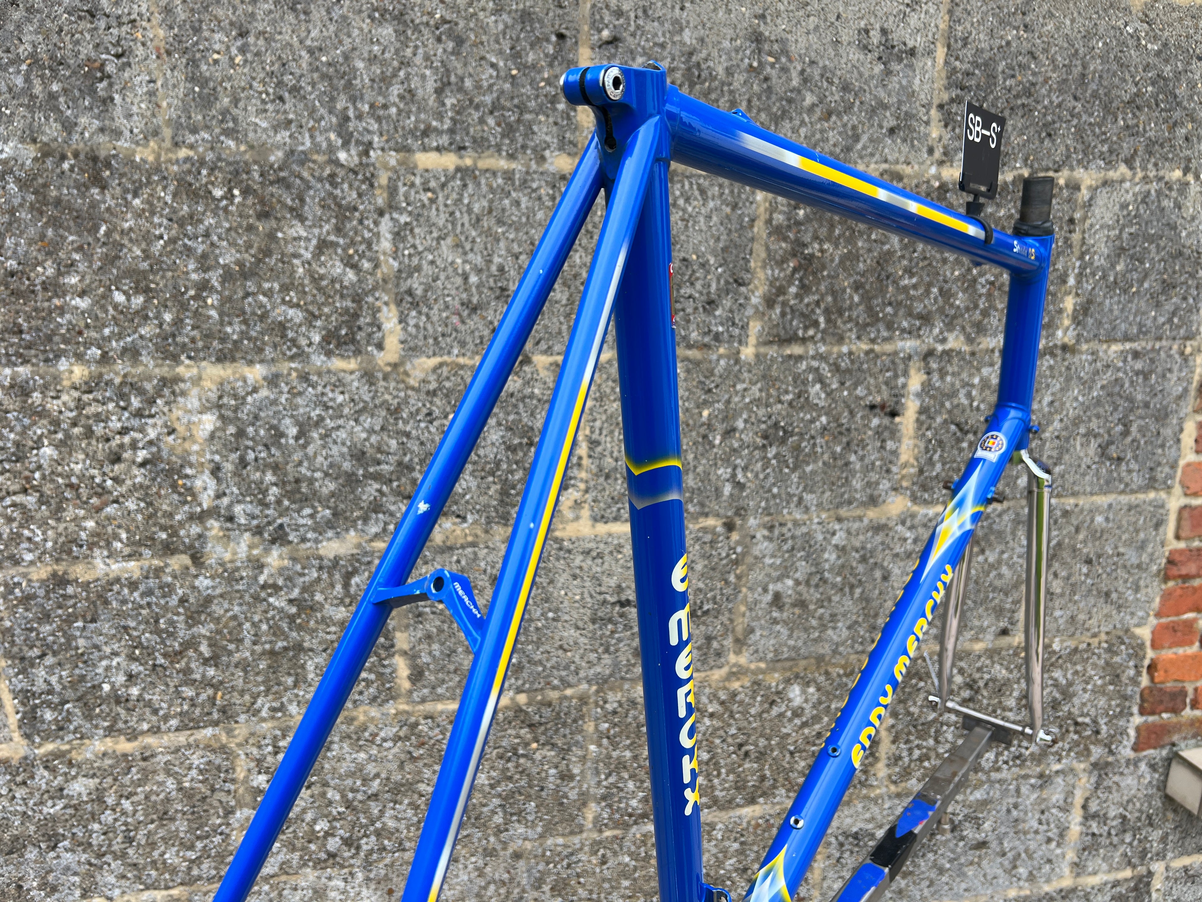 A superb example of the iconic Eddy Merckx Strada OS in the legendary Team GAN paint scheme. This frameset is exceptionally clean, showcasing original chrome in mint condition and the distinctive livery that makes it perfect for an authentic Team Replica build; Constructed from Columbus Brain tubing, the frame delivers the renowned ride quality, stiffness, and responsiveness associated with Merckx’s premium steel offerings. The paintwork is beautifully preserved with only a few very small, superficial chips. Nothing that detracts from its overall presentation. No cracks, dents, or structural issues. Fully inspected and ready for your next build. In this rare, extra large size and in such excellent condition, examples like this seldom appear on the market. A true collector’s piece.