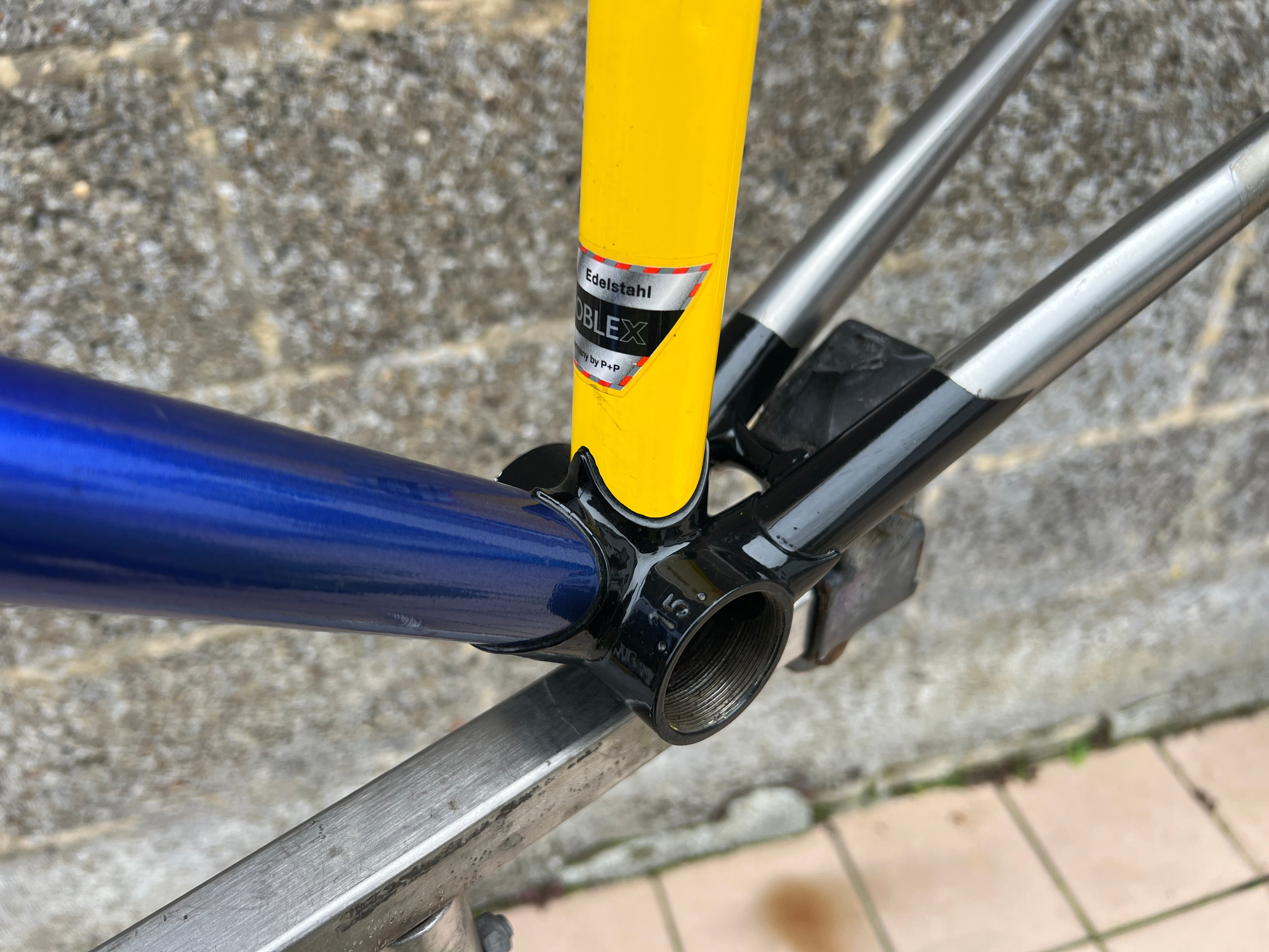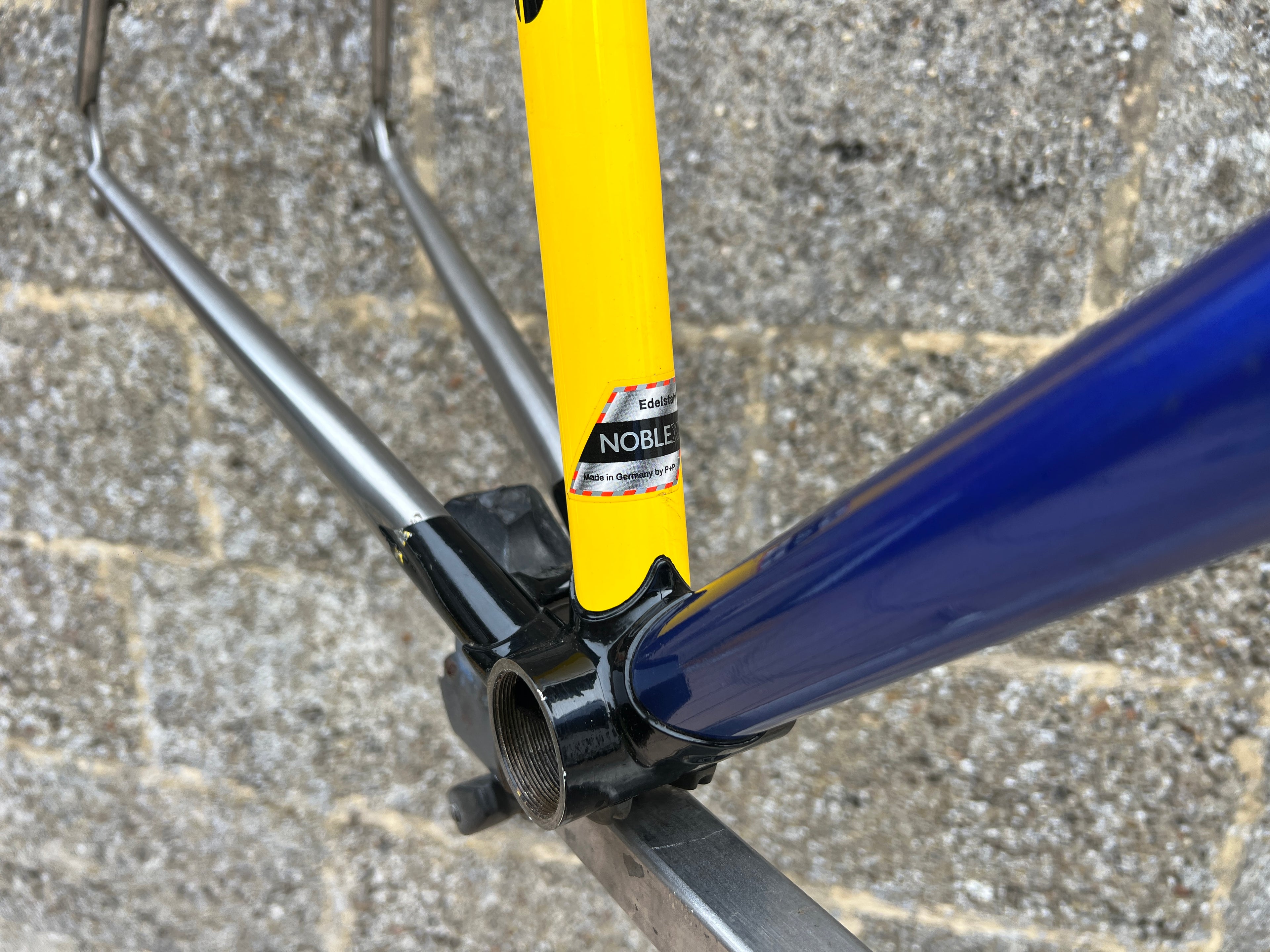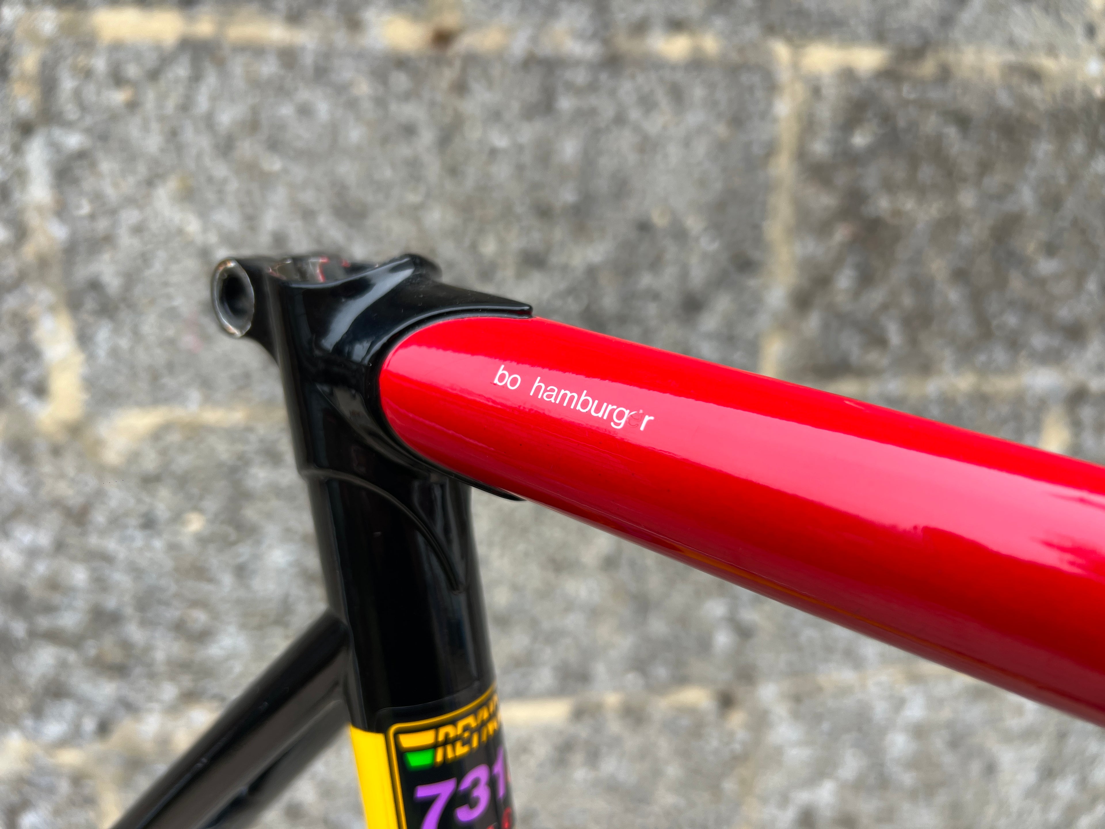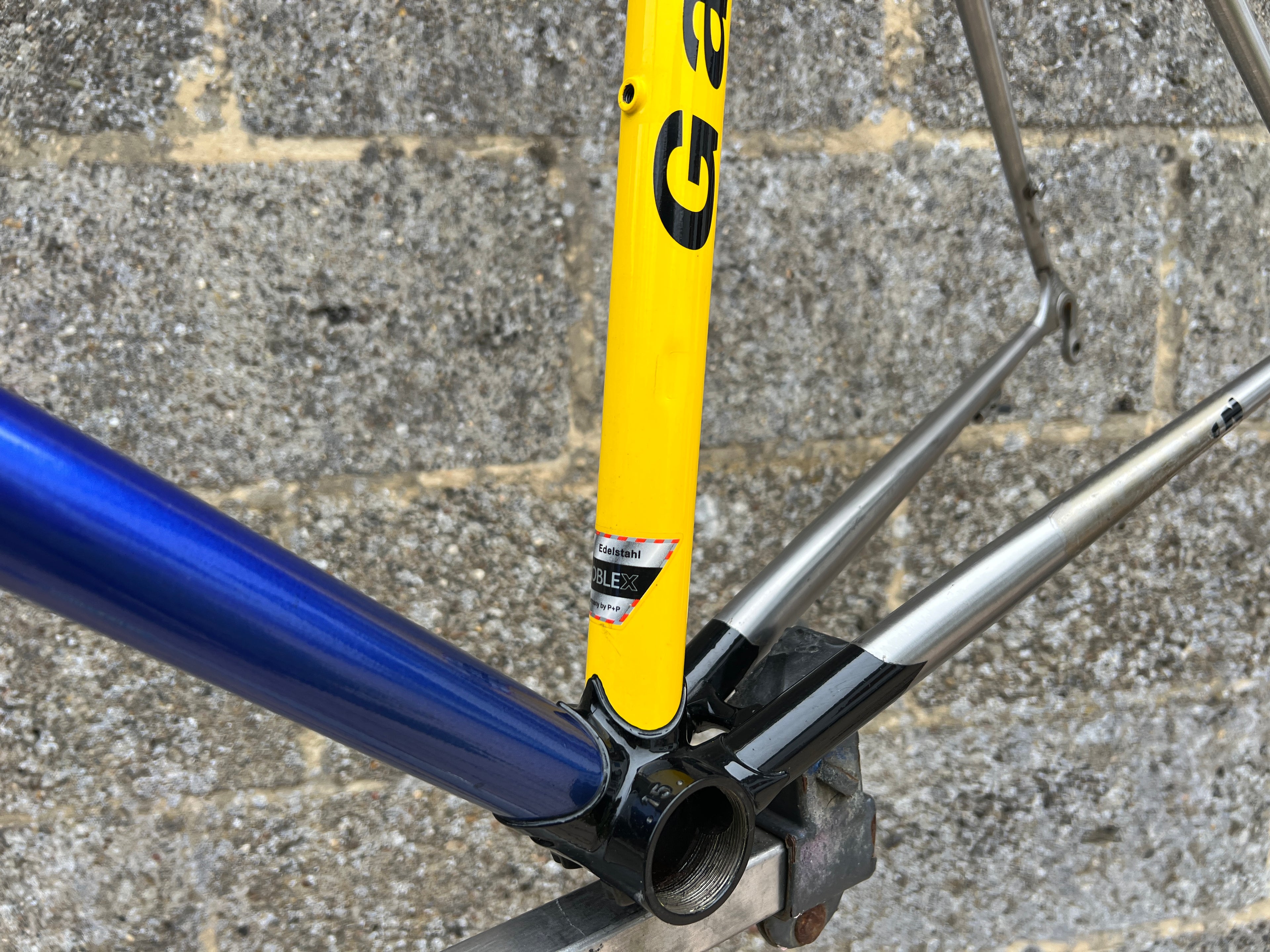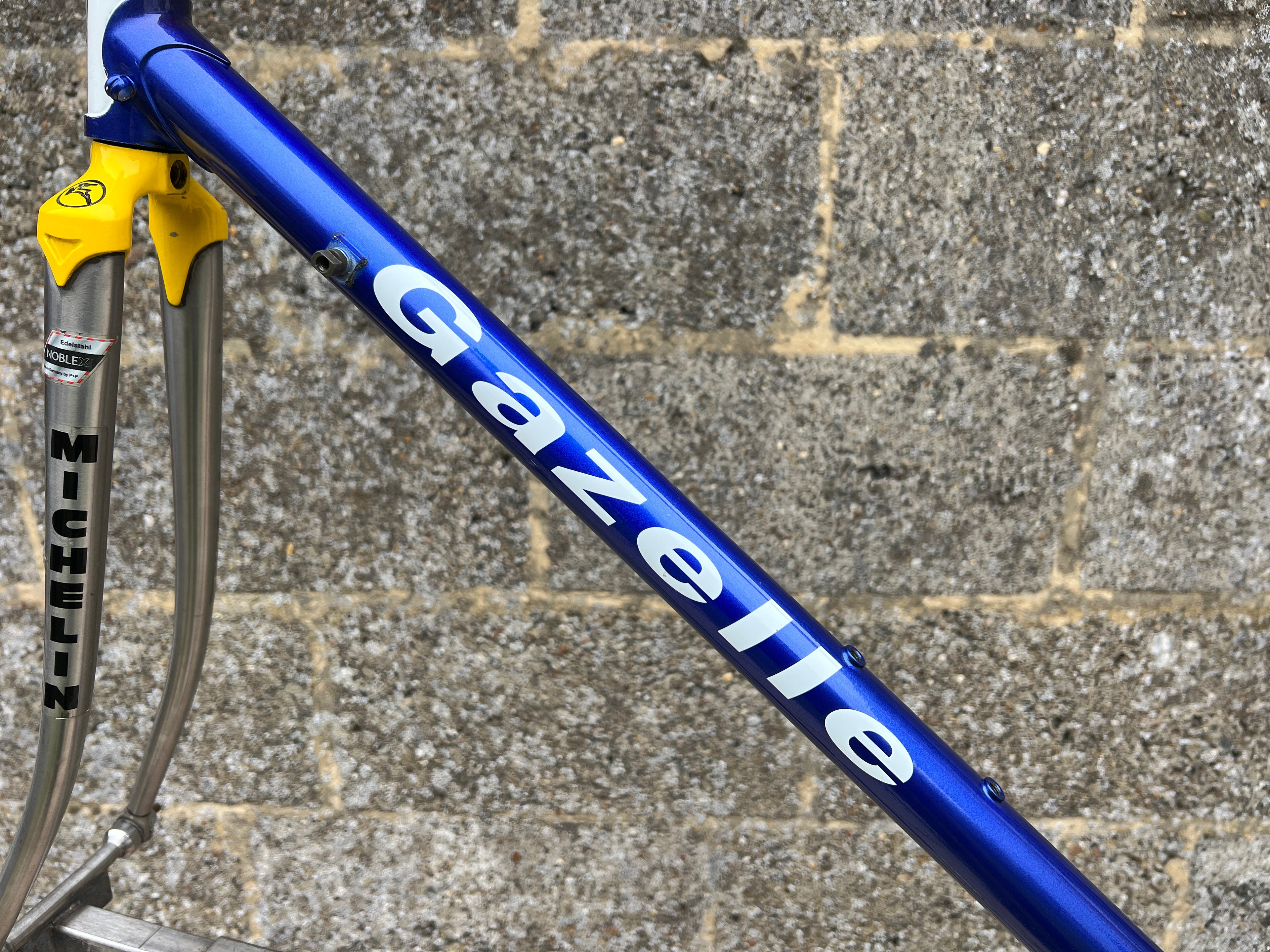 For sale is an exceptionally rare 1995 Gazelle Ex Team TVM frameset. An authentic pro-level frame ridden by Bo Hamburger during the iconic 1995 season. This is not a reproduction or shop version but a genuine team frameset. The main triangle is constructed from Reynolds 731 OS Race tubing. One of the most advanced and highly regarded steel racing tubesets of its era. Complementing it is a Noblex Edelstahl stainless steel fork and rear triangle, crafted in Germany. This combination delivers precise handling, durability and a striking aesthetic that sets it apart from typical steel frames. The frameset still carries the unmistakable 1995 Team TVM livery. Its condition is excellent for its age. No cracks. Ideal for anyone looking to build a premium period correct race bike or to add a true collector’s item to a vintage cycling collection.