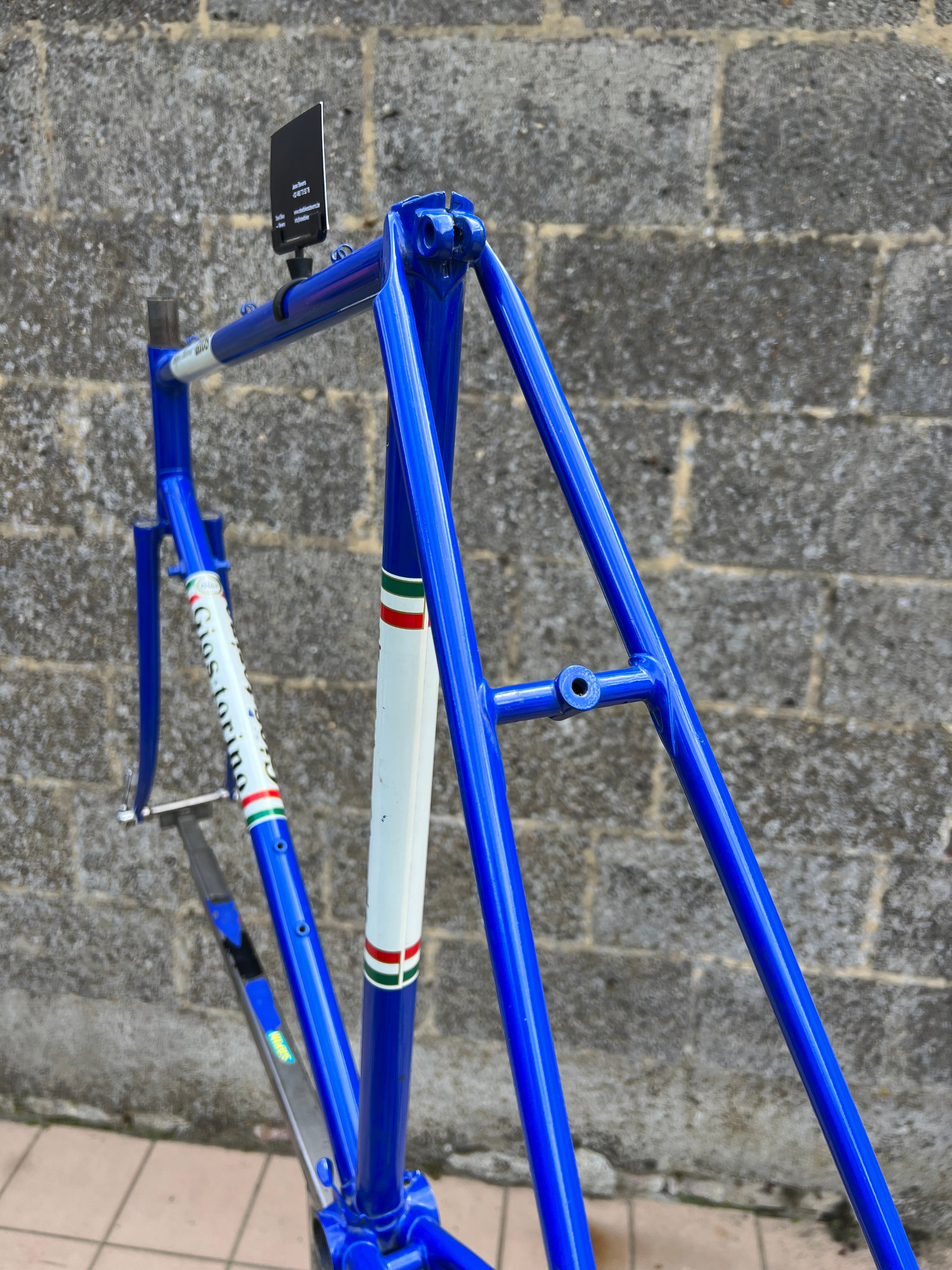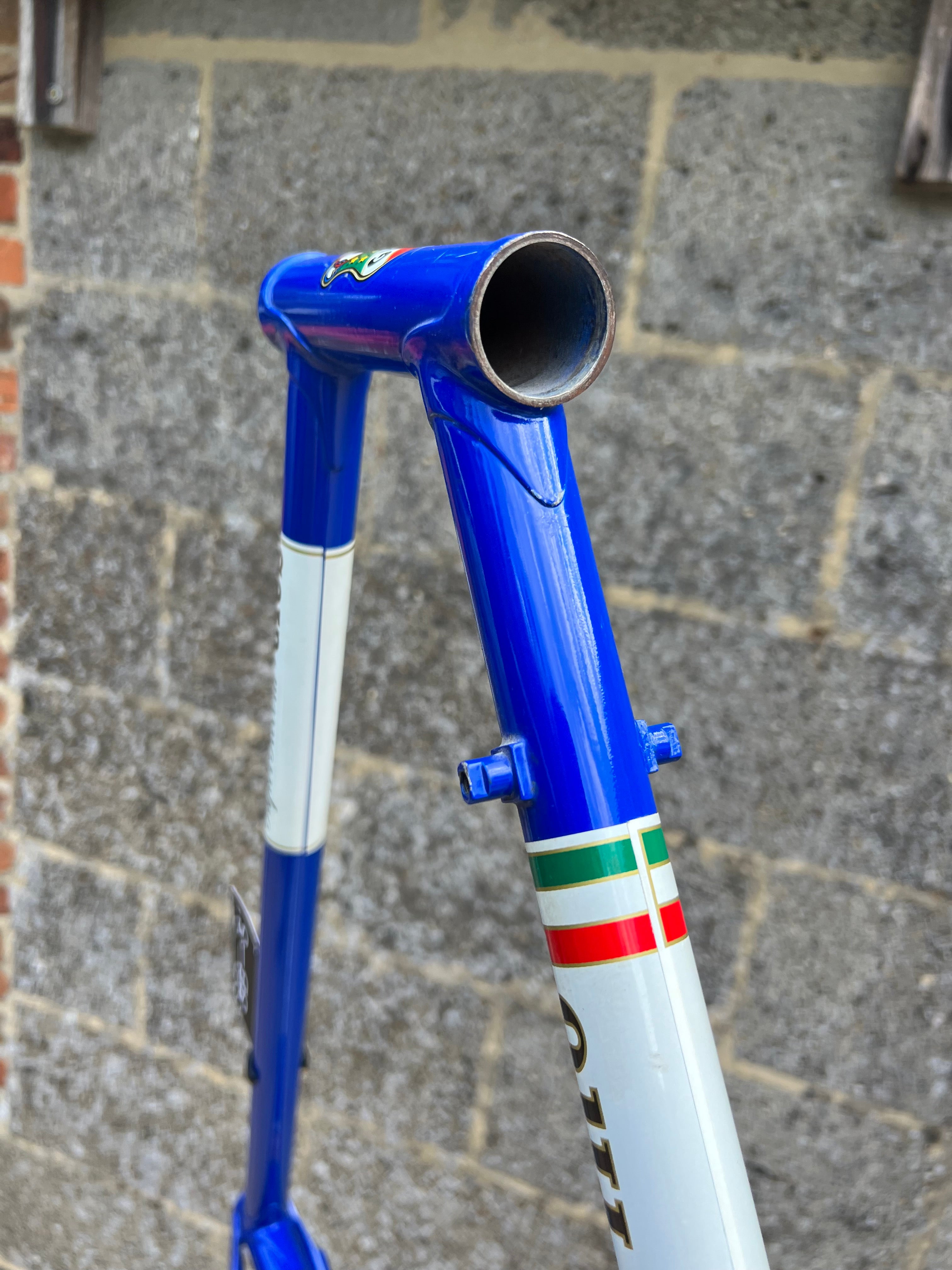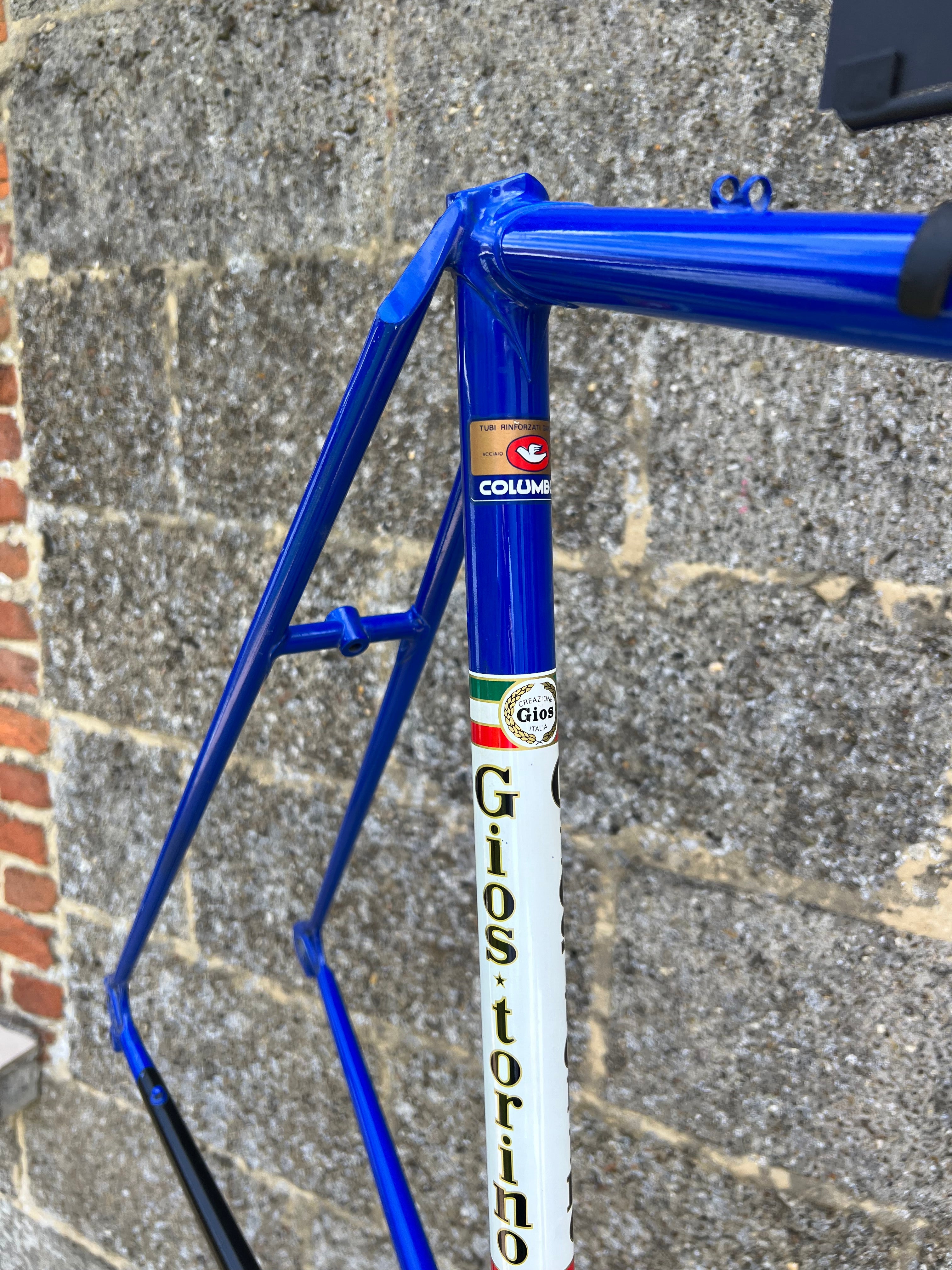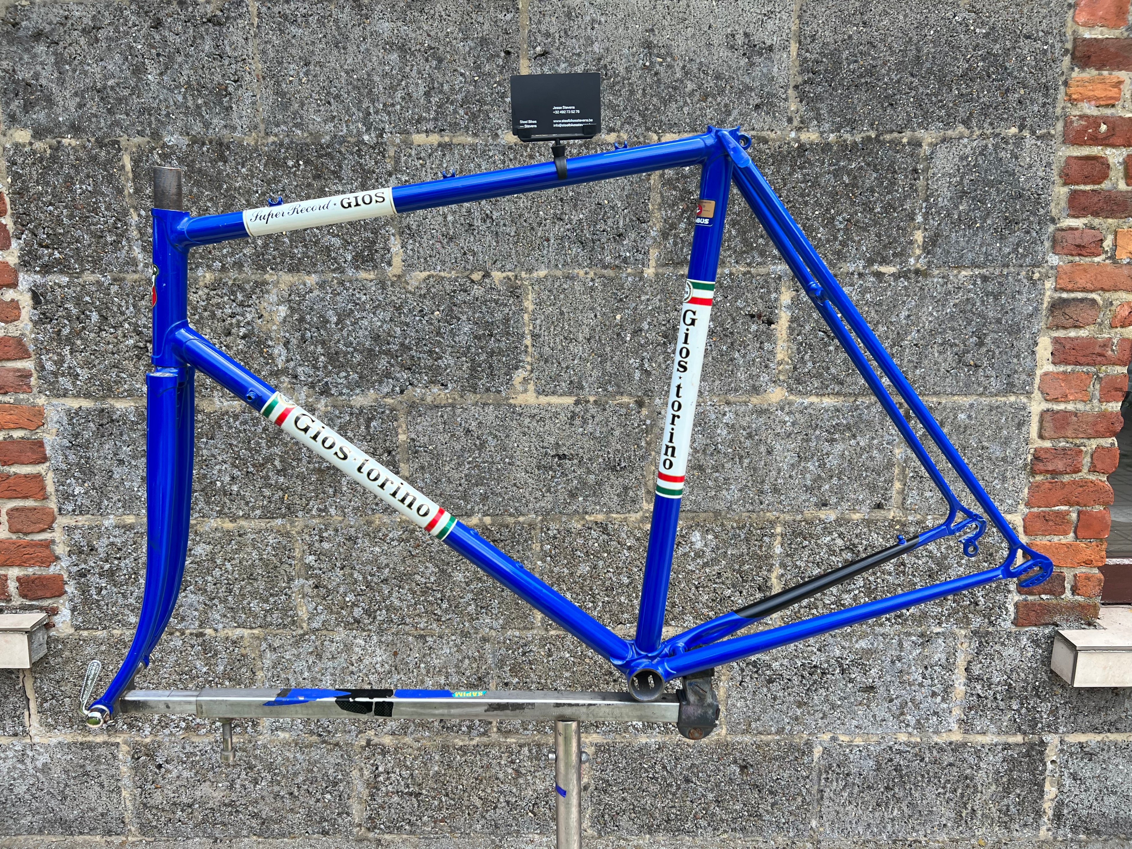 An ultra classic in Italian cycling history. Gios Torino Super Record Coin model. A wonderfull Italian frameset from the 80’s. An absolute classic for collectors! This frameset has been resprayed in the past so it shows some very small signs of use. No dents. No cracks. Ready to build. All threads are fine.