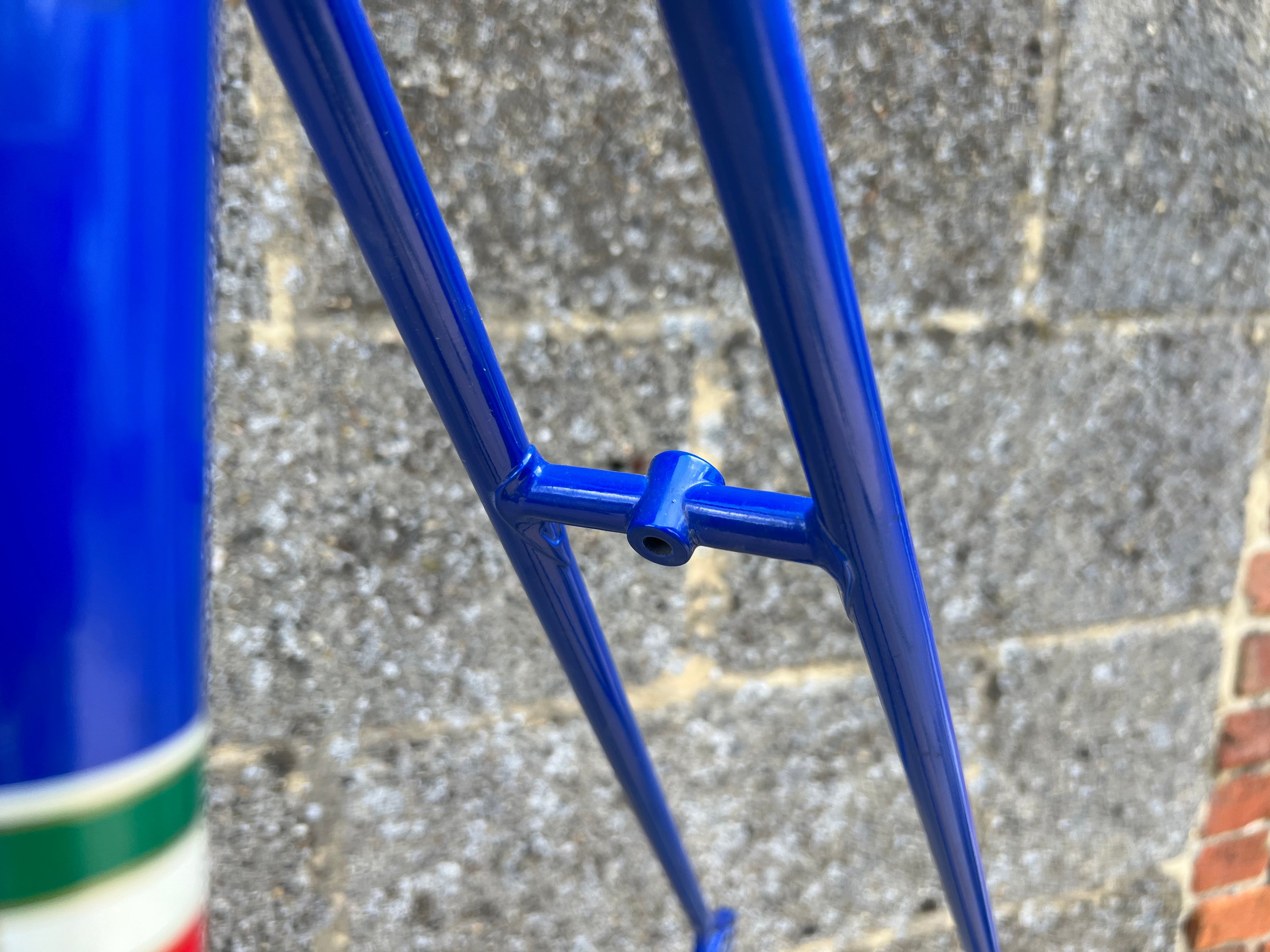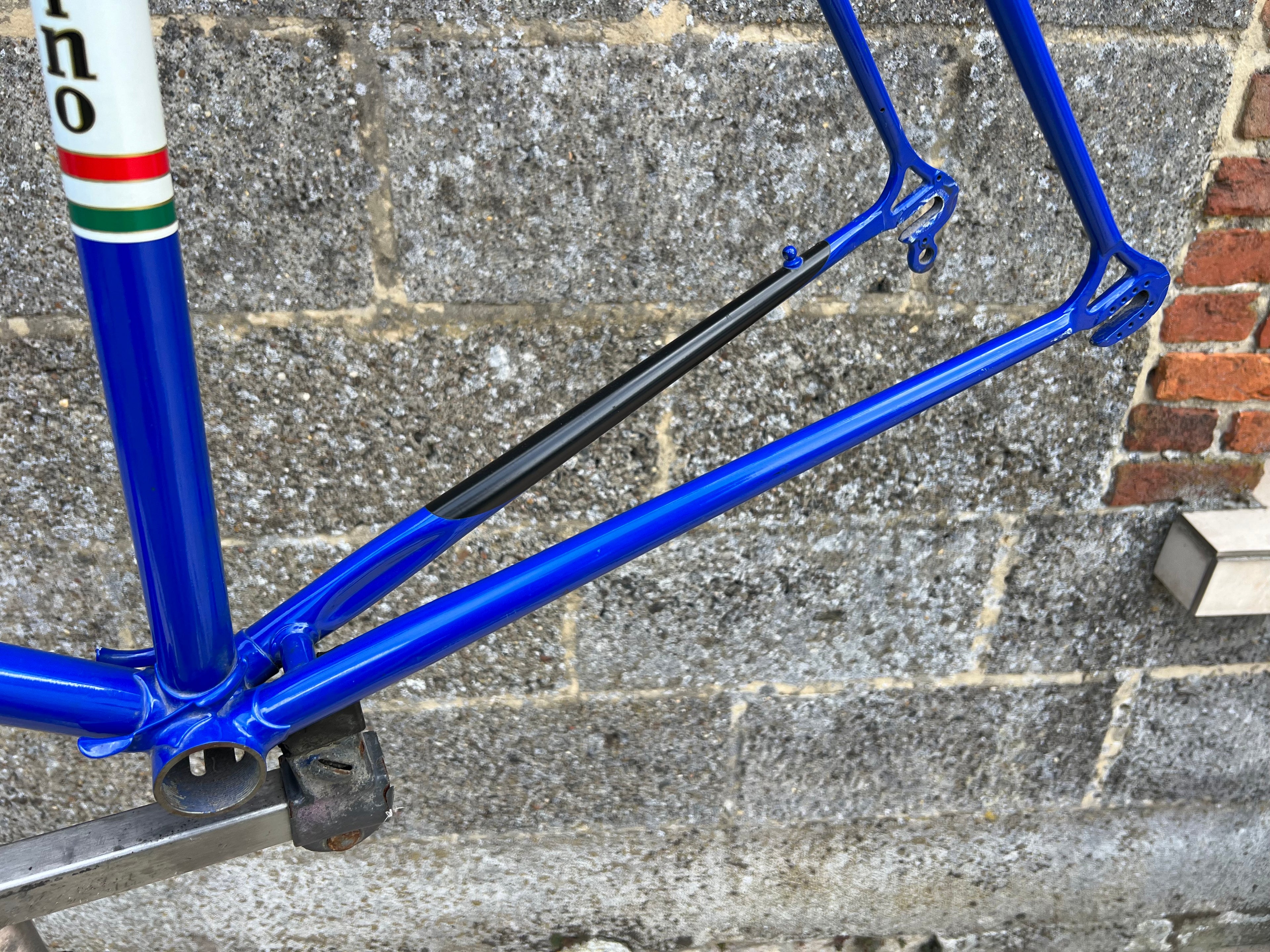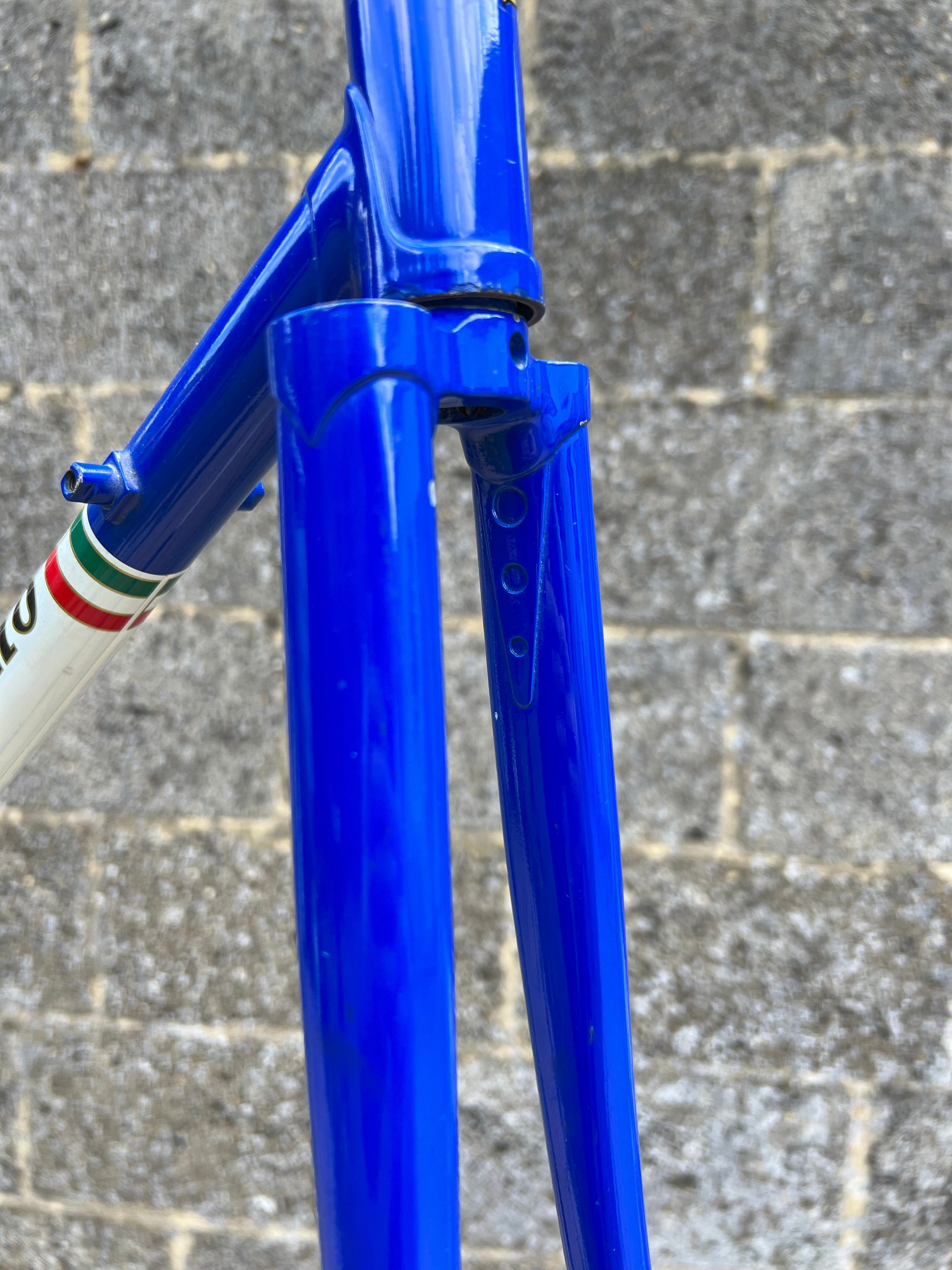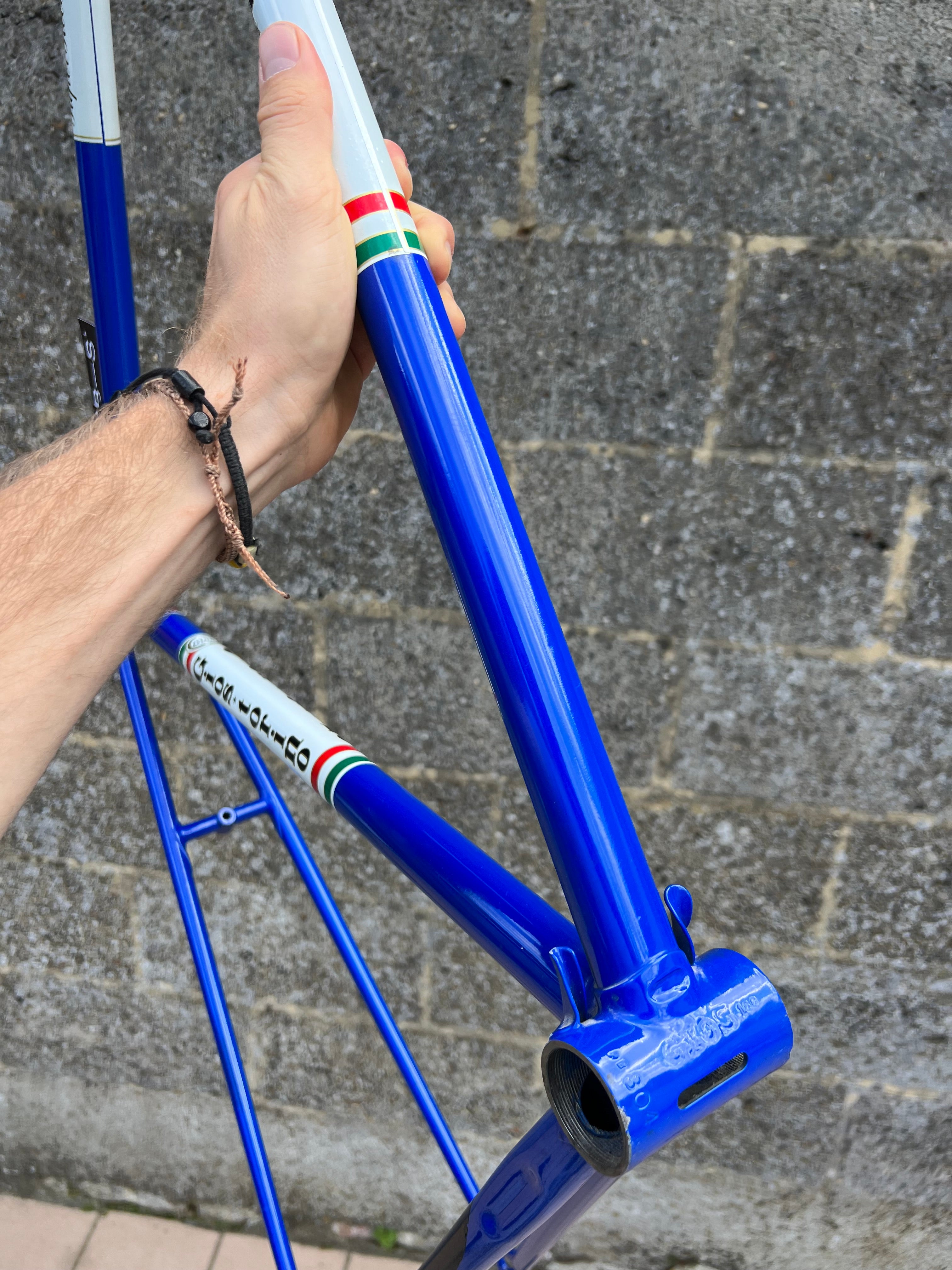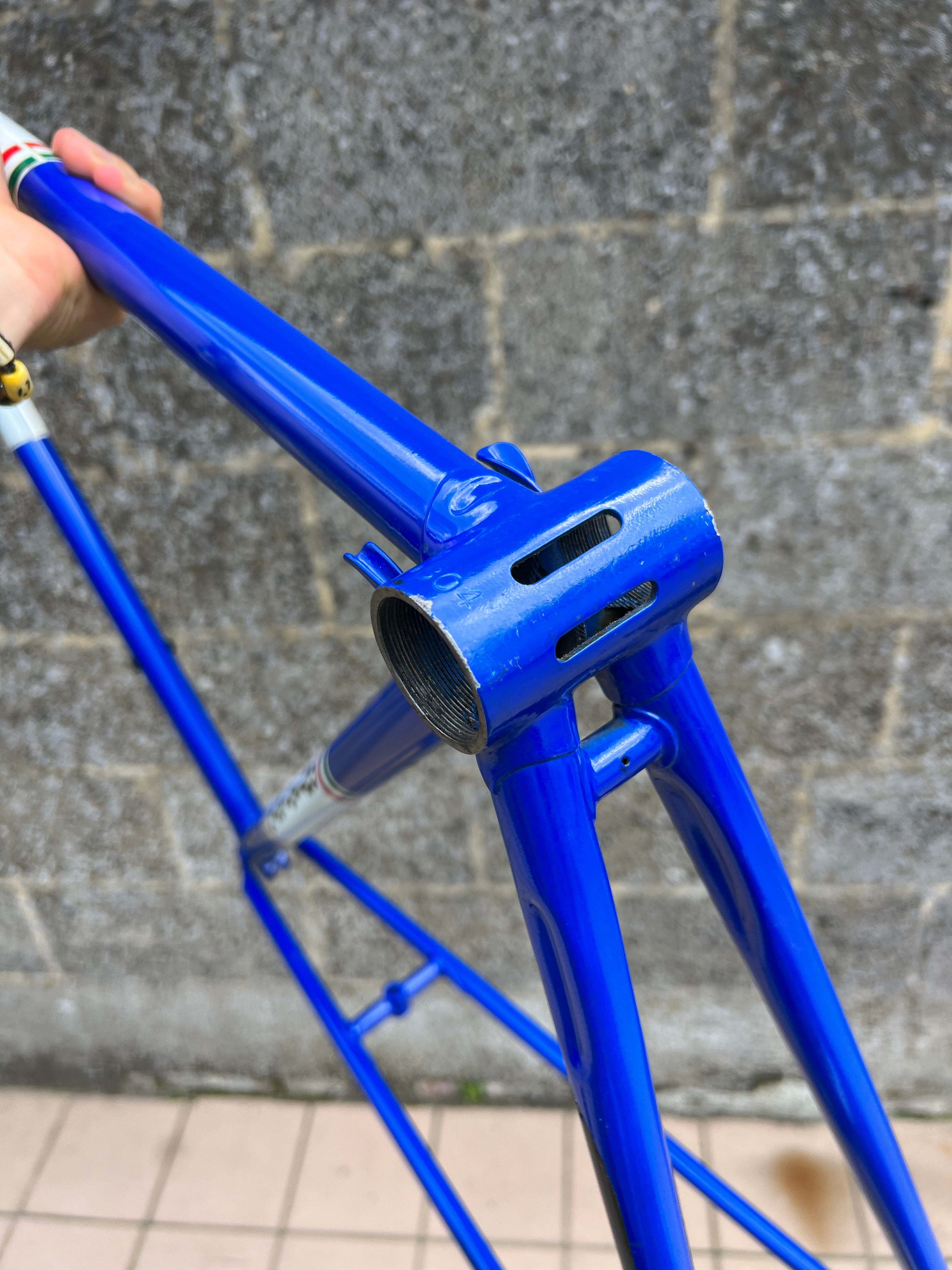 An ultra classic in Italian cycling history. Gios Torino Super Record Coin model. A wonderfull Italian frameset from the 80’s. An absolute classic for collectors! This frameset has been resprayed in the past so it shows some very small signs of use. No dents. No cracks. Ready to build. All threads are fine.