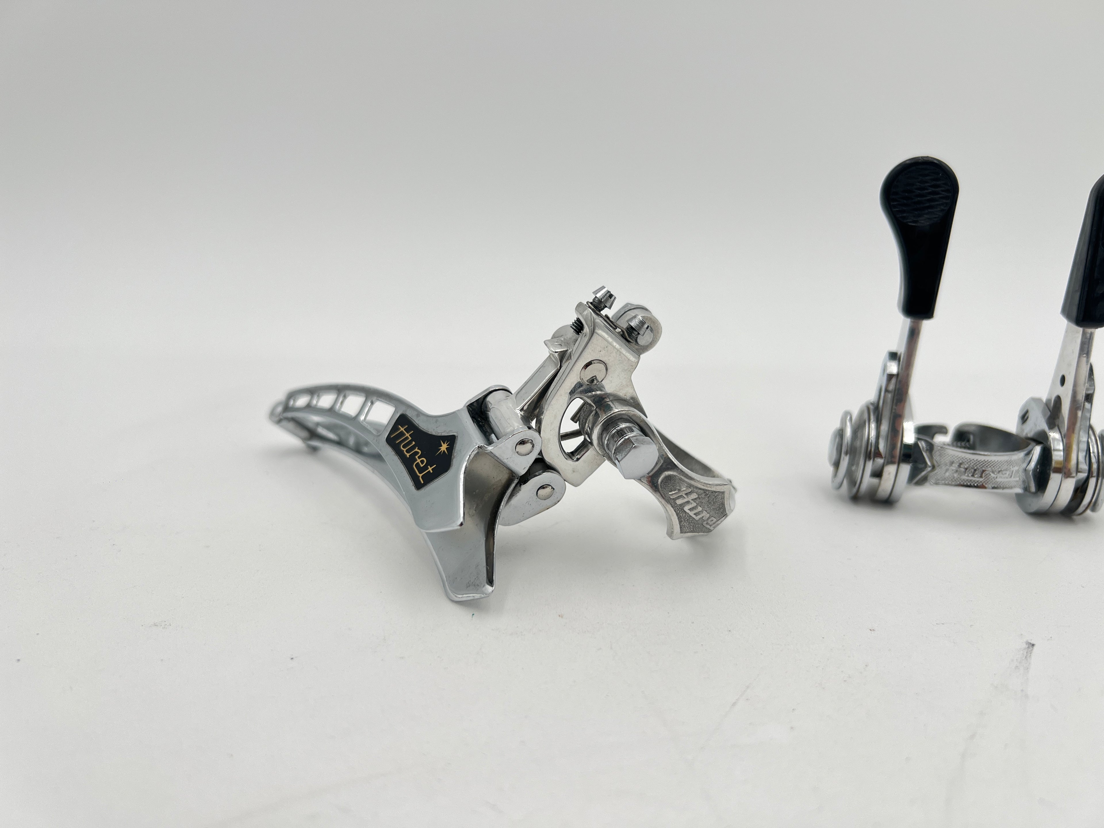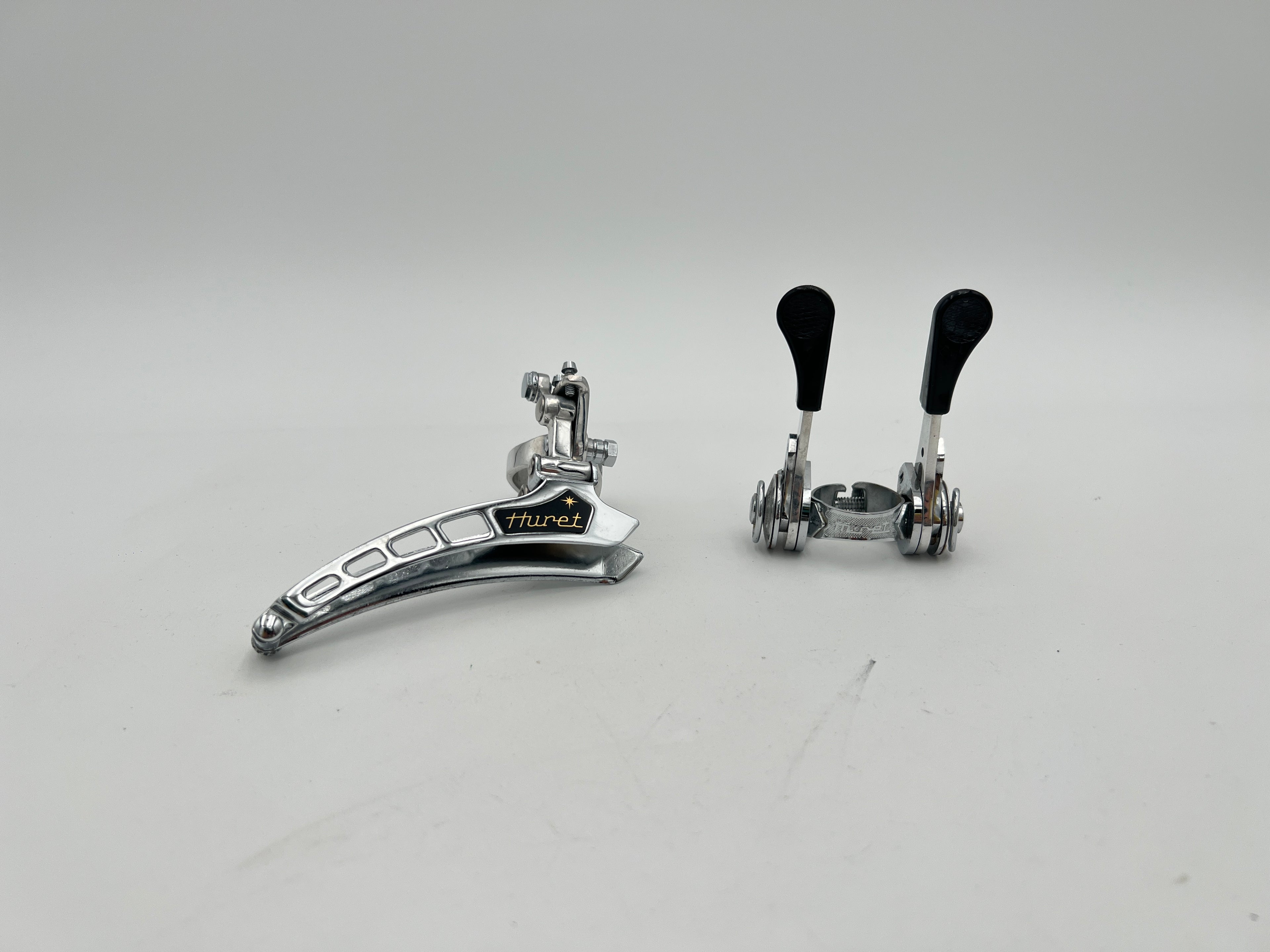 A rare opportunity to get a NOS Huret Jubilee Front Derailleur And Shifters. Ready to install.