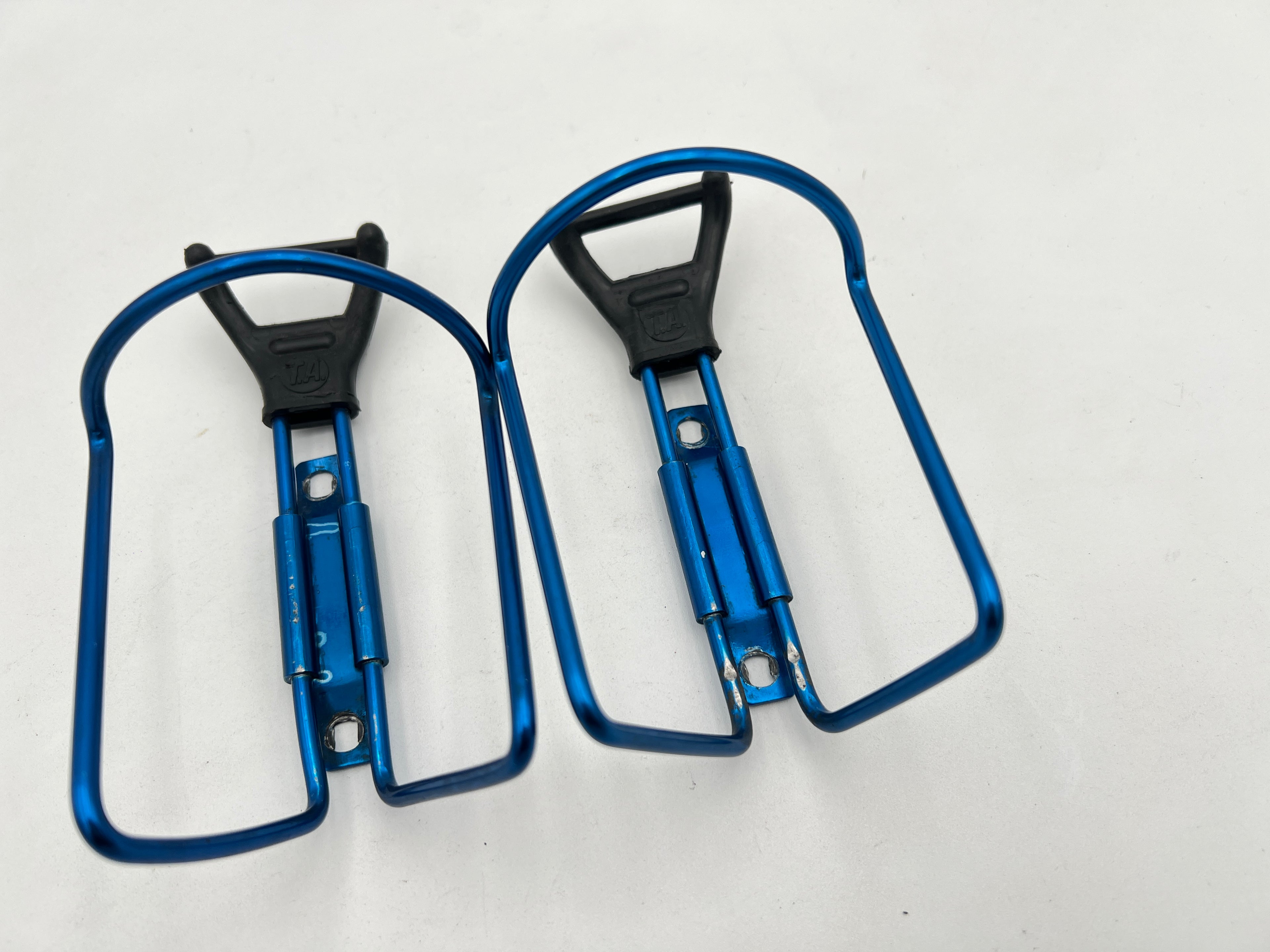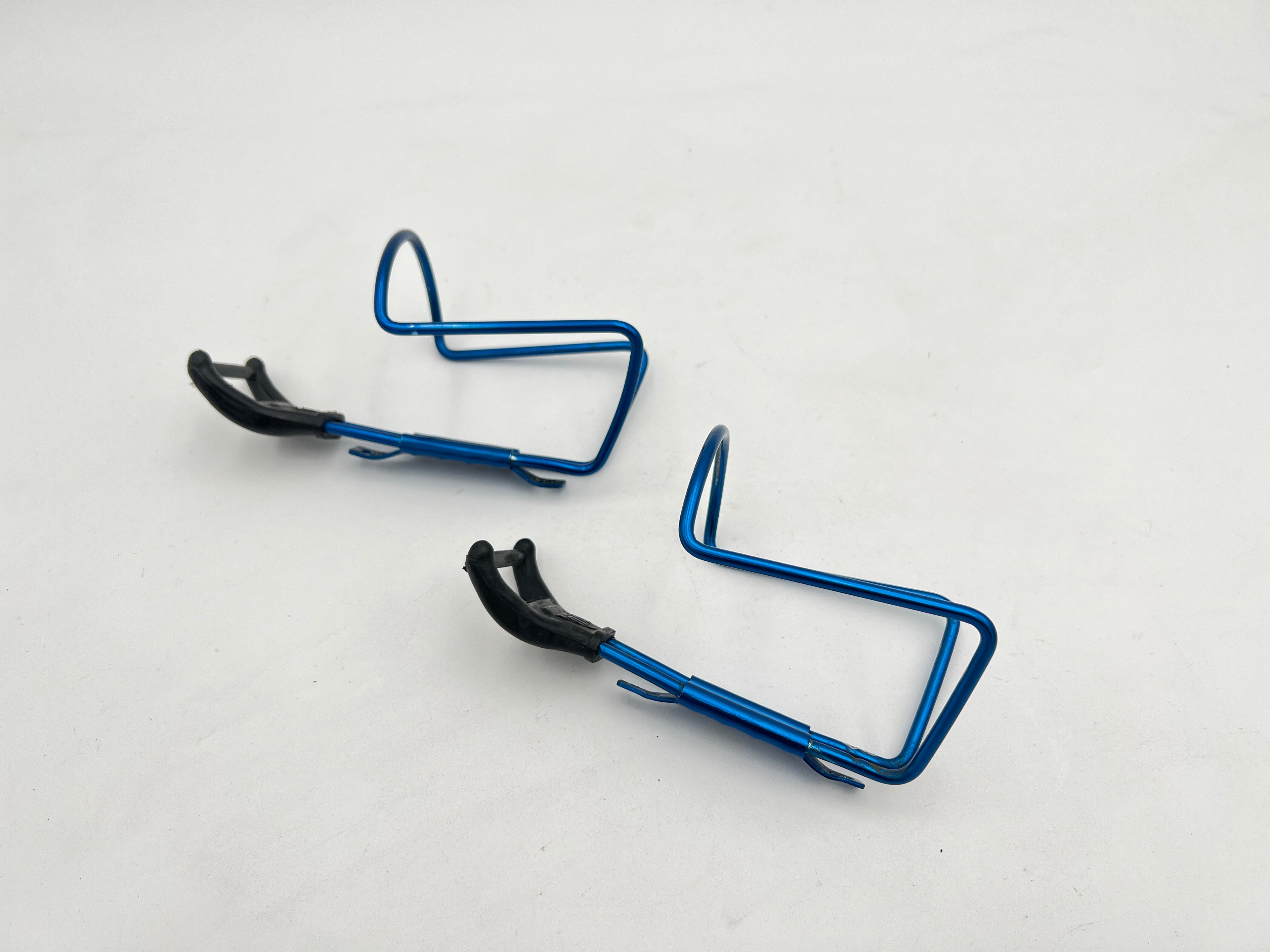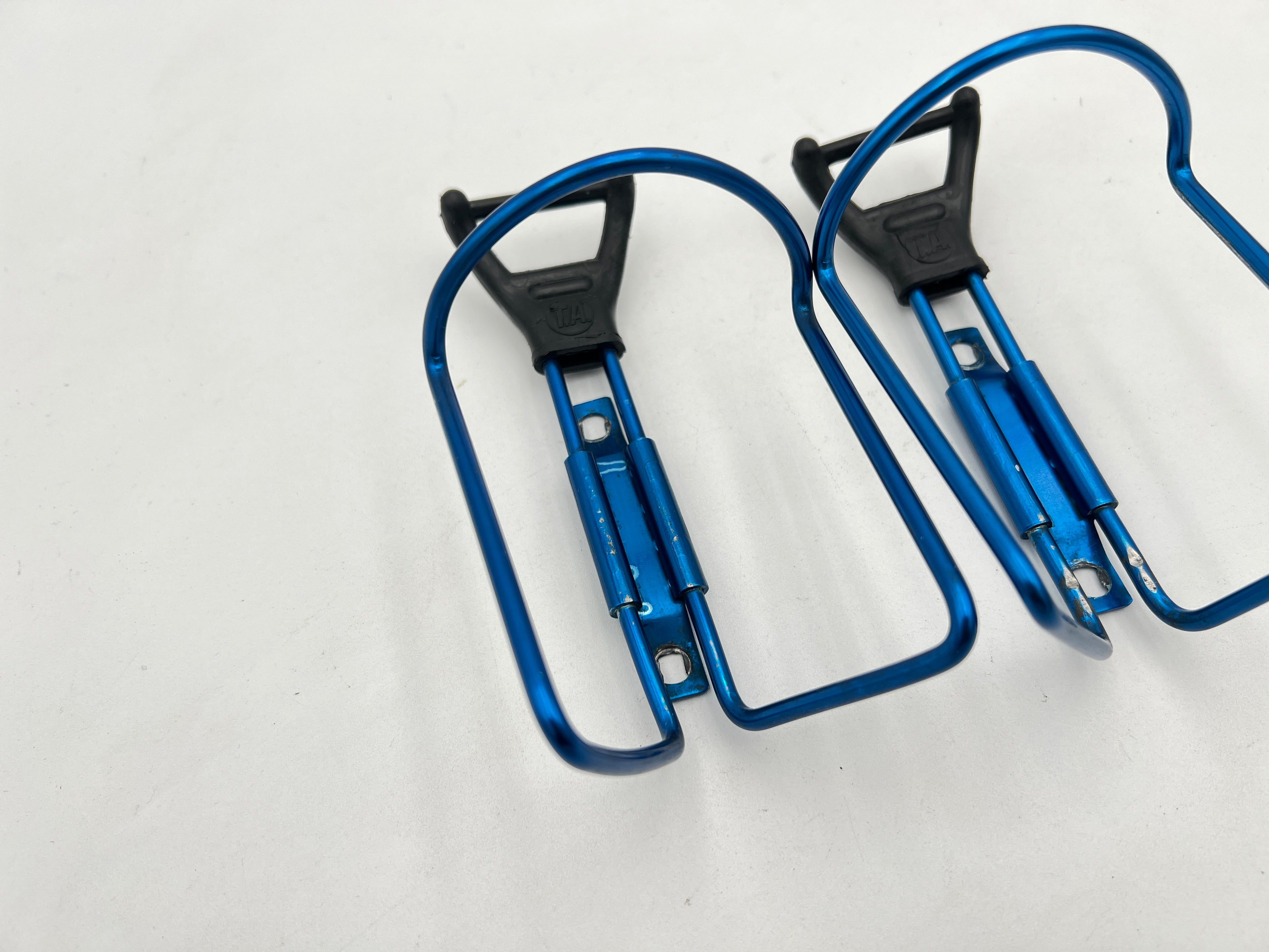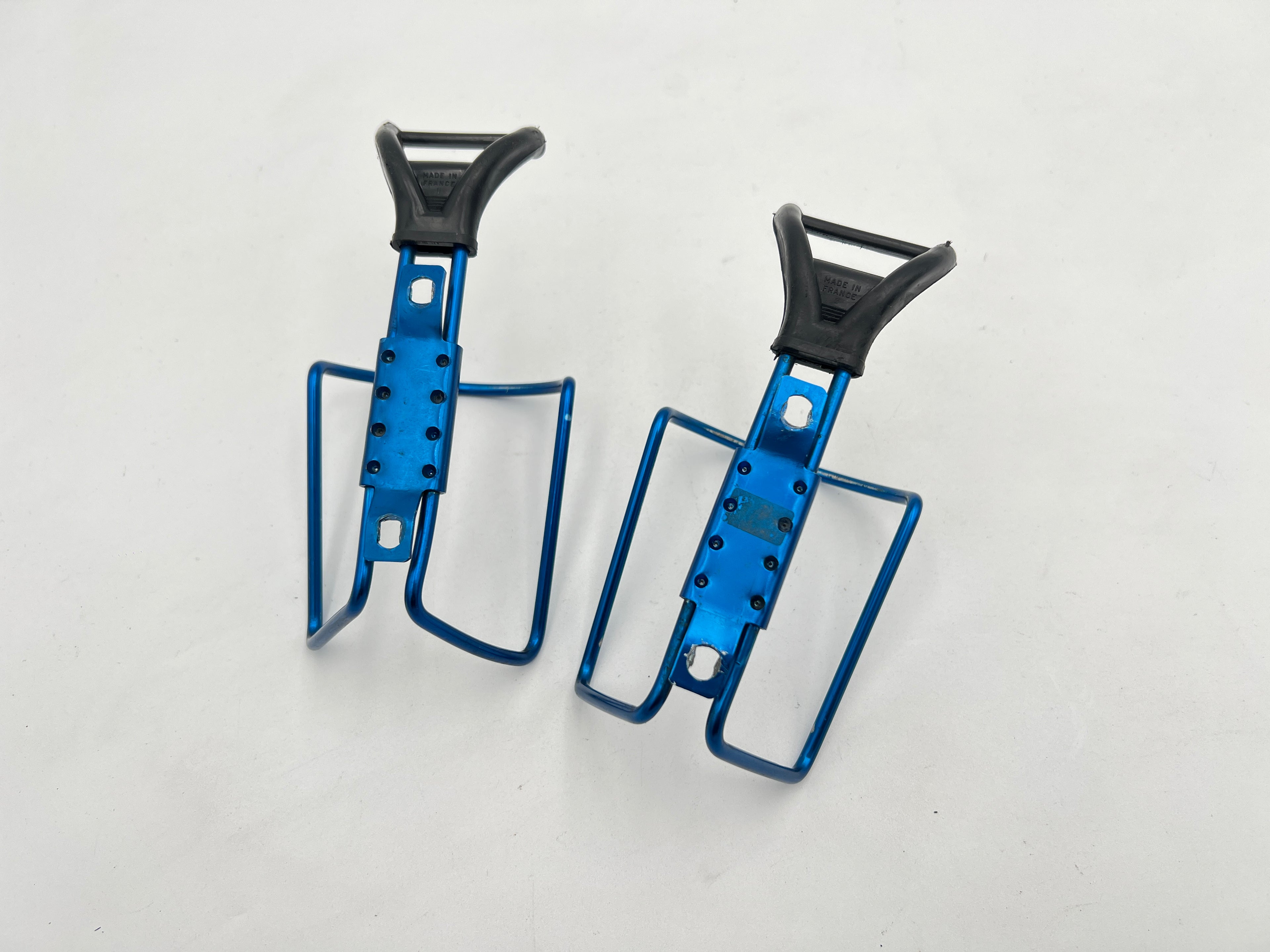 TA Waterbottle Holders Blue 2x. A great pair. One of them has lived a harder life and is slightly bent, but they can still be installed on your bike perfectly.