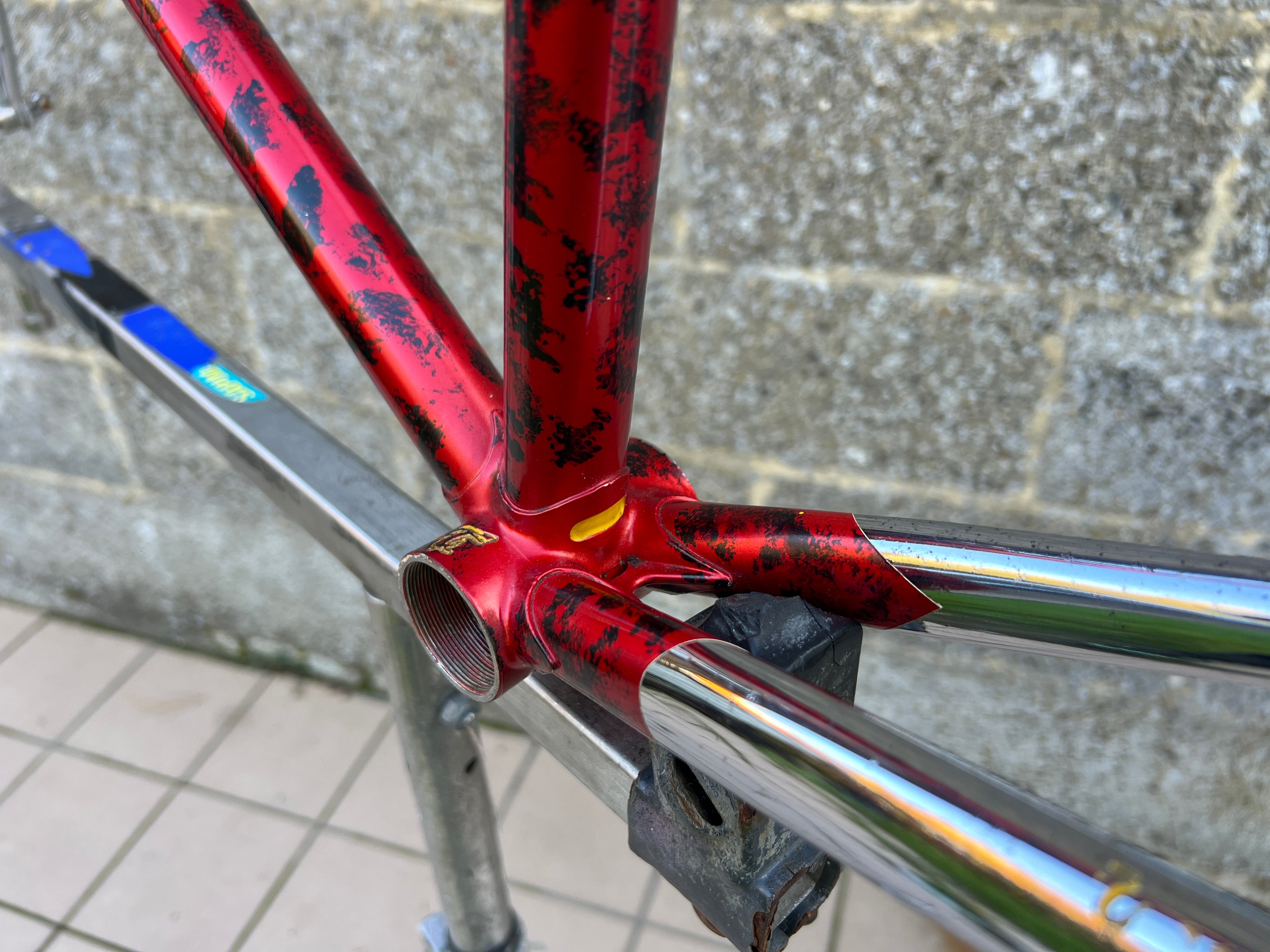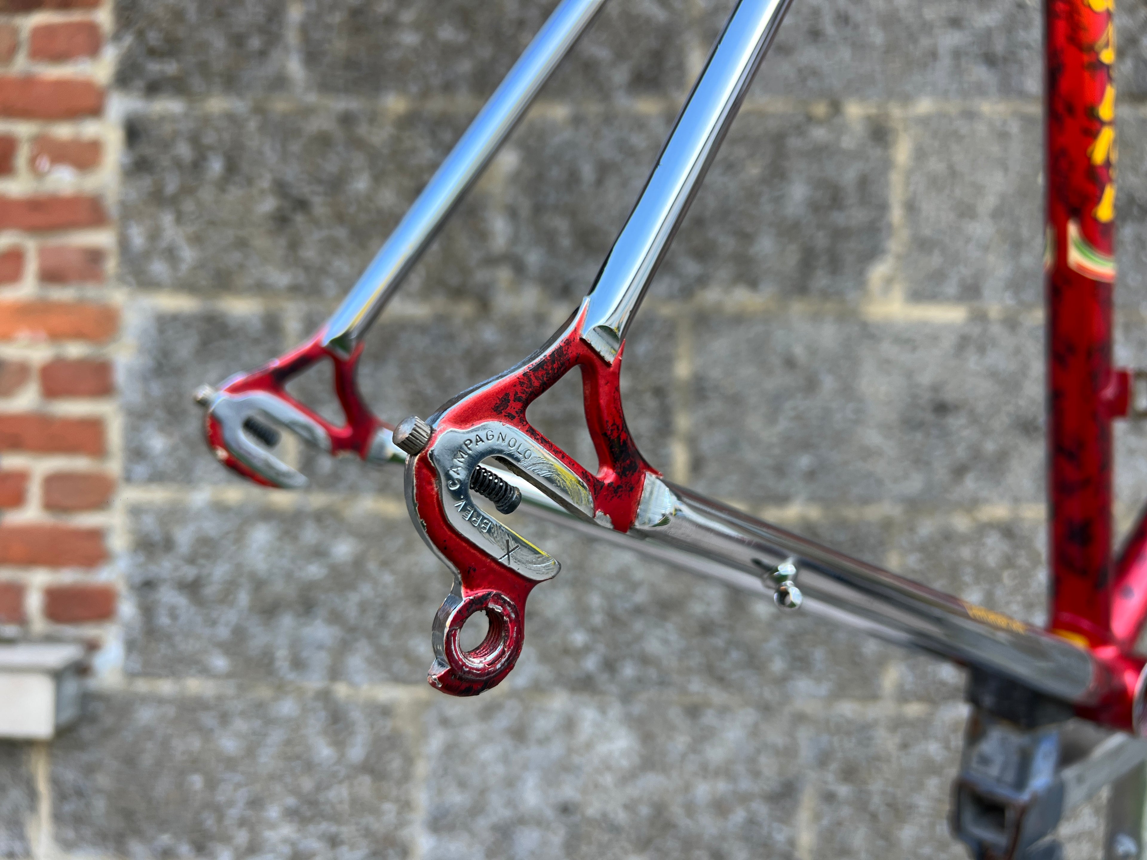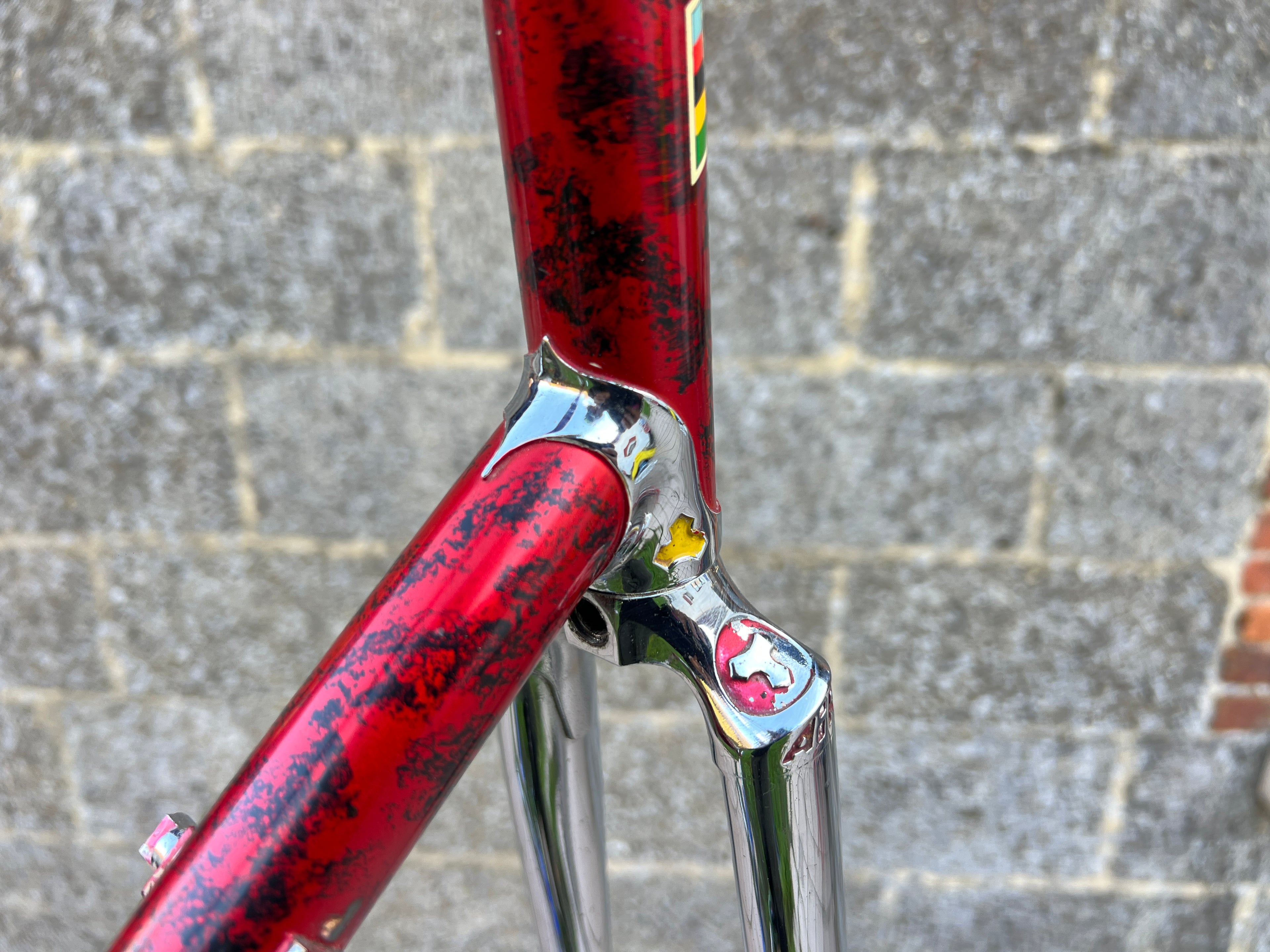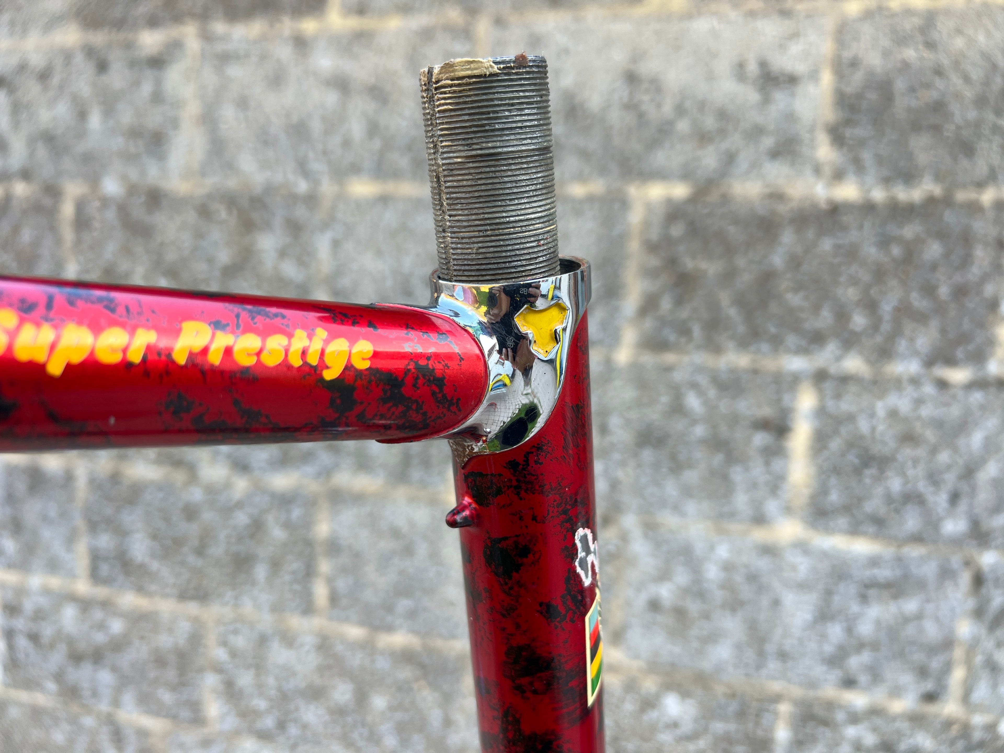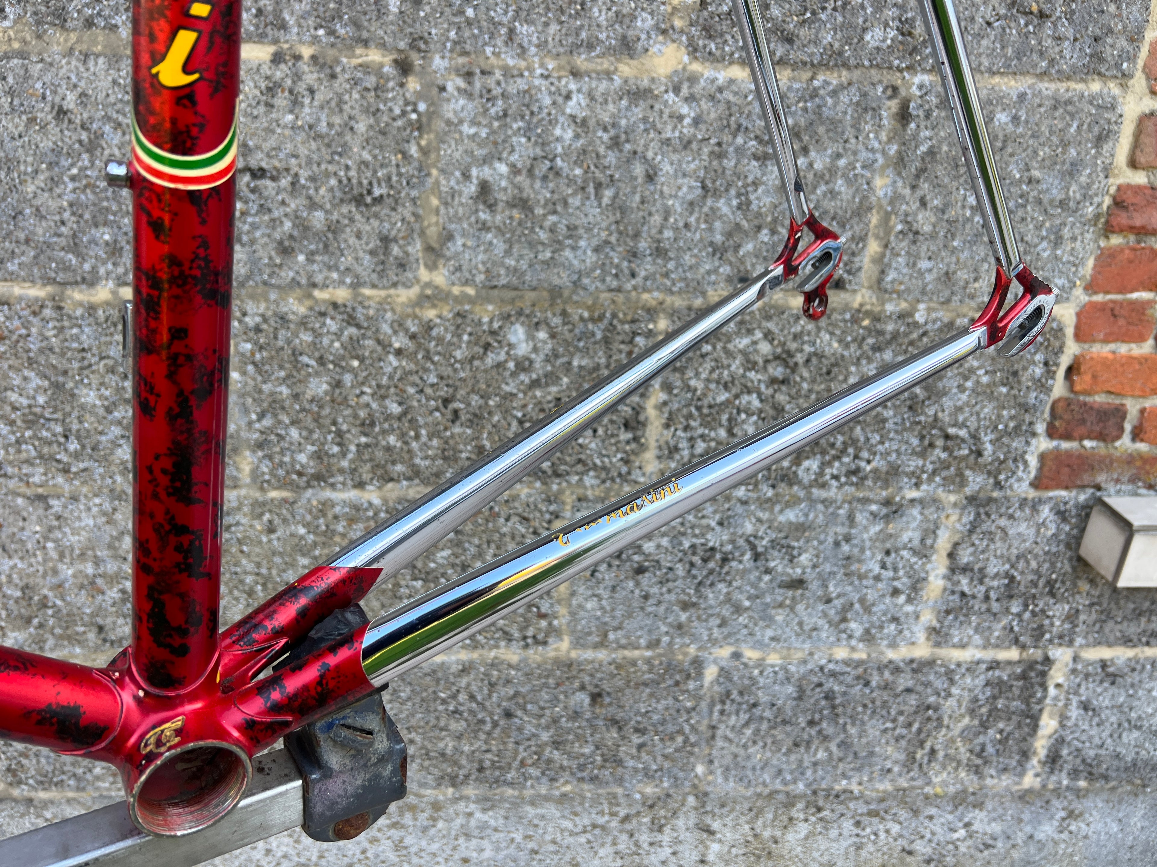 Introduced in the mid 1980s, the Tommasini Super Prestige quickly became the brand’s flagship model and an icon among Italian steel racing frames. Like every Tommasini, it showcases exceptional attention to detail. Beautifully cut and hand-finished lugs, elegant engravings, and precise craftsmanship throughout. This Tommasini Super Prestige SLX is constructed from the legendary Columbus SLX tubing. Renowned for its performance, stiffness, and refined ride quality. The original paint is beautifully preserved, showing only a few small marks acquired over the years. The original chrome also remains in fine condition with minor imperfections that add to its authenticity and timeless charm. Every detail reflects Tommasini’s unwavering dedication to perfection. A true work of Italian art. A timeless piece of cycling history for the discerning collector or rider who appreciates the very finest in Italian framebuilding tradition. The perfect frameset to complete with Record, Super Record, C-Record, Chorus, or Athena groupsets.