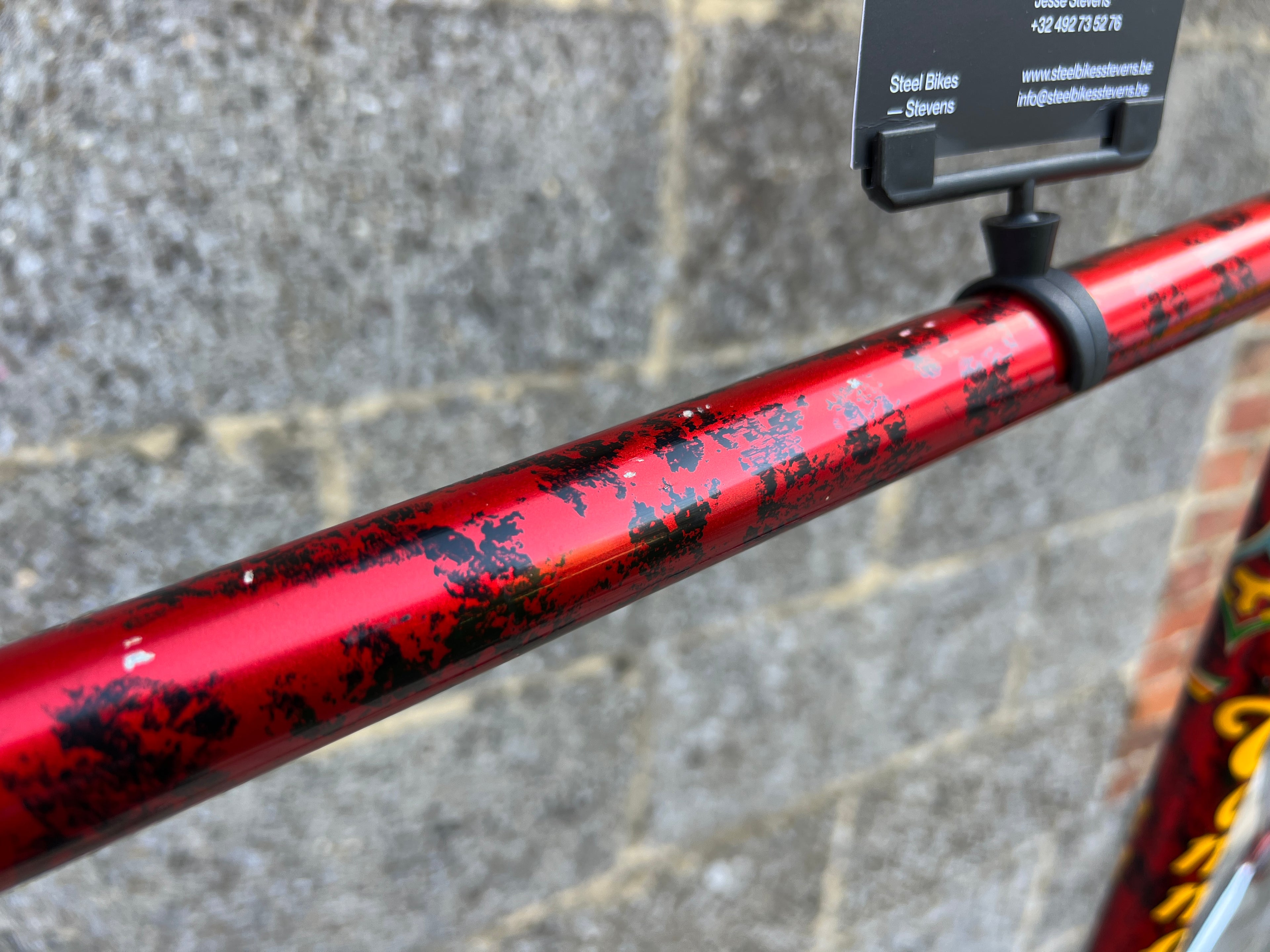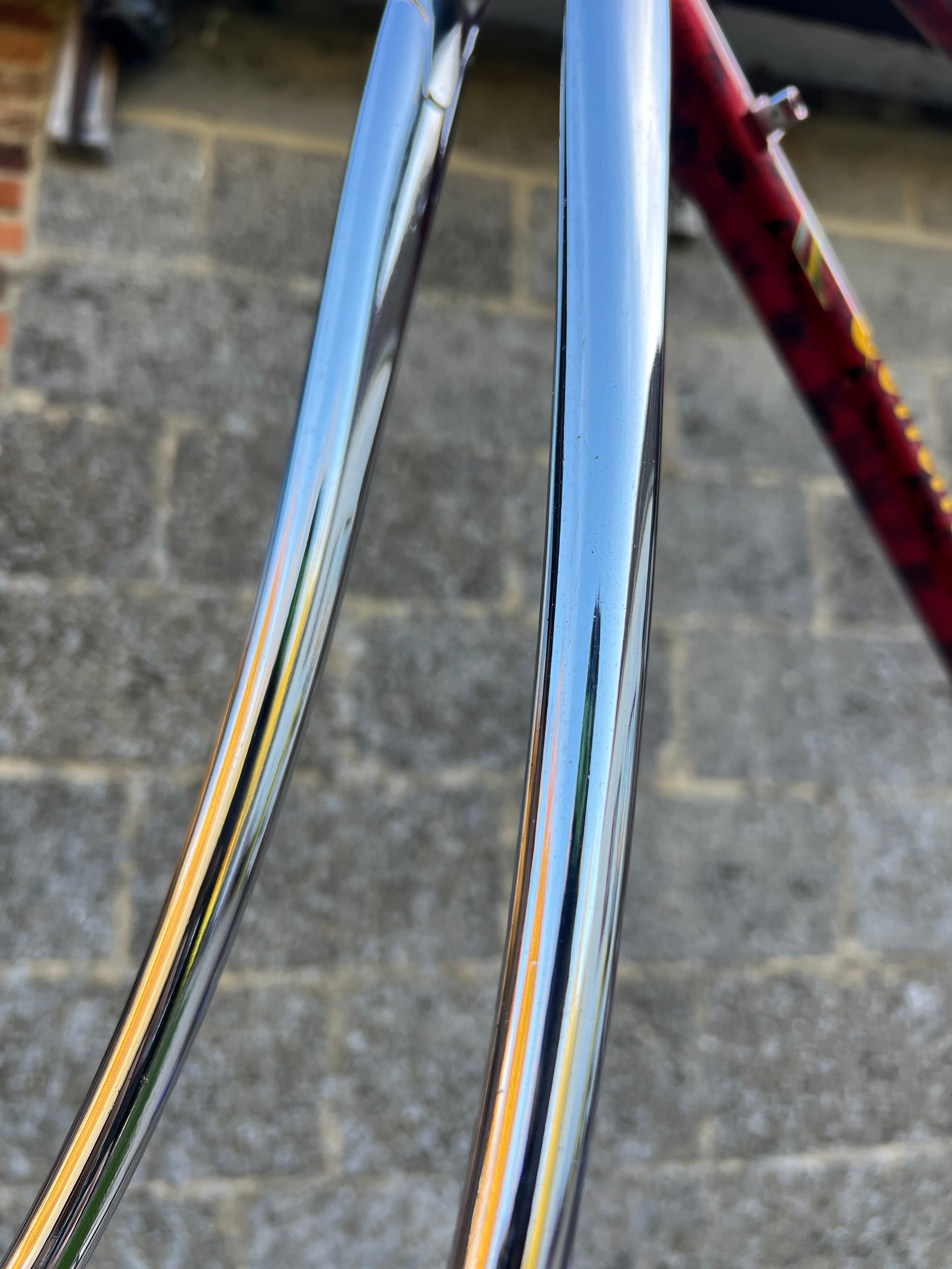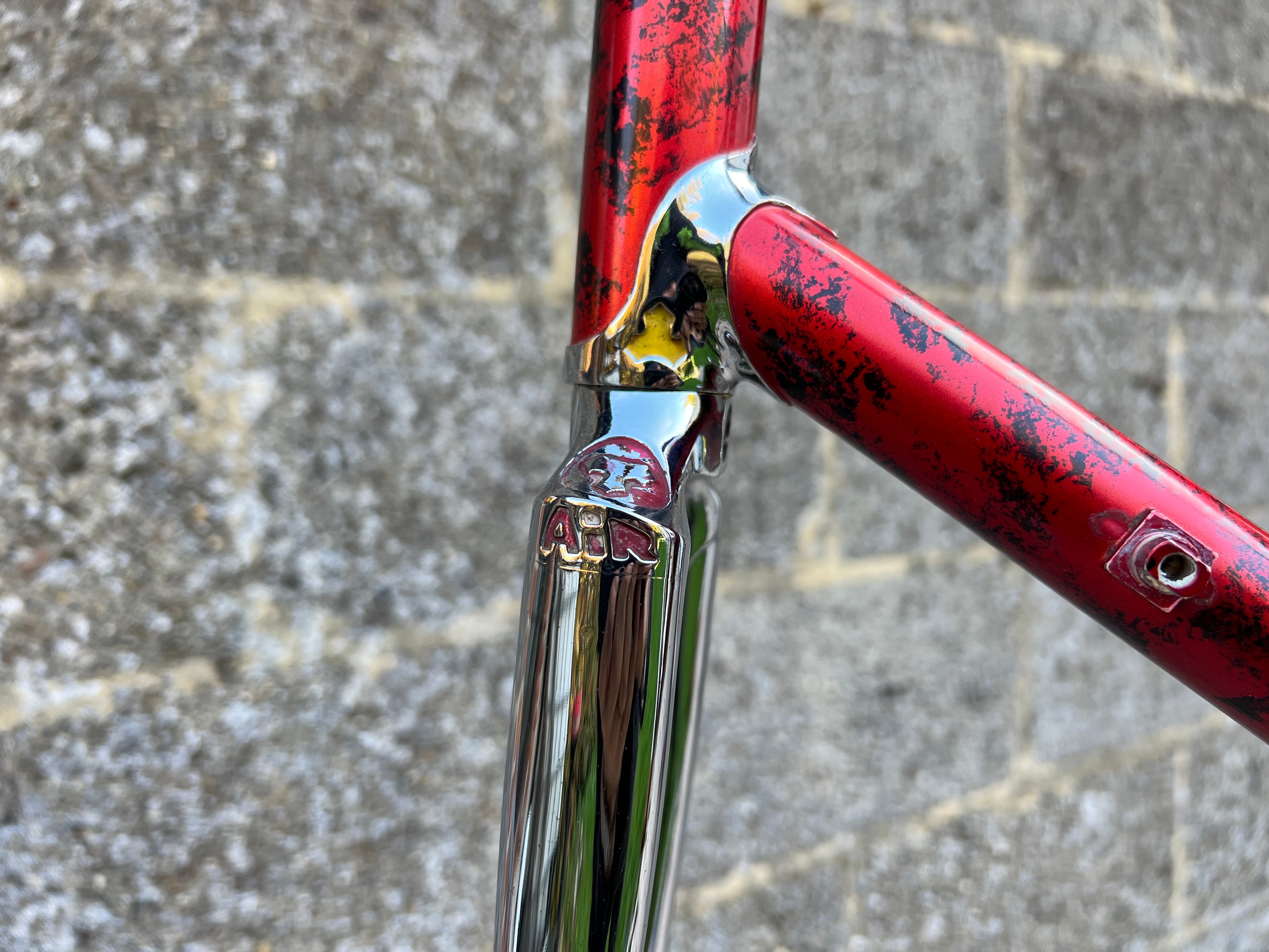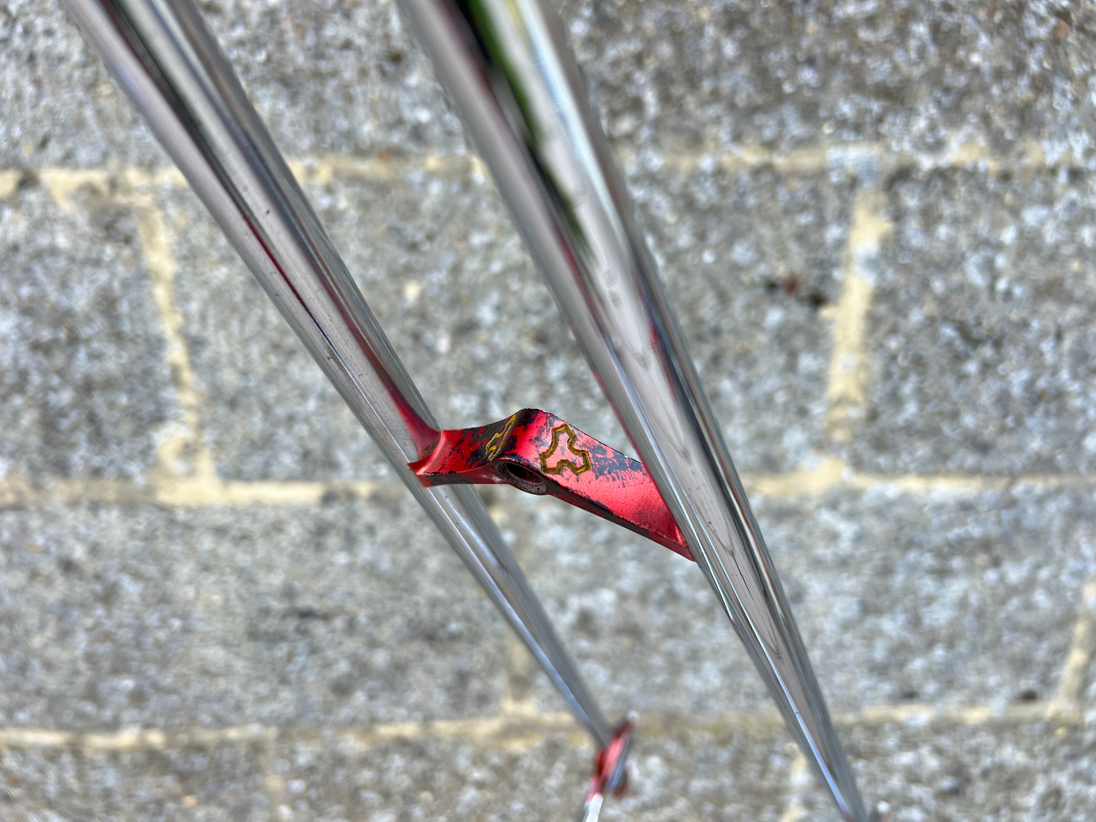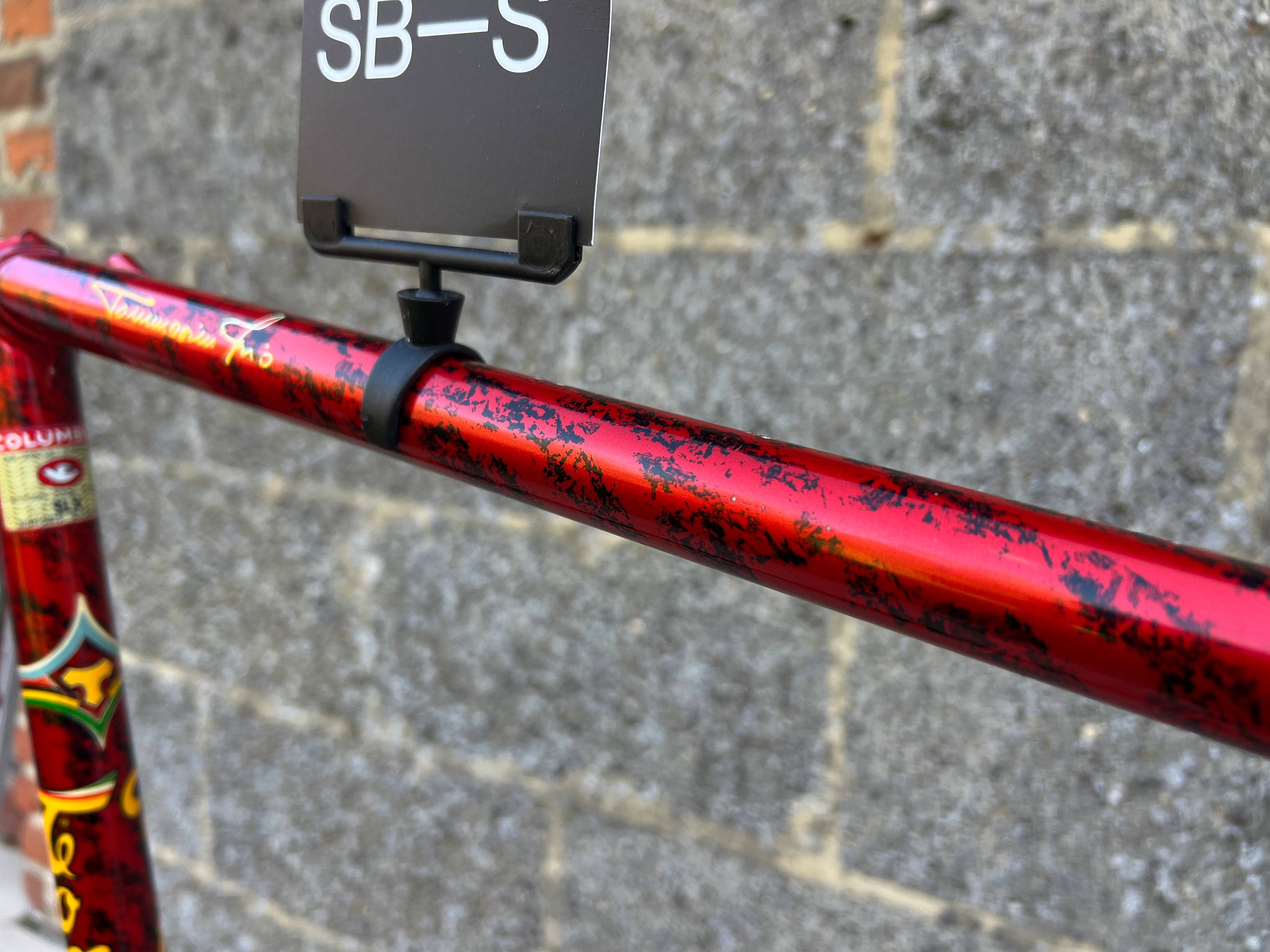 Introduced in the mid 1980s, the Tommasini Super Prestige quickly became the brand’s flagship model and an icon among Italian steel racing frames. Like every Tommasini, it showcases exceptional attention to detail. Beautifully cut and hand-finished lugs, elegant engravings, and precise craftsmanship throughout. This Tommasini Super Prestige SLX is constructed from the legendary Columbus SLX tubing. Renowned for its performance, stiffness, and refined ride quality. The original paint is beautifully preserved, showing only a few small marks acquired over the years. The original chrome also remains in fine condition with minor imperfections that add to its authenticity and timeless charm. Every detail reflects Tommasini’s unwavering dedication to perfection. A true work of Italian art. A timeless piece of cycling history for the discerning collector or rider who appreciates the very finest in Italian framebuilding tradition. The perfect frameset to complete with Record, Super Record, C-Record, Chorus, or Athena groupsets.