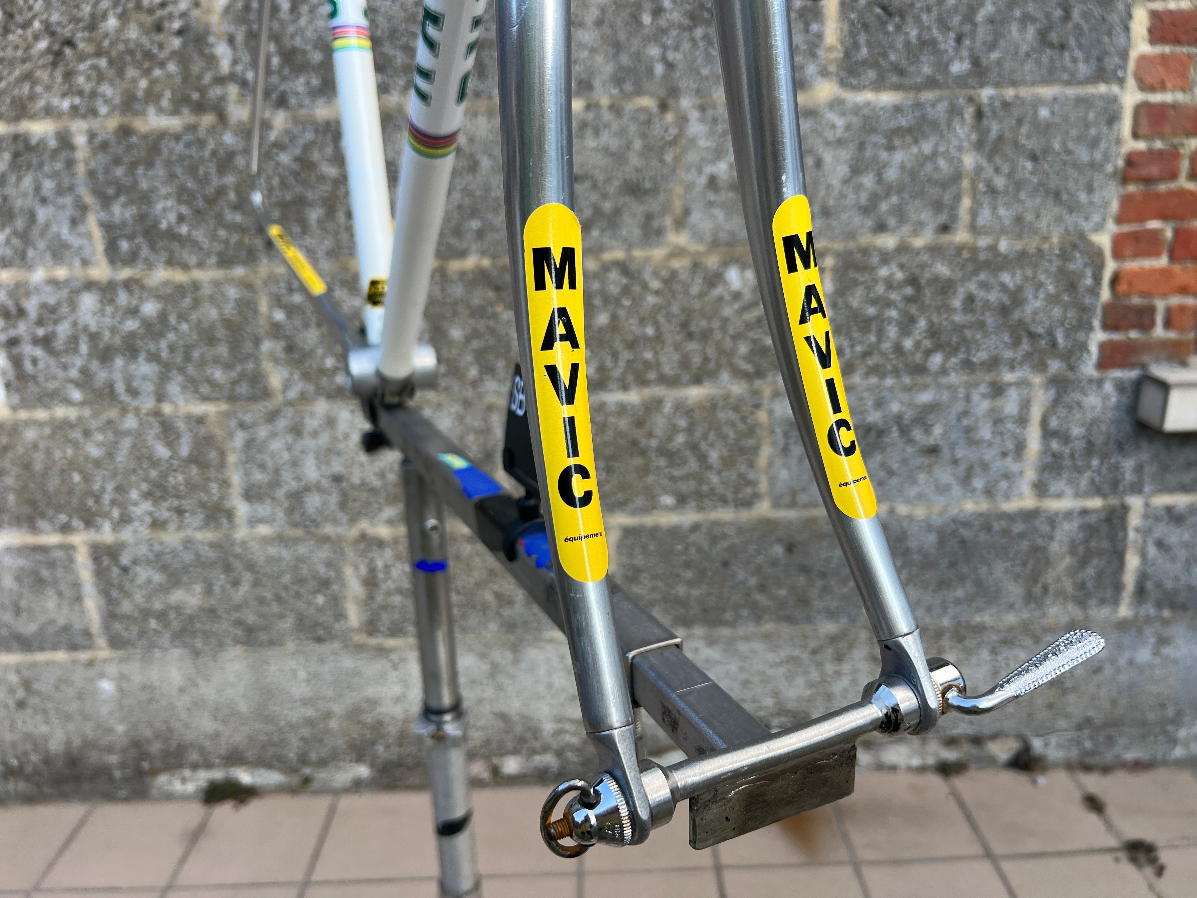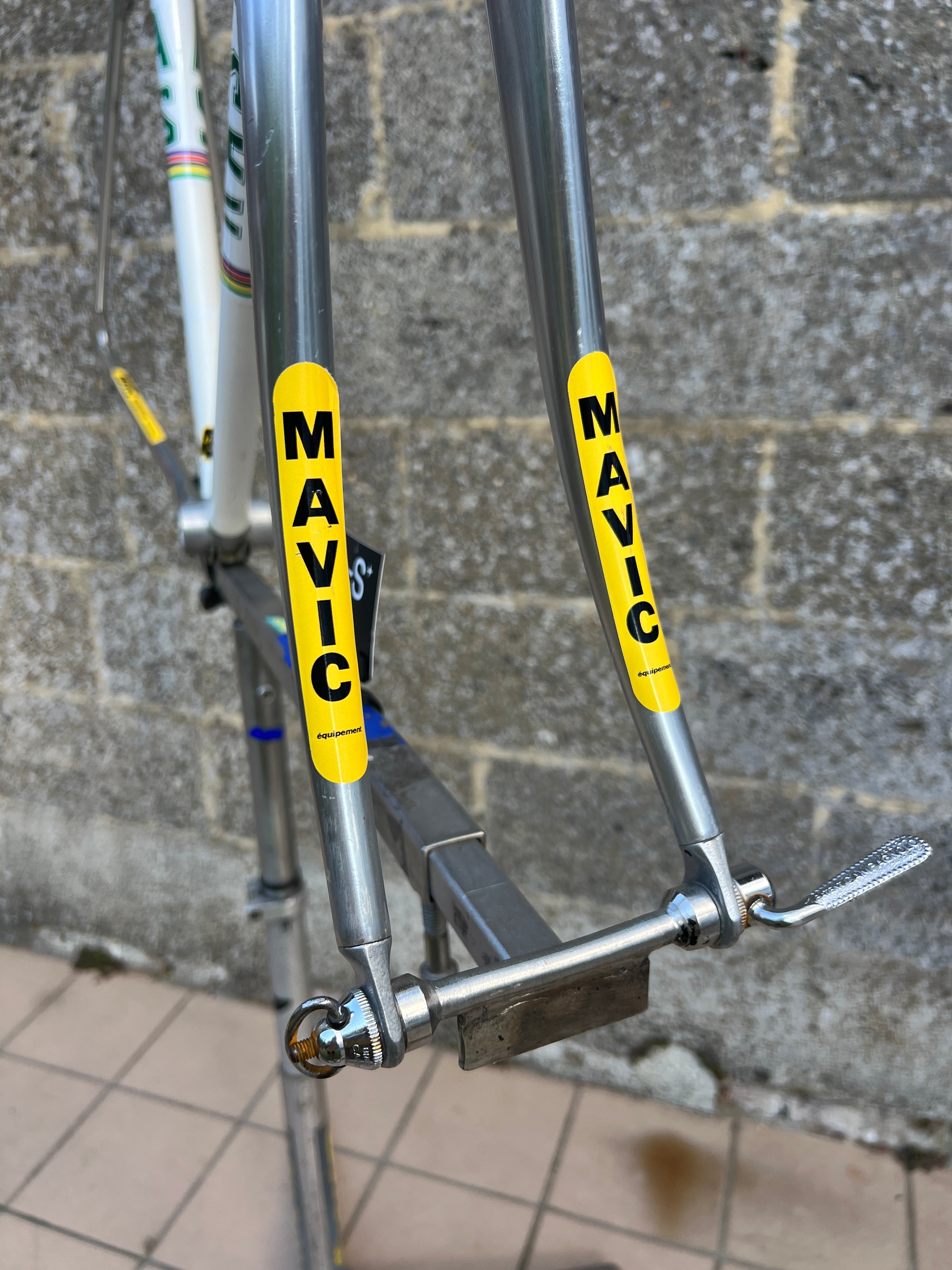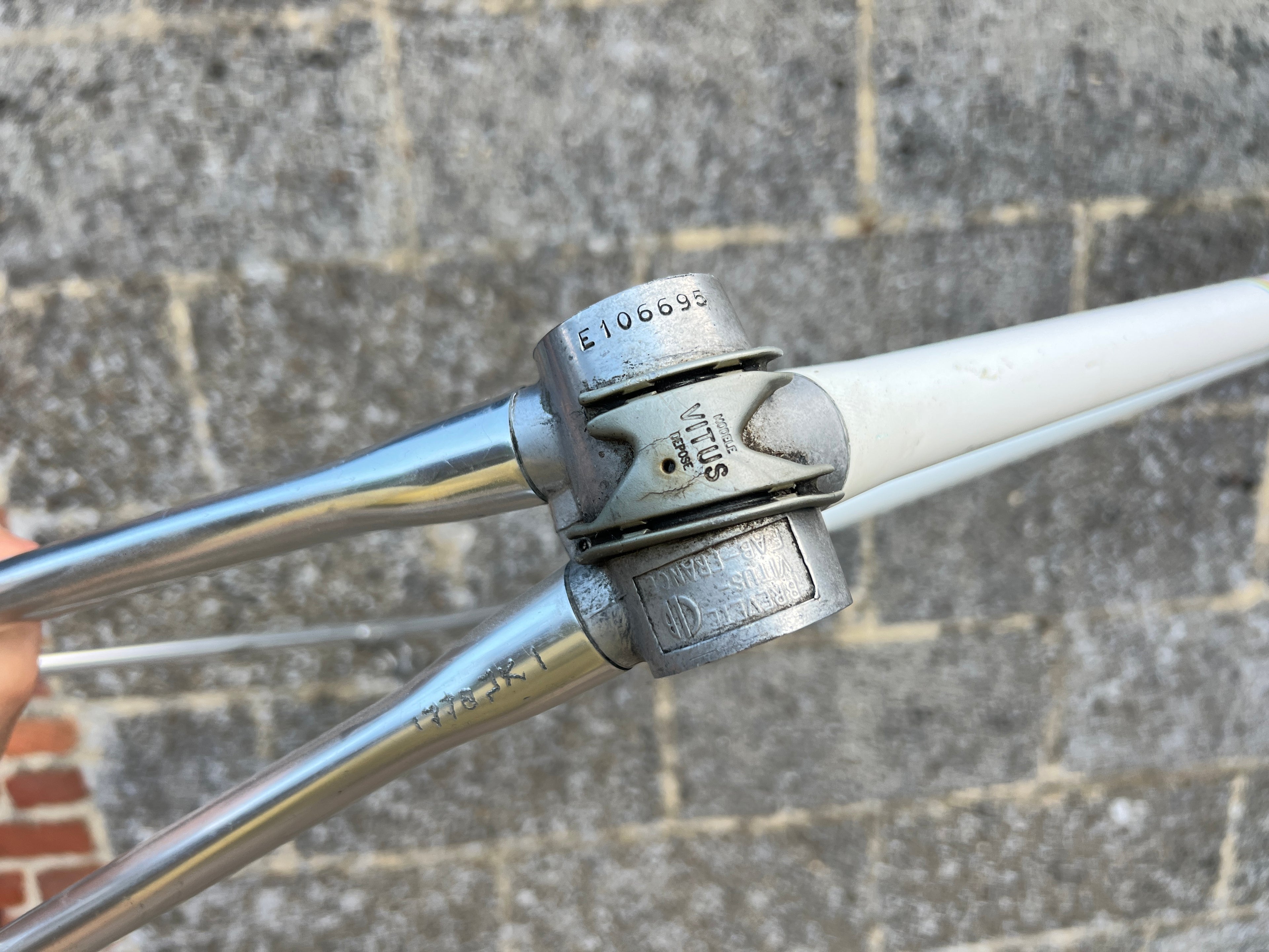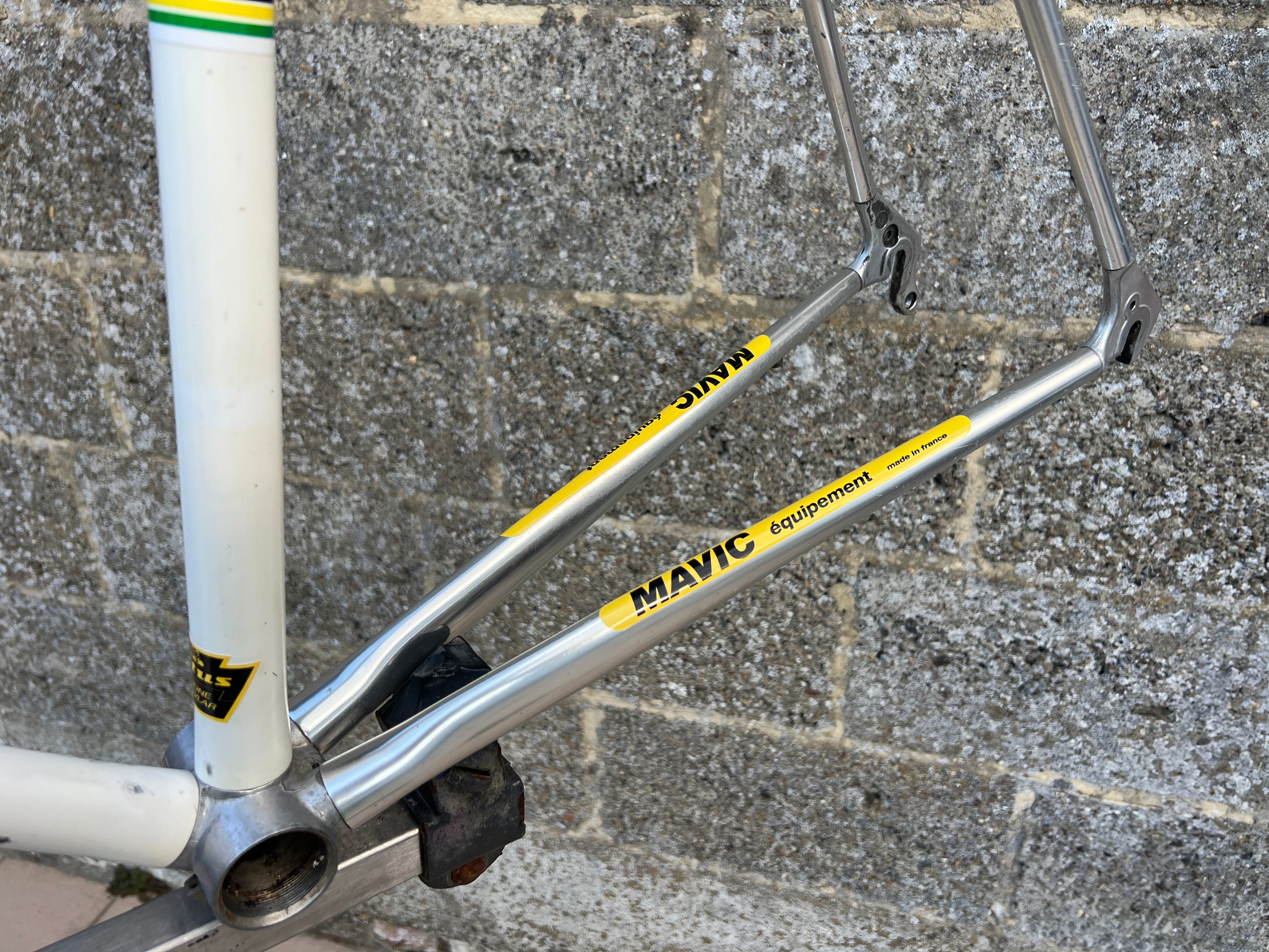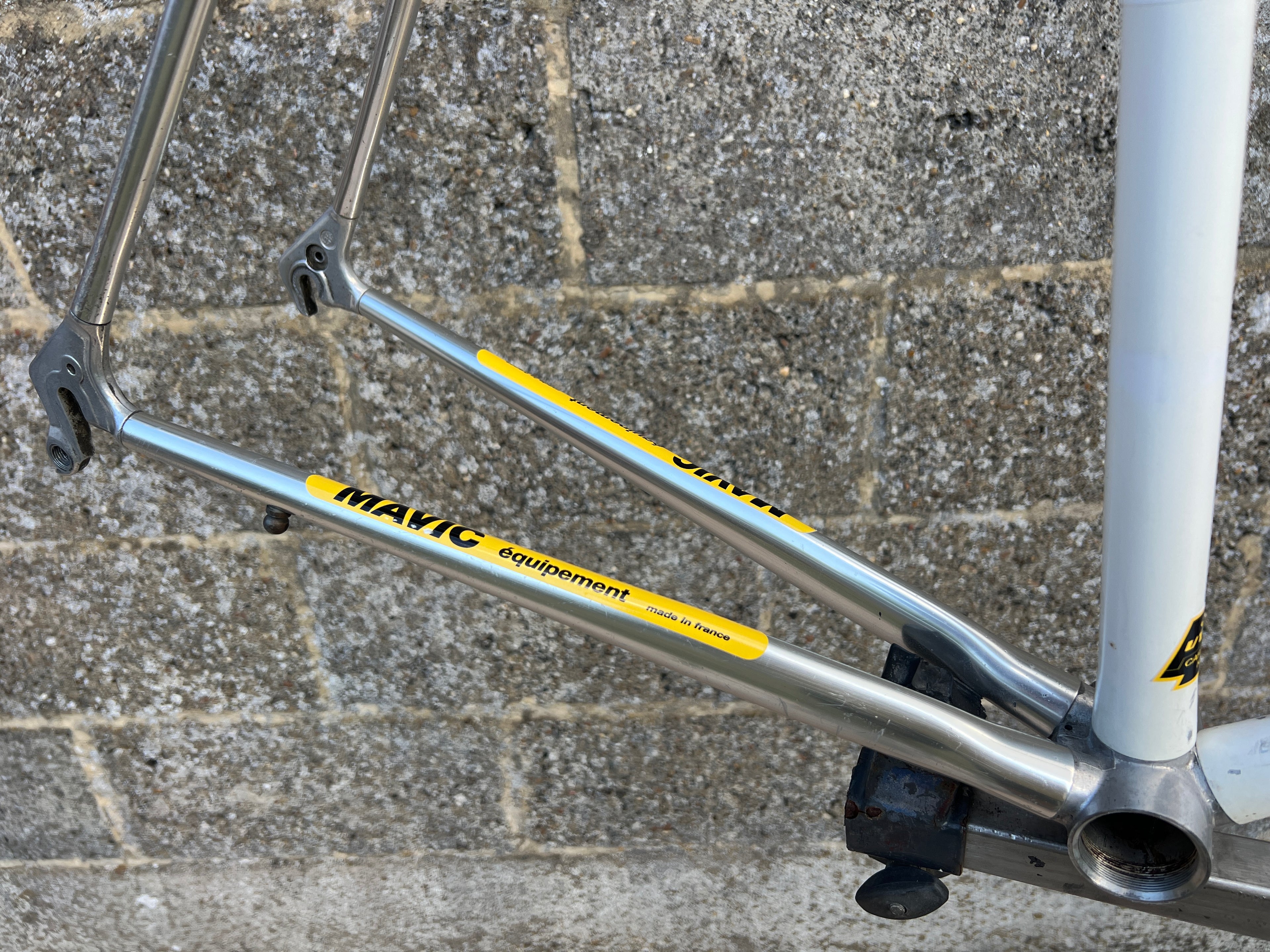Legendary Vitus 979 KAS frameset. One of the most iconic aluminum frames of the 1980s. This is the same model ridden by professional riders of the KAS team, known for its lightweight bonded Duralinox tubing and smooth ride quality.